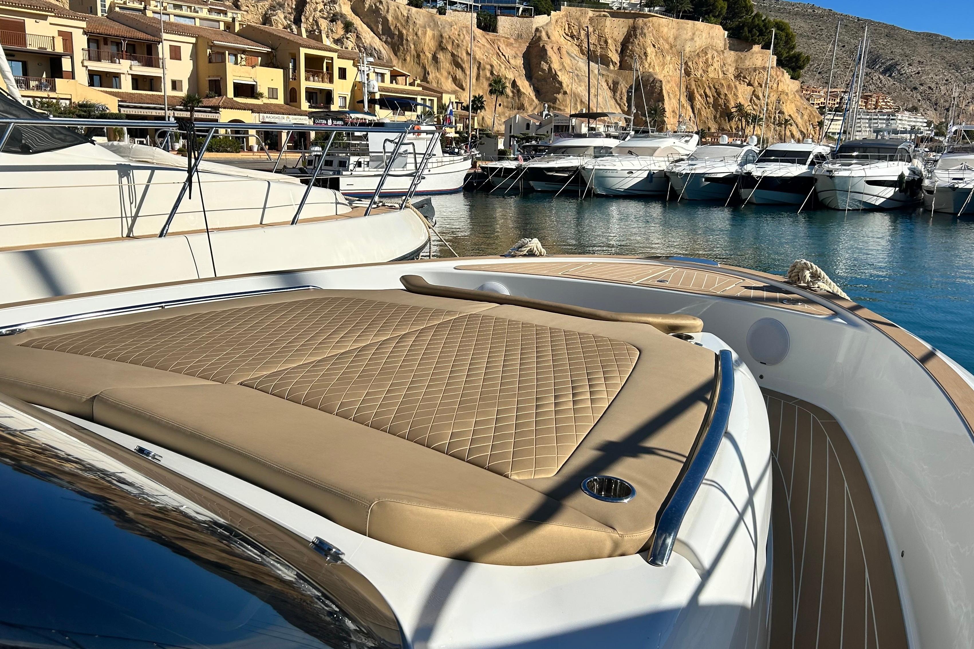 This new boat has a walkaround with a modern and elegant design, with folding side balconies for lunch or dinner on a huge private terrace overlooking the sea. There is no shortage of spacious sunbathing areas and a handy wet-bar in the shade of the T-Top. Discover the incredible Solaris Power 44 Open, available at Náutica Mengual, official distributor of Solaris Power in Spain.