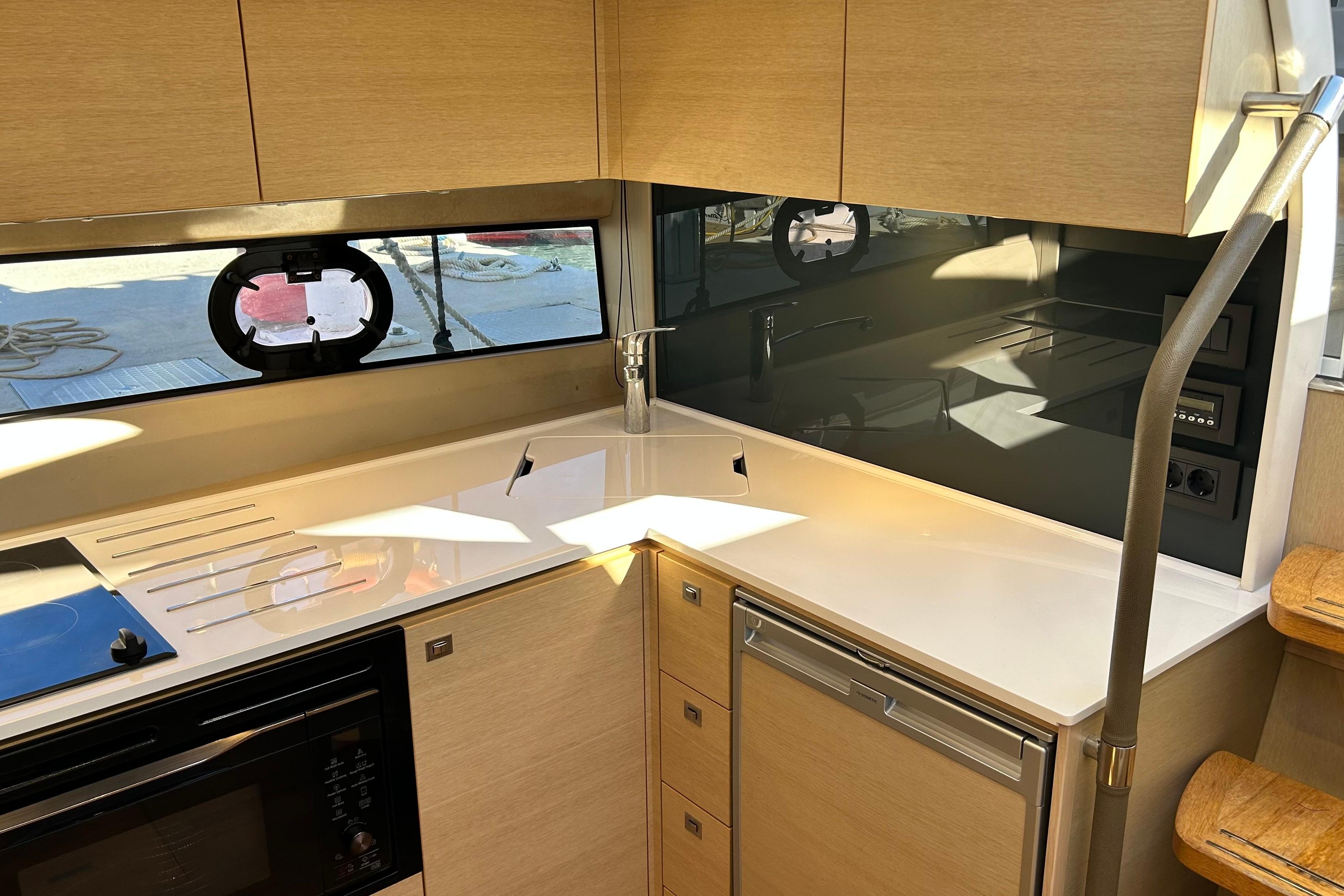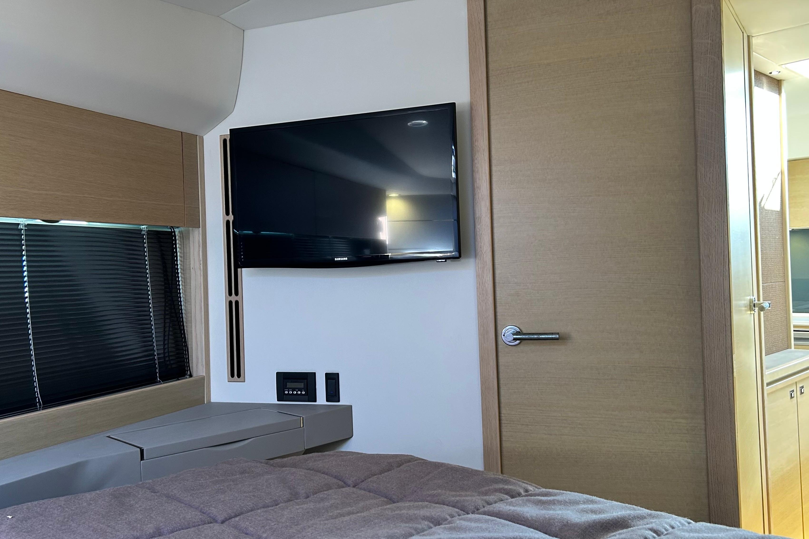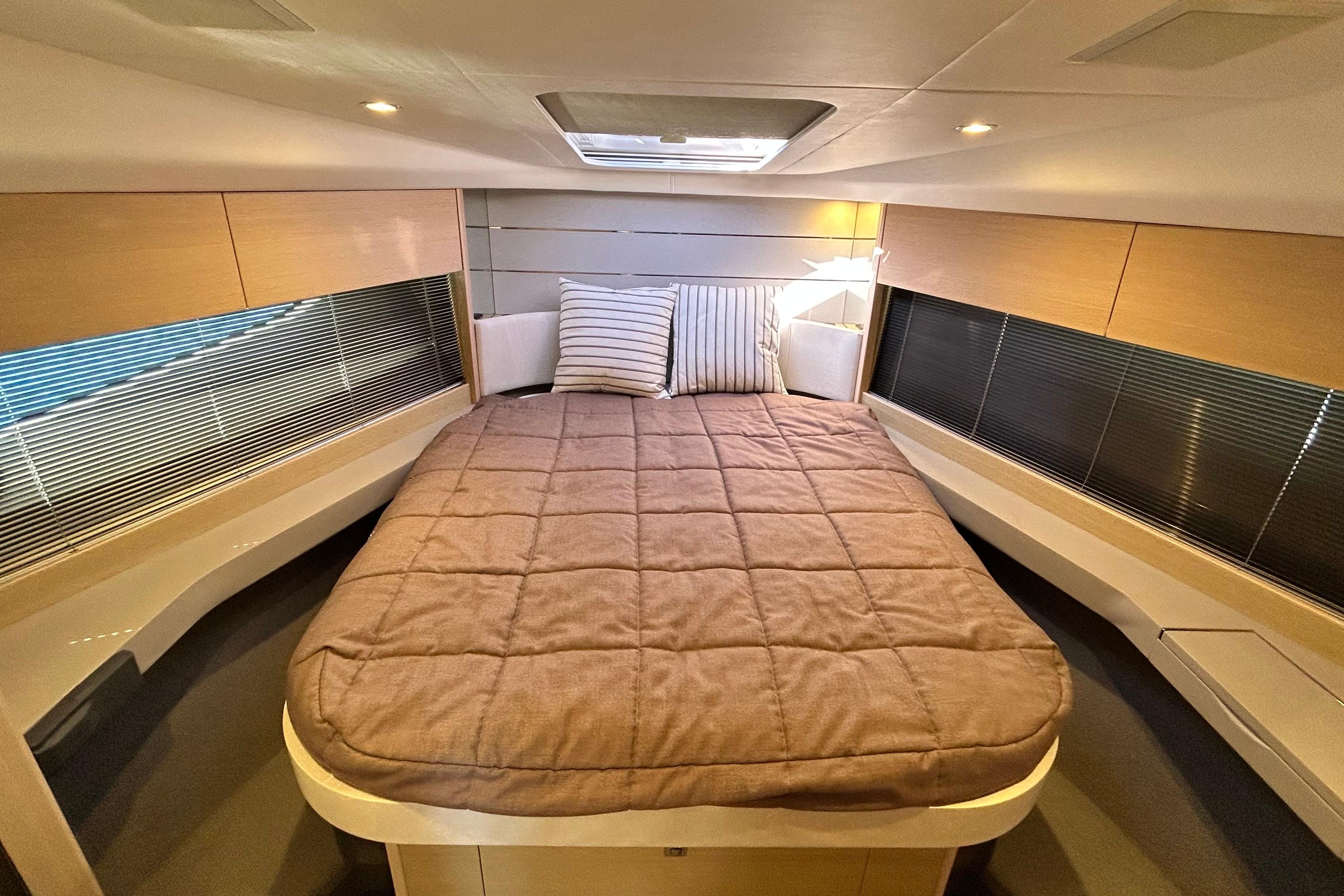 Below deck, her pewter grey and off-white colour palette depict the modern V Class look throughout. Her spacious saloon and well equipped galley combine for a highly sociable entertaining space, while both cabins exude contemporary style and generous proportions. The forward cabin has an en-suite bathroom with secondary access to the saloon whilst the aft cabin can be fitted with optional sliding berths to provide easy conversion to a double when required.