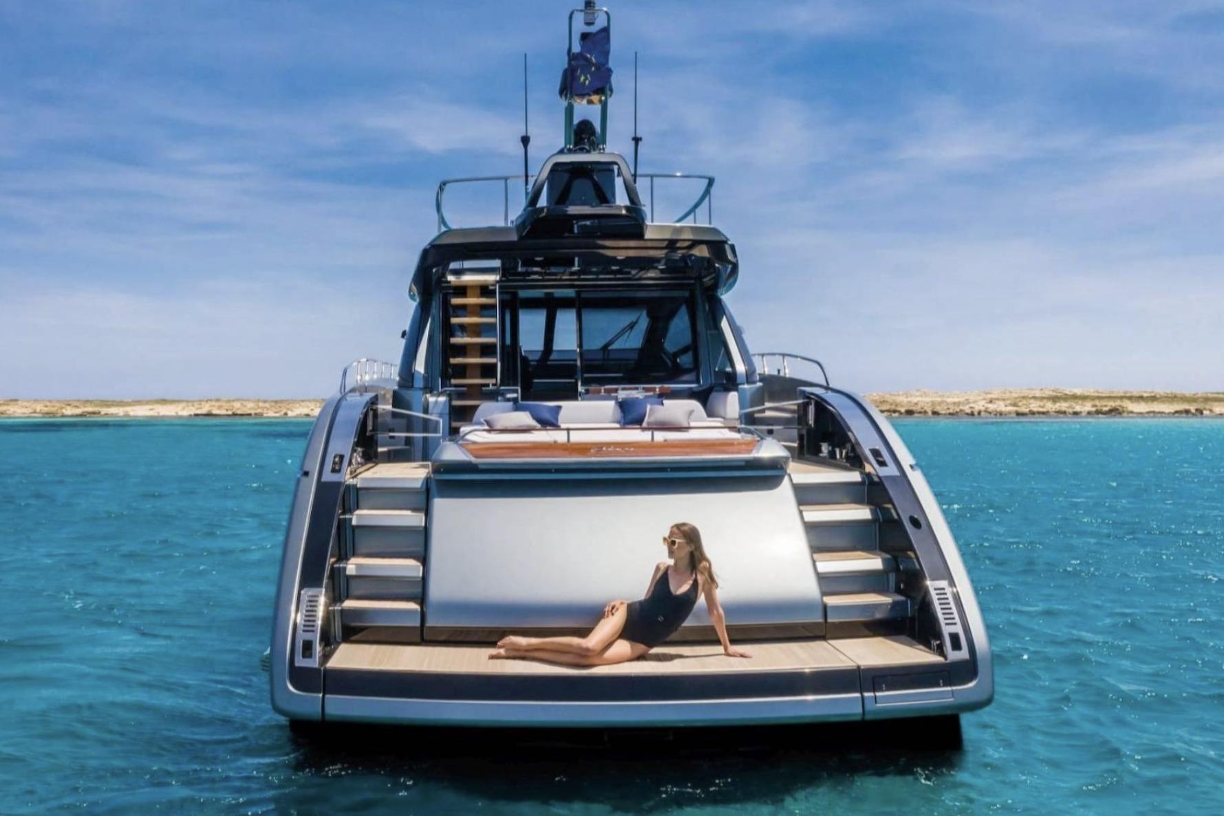 Stunning 2020 Riva 66' Ribelle. This remarkable cruiser combines elegance with performance. With an overall length of 20.67 meters, this vessel boasts a sleek fiberglass deep vee hull ensuring smooth navigation and stability on the water.