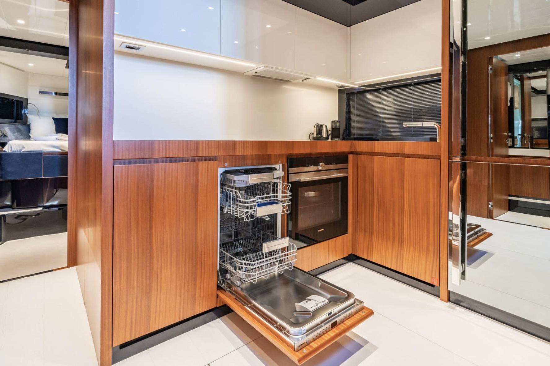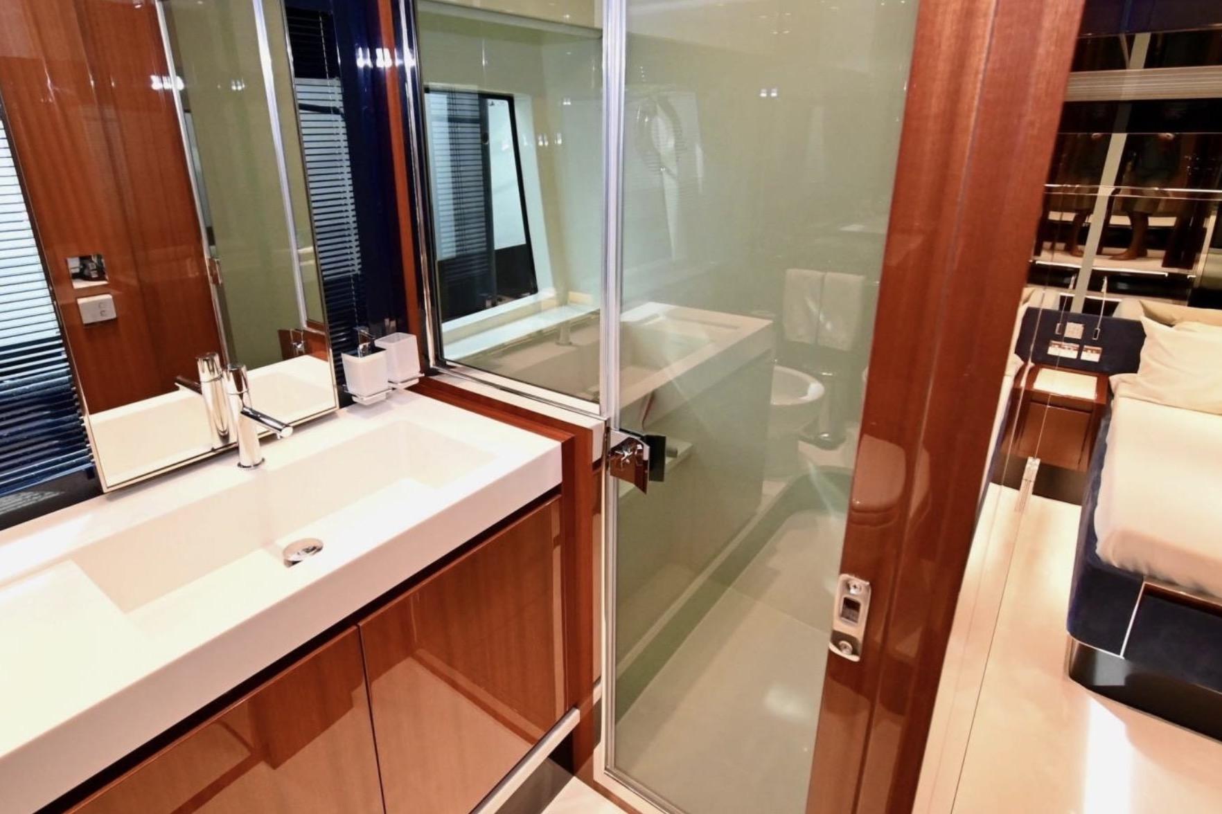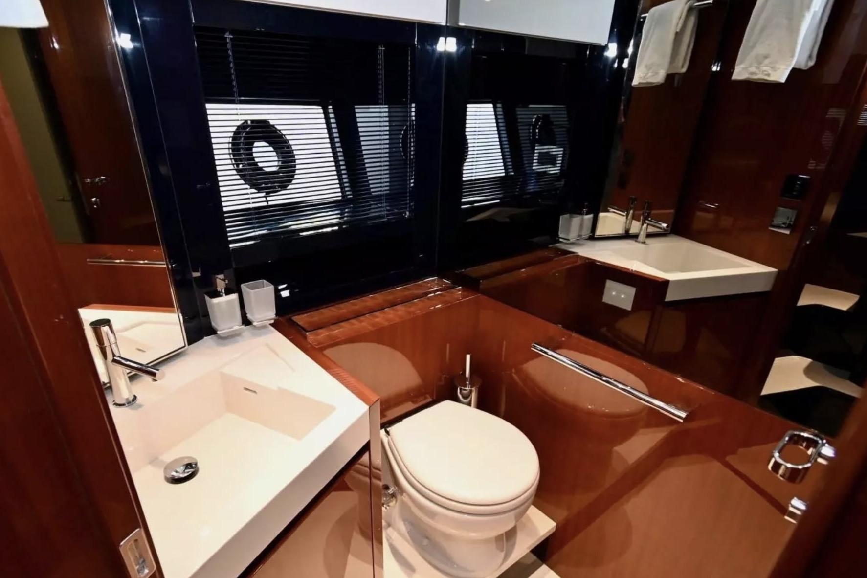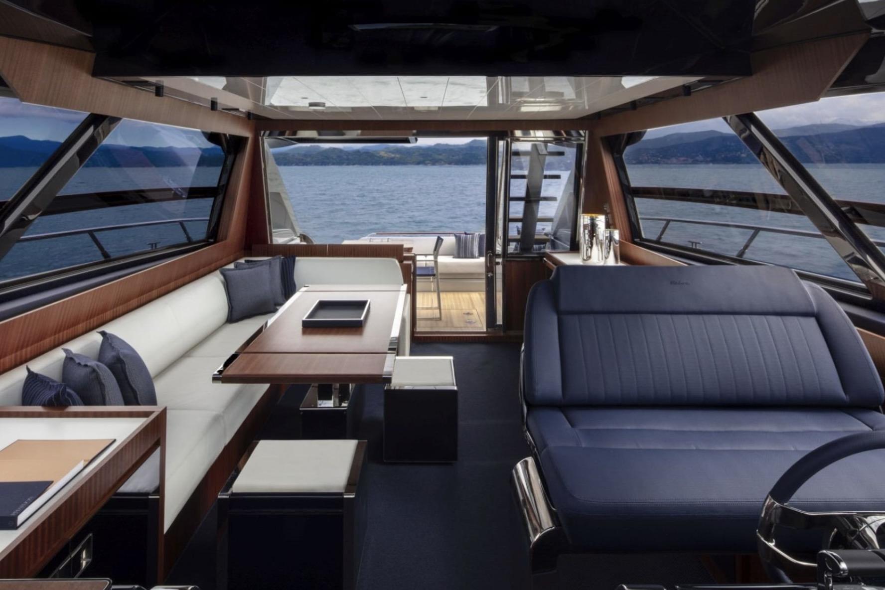 The interior offers luxurious accommodations with three well-appointed cabins and three heads, providing ample space for relaxation and comfort. This 66' Ribelle embodies the Riva spirit in her own inimitable style, with an exhilarating blend of technology and beauty.