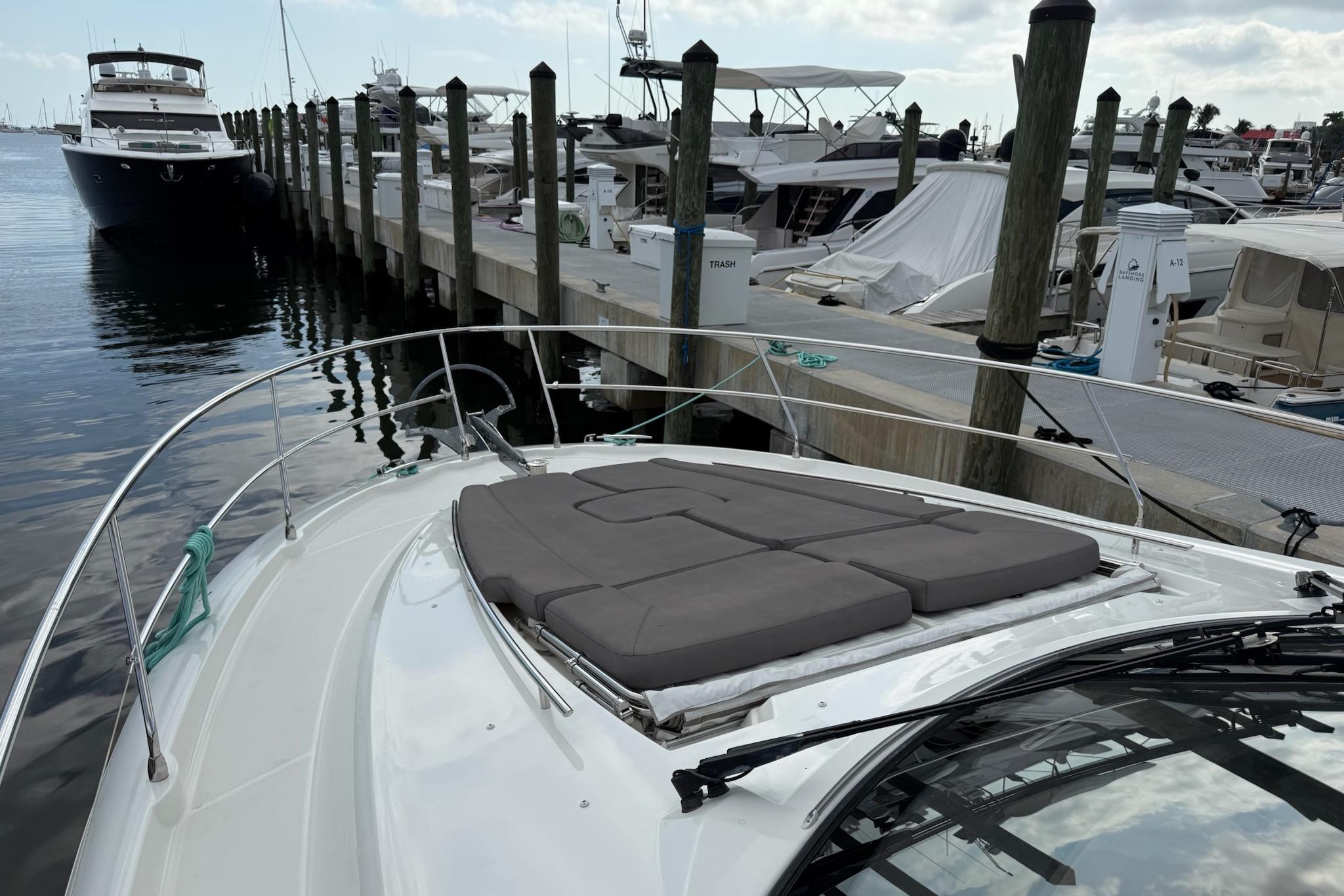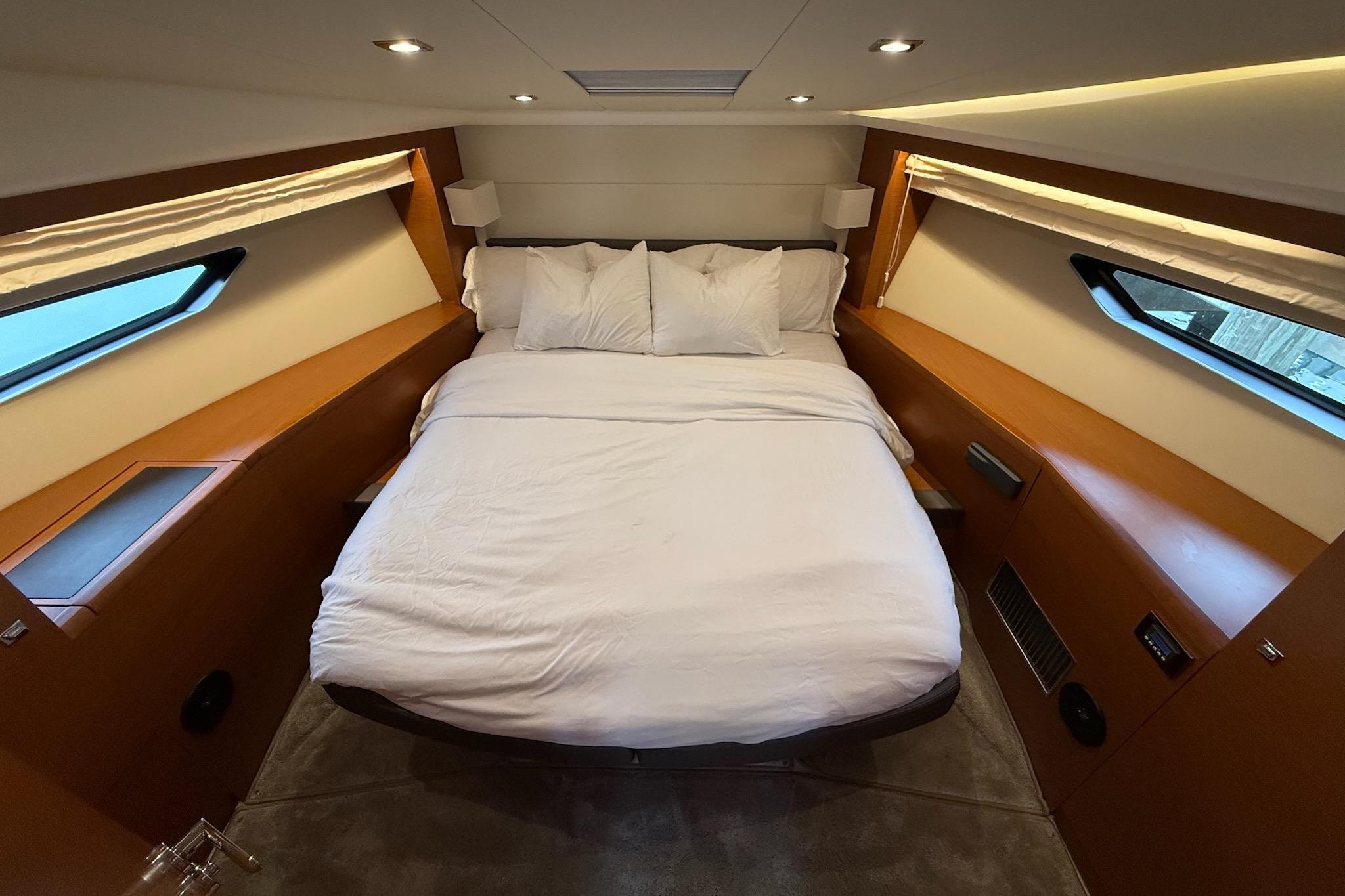 As the only Prestige 500S on the market with Dynamic Positioning System, combined with her low 3'4" draft and 13’4” air clearance, Top Nach eliminates most bridge delays while accessing shallow harbors and waterways that larger yachts cannot reach. The impressive 4.5 miles per gallon at hull speed (approximately 1.5 GPH combined fuel burn) and effective range of over 1,000 Nautical Miles means extended cruising with minimal fuel stops, while the quiet IPS drive system ensures comfortable, controlled, safe cruising.