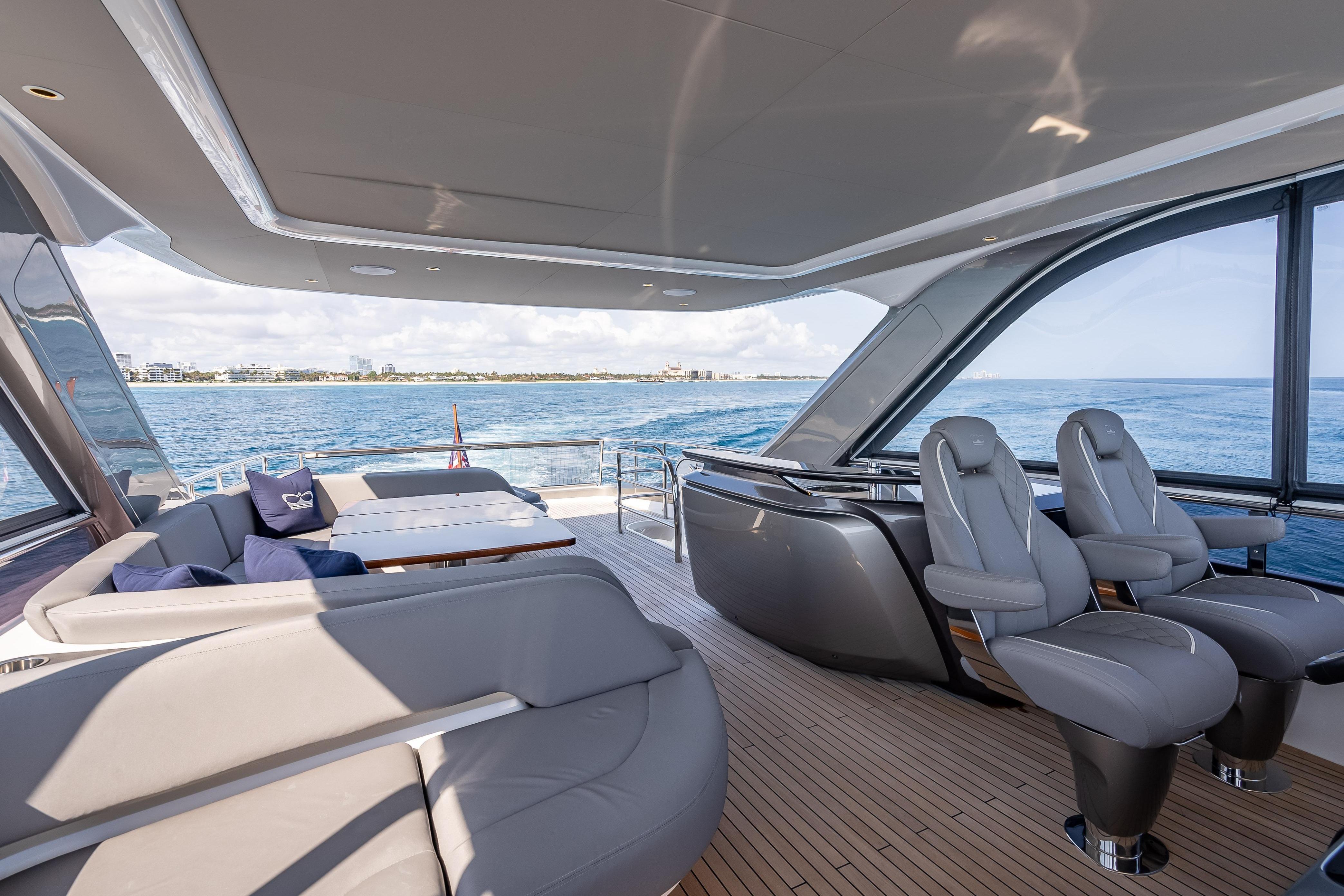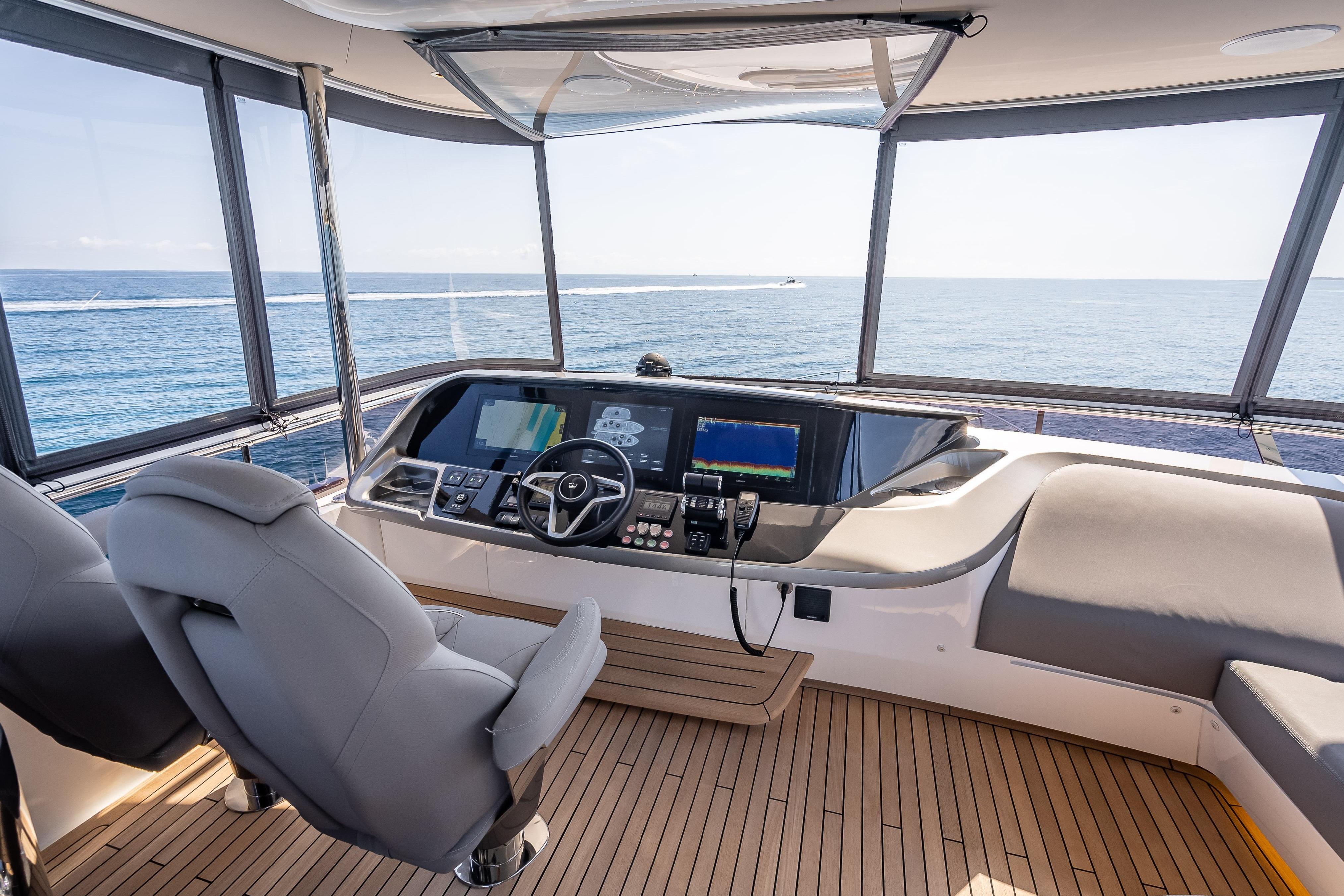 - Custom flybridge enclosure, high-gloss tables, JL & NAIM premium audio