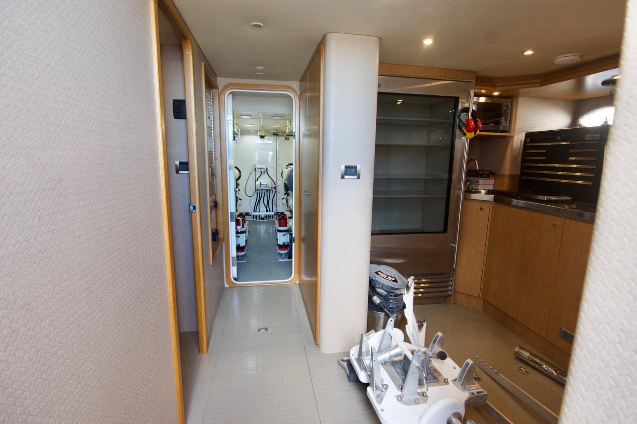 - Large utility locker with dive bottle storage and access to Glendinning cable basket