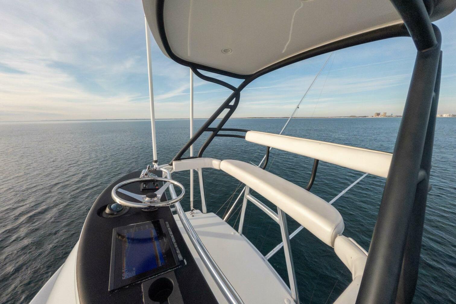 The Bridge layout is quite impressive, with its completely redesigned, updated custom helm area, with all new electronics as well. This area is fully air-conditioned and offers seating for 10 people. All new EZ2CY enclosure, Full PB Tower With Hardtop, new RUPP riggers, and Faux Teak by Monique.