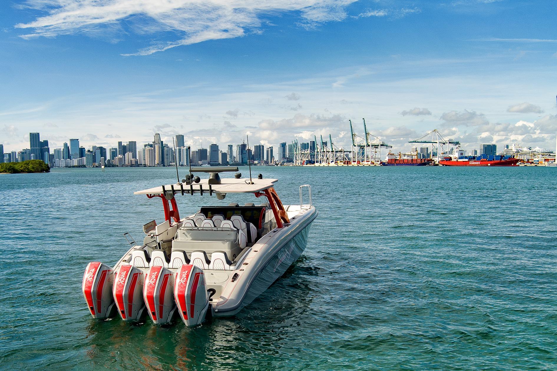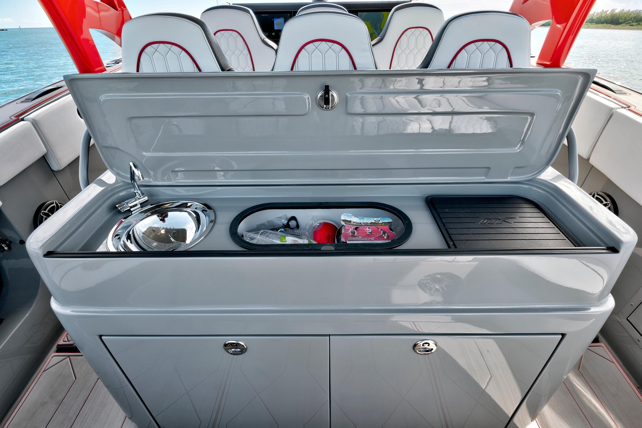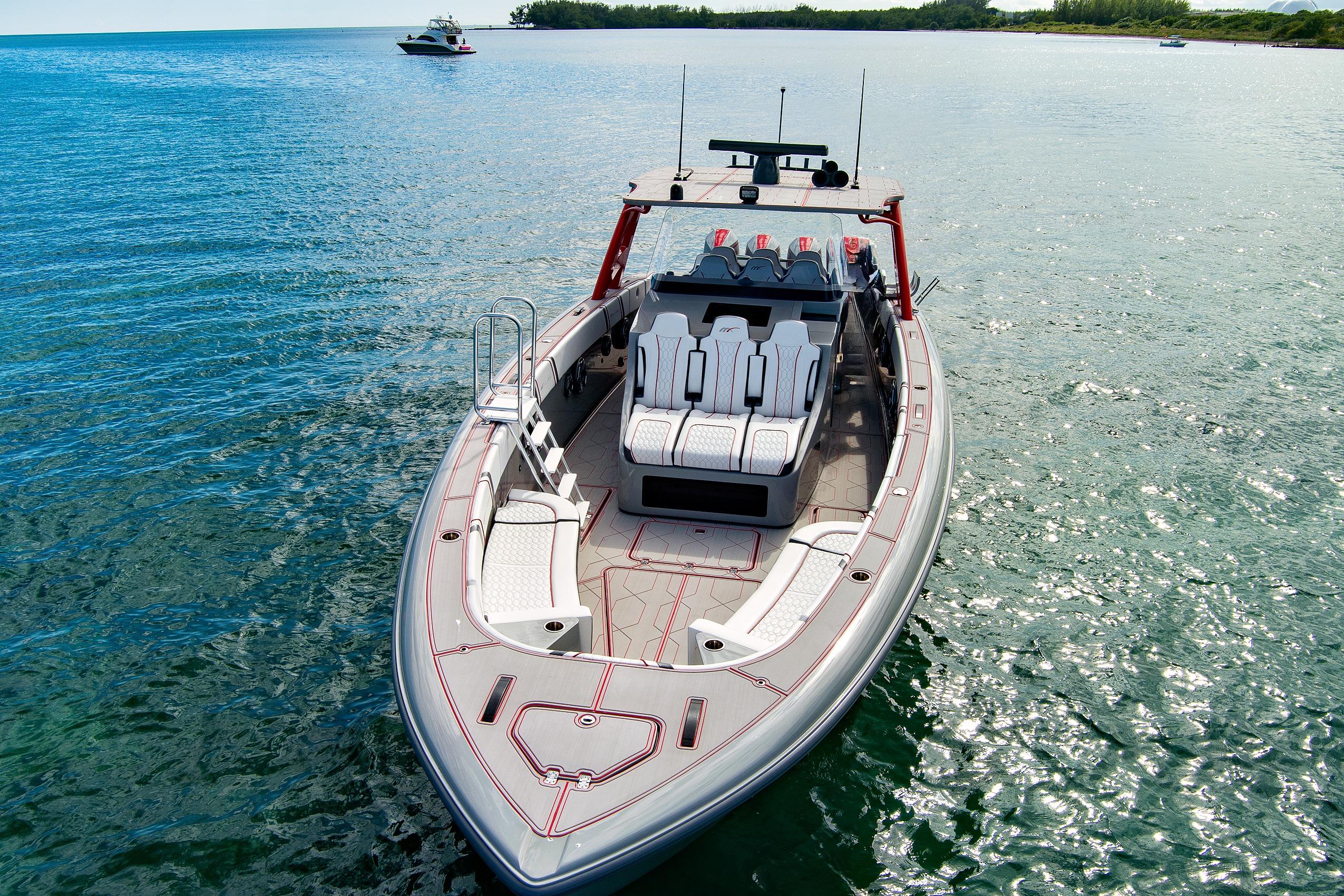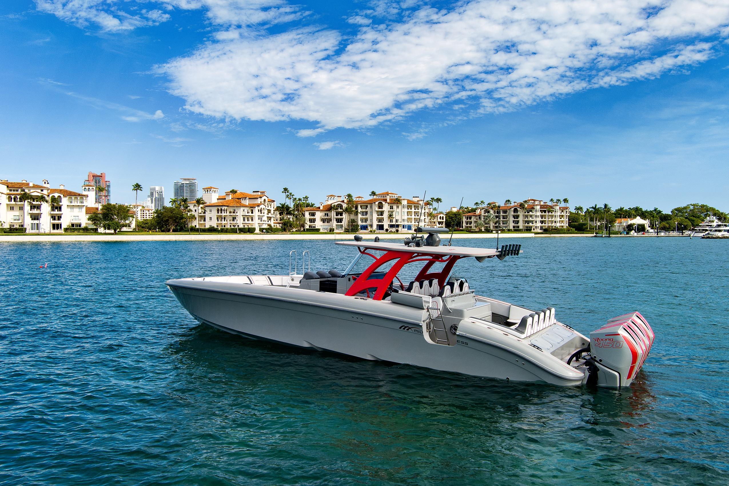 The 2023 Midnight Express 43 Open is engineered for serious offshore performance, delivering a rare blend of speed, stability, and luxury. Its advanced deep-V hull slices through chop with confidence, while optional quad or quint outboards provide exhilarating top-end power. A wide beam offers exceptional deck space with premium seating, full-beam storage, and a state-of-the-art helm outfitted with multifunction Garmin displays. From integrated LED lighting to precision-molded composites, every detail showcases high-performance craftsmanship. Whether you’re running to the sandbar or cruising offshore, the 43 Open delivers unmatched versatility, comfort, and control.
