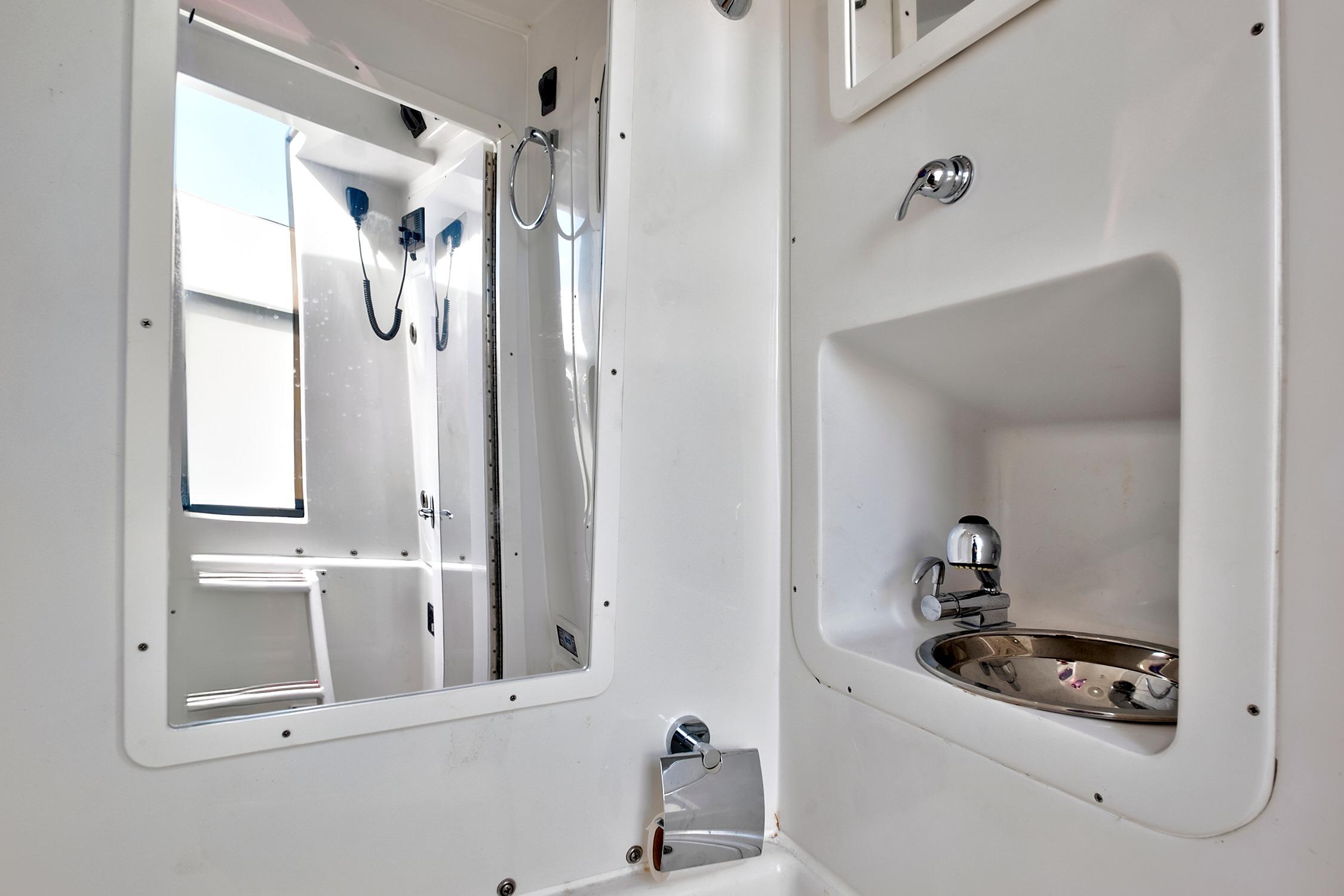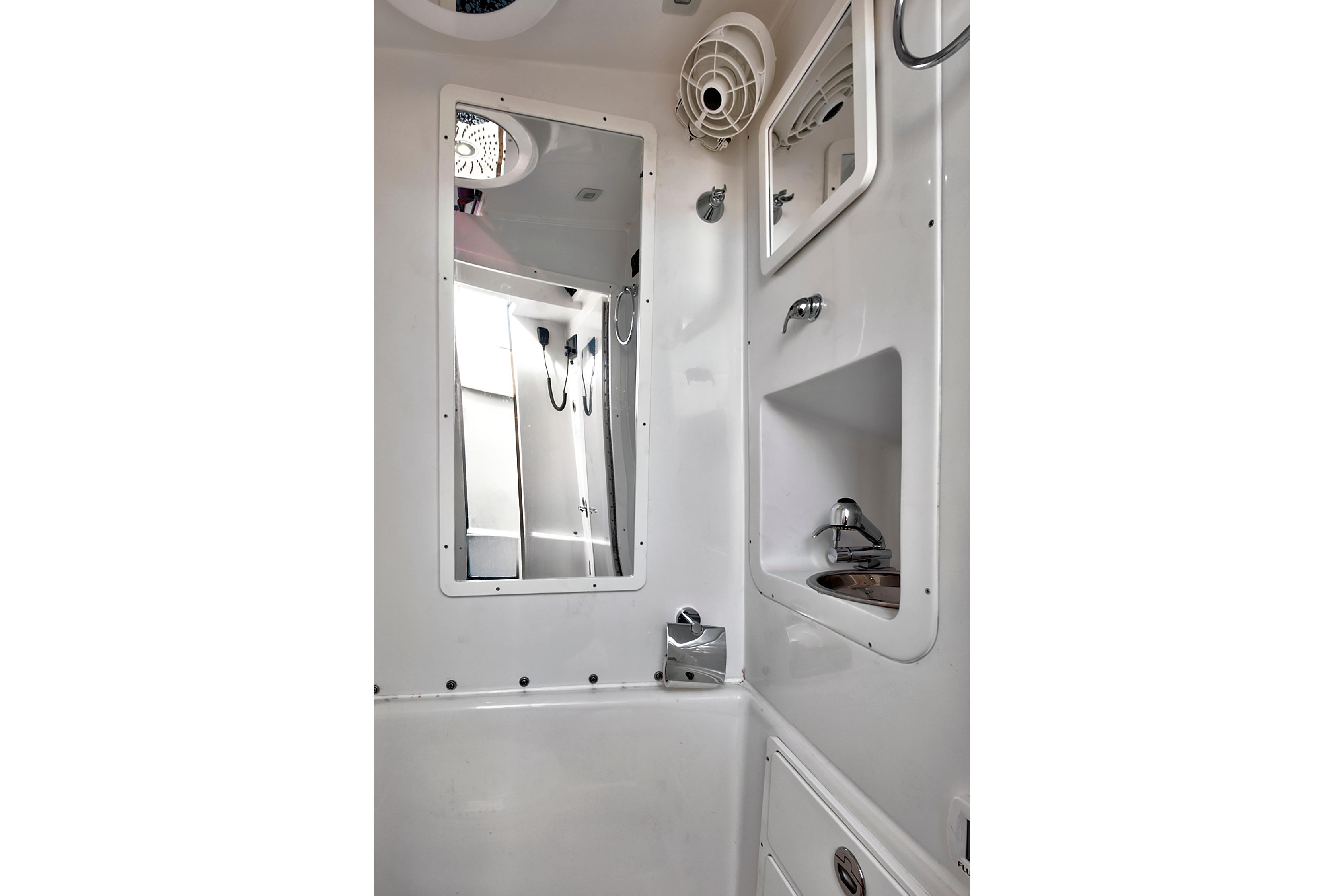 - Head Compartment with Separate Stand-Up Shower in Console with Sink and Electric Fresh Water Head