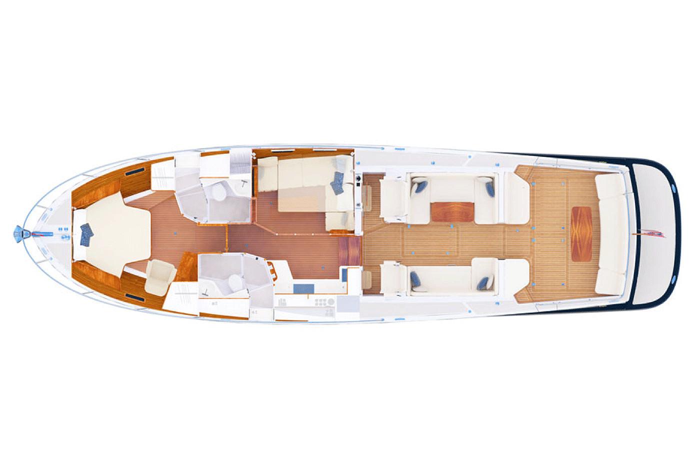 The MJM 50z is an eco-smart game-changer featuring advanced composite construction, an innovative layout and the latest stabilizing technology. Her stronger, lightweight epoxy construction results in a very low vertical center of gravity. That translates into greater stability, ISO-certified Category A seaworthiness, and an impressively comfortable ride. MJM 50z was the first motoryacht worldwide to offer the "no roll" Seakeeper Gyrostabilizer as standard equipment. Adding further to comfort and livability: Her flush-deck layout from cockpit to helm combined with side boarding doors at floating dock height eliminates the many up-downs and boarding access challenges of other yachts.