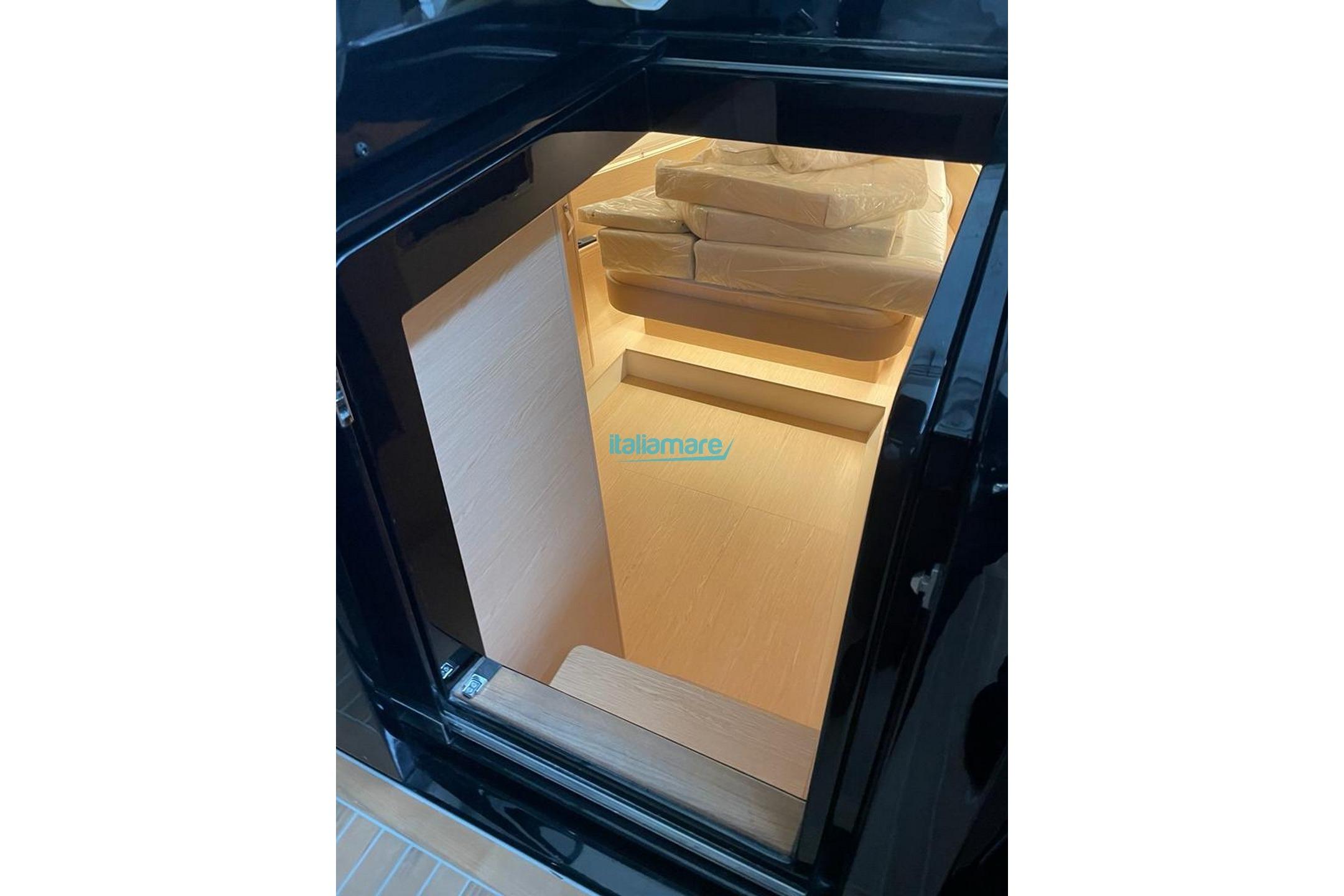 Accessori principali: Aria condizionata - GPS - Strumentazione Garmin - Pozzetto in teak - Camminamneti laterali in teak - Tavolo pozzetto in teak - Piattaforma idraulica in teak - Pilota automatico - T-Top - Stereo