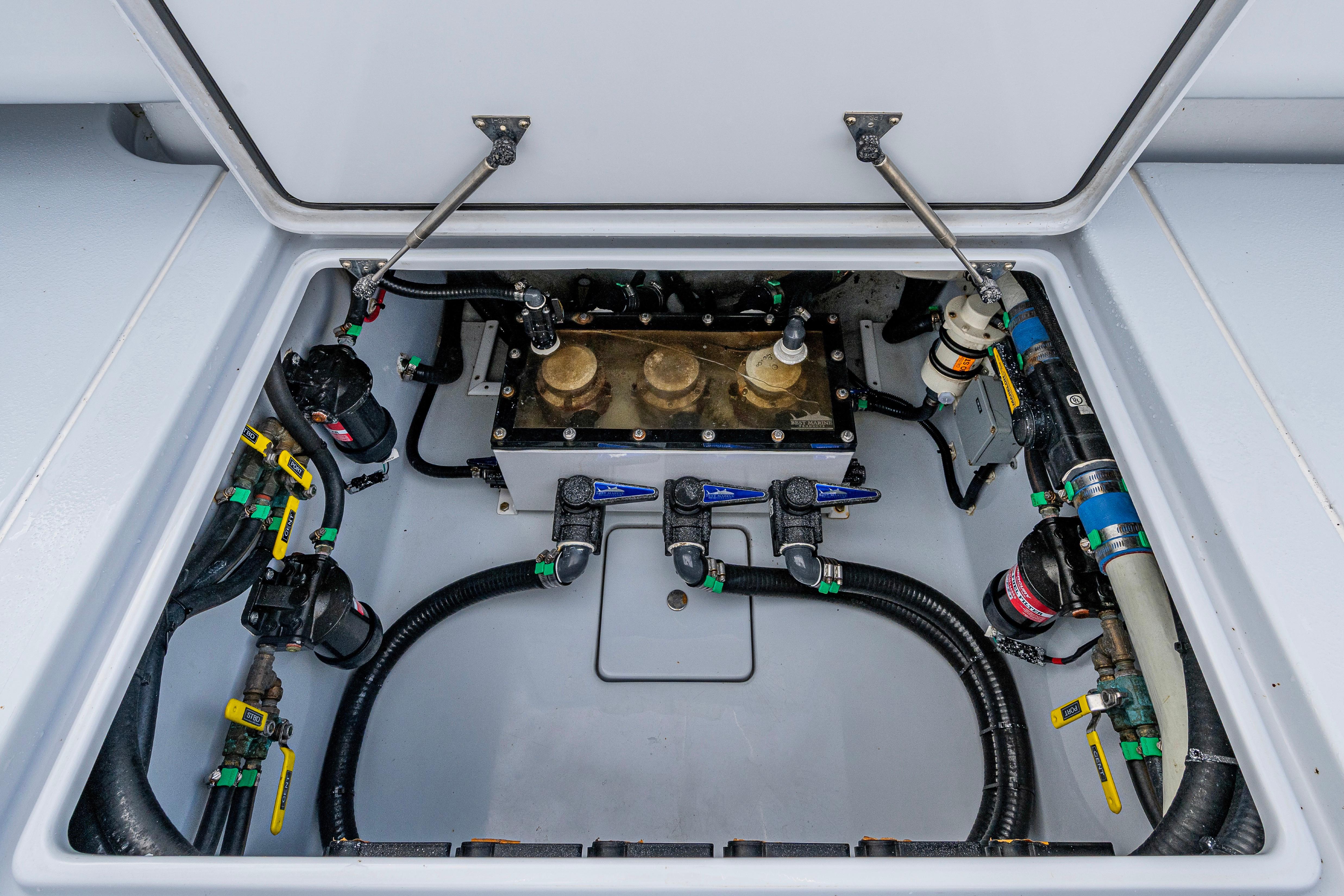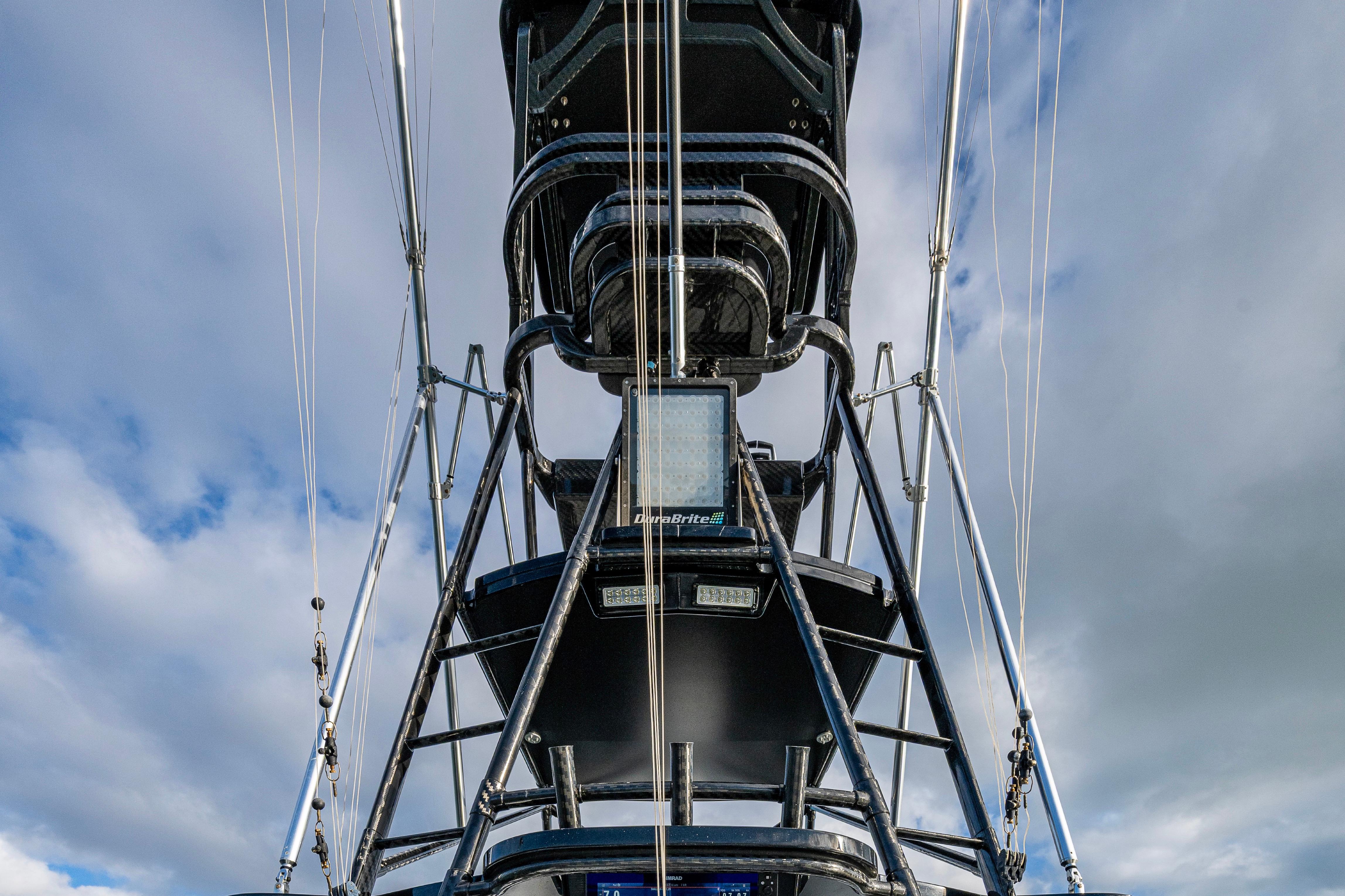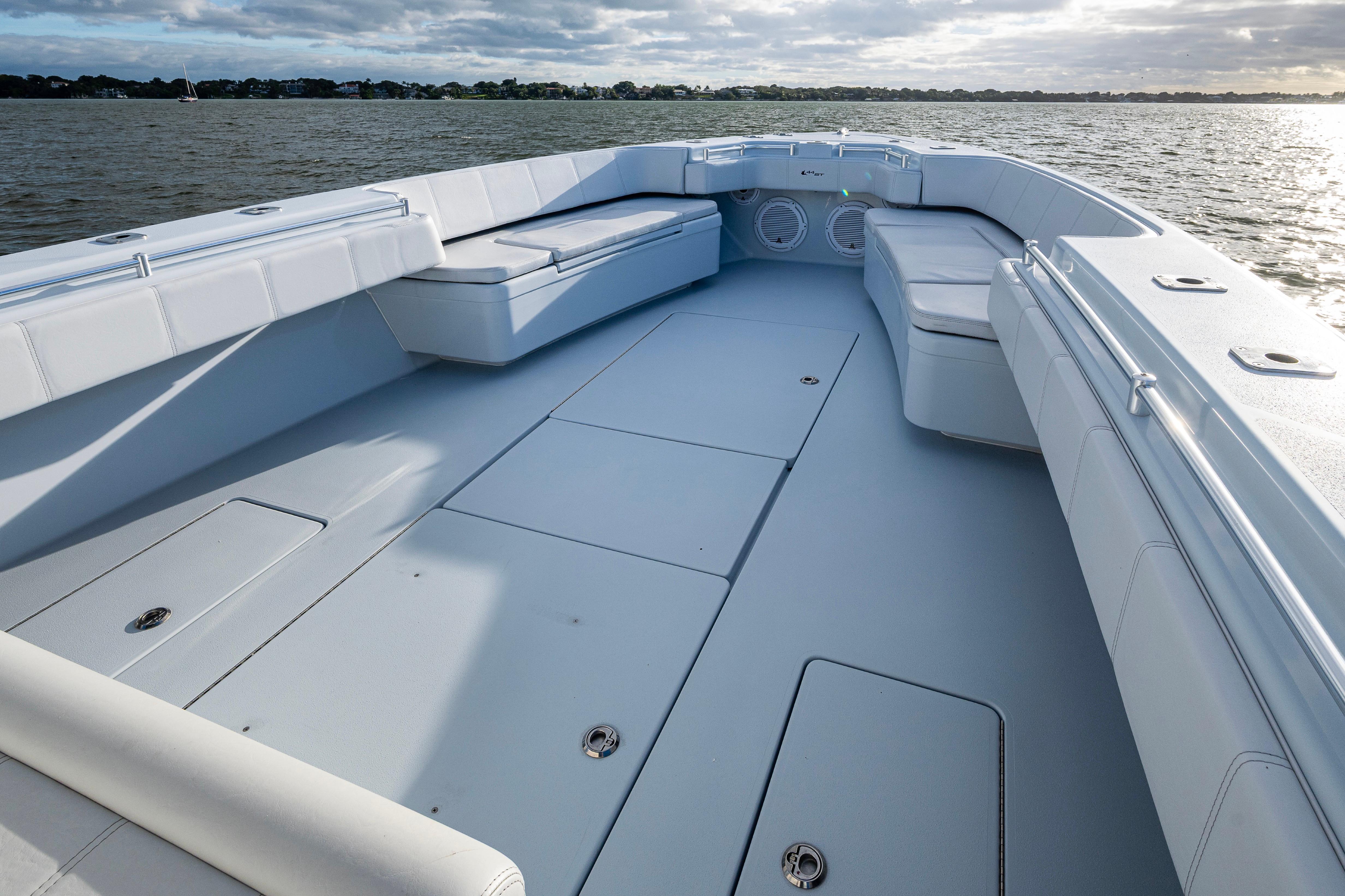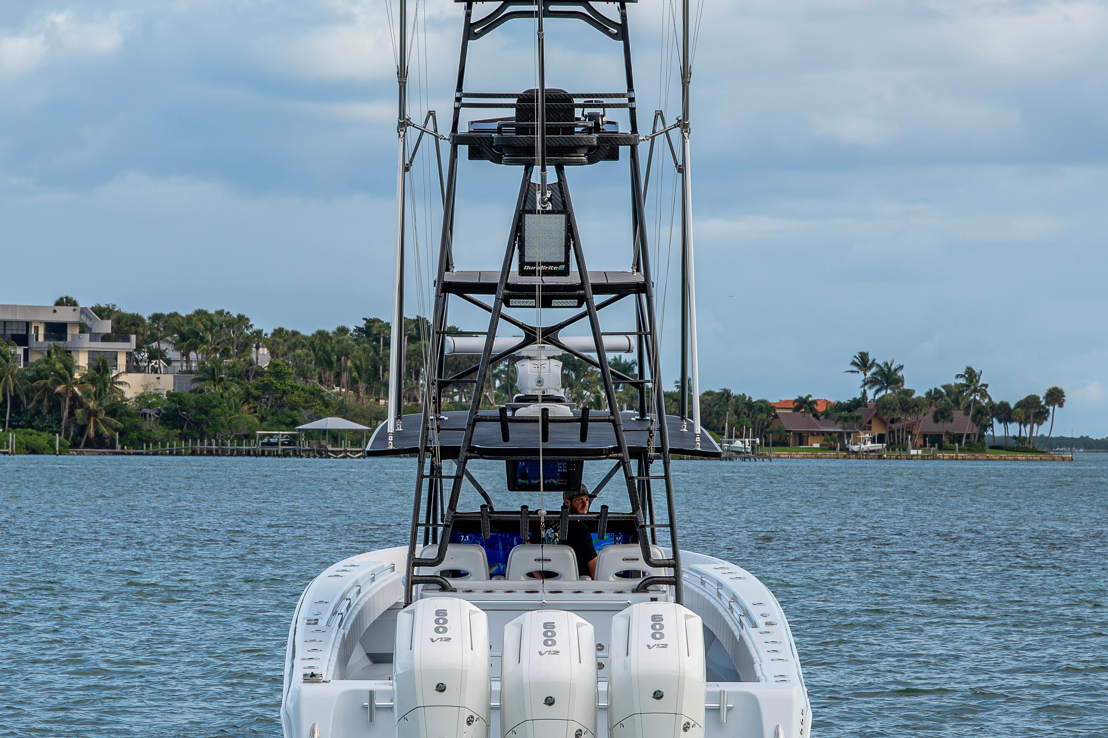 With a beam of over twelve feet, length of 44 feet, 600 gallons of fuel capacity, and a 2,000 max HP rating, the 44ST is certain to deliver on the promise of “performance through innovation.” Powered with triple or quad engine configurations, the boat excels in speed, performance, and reliability.