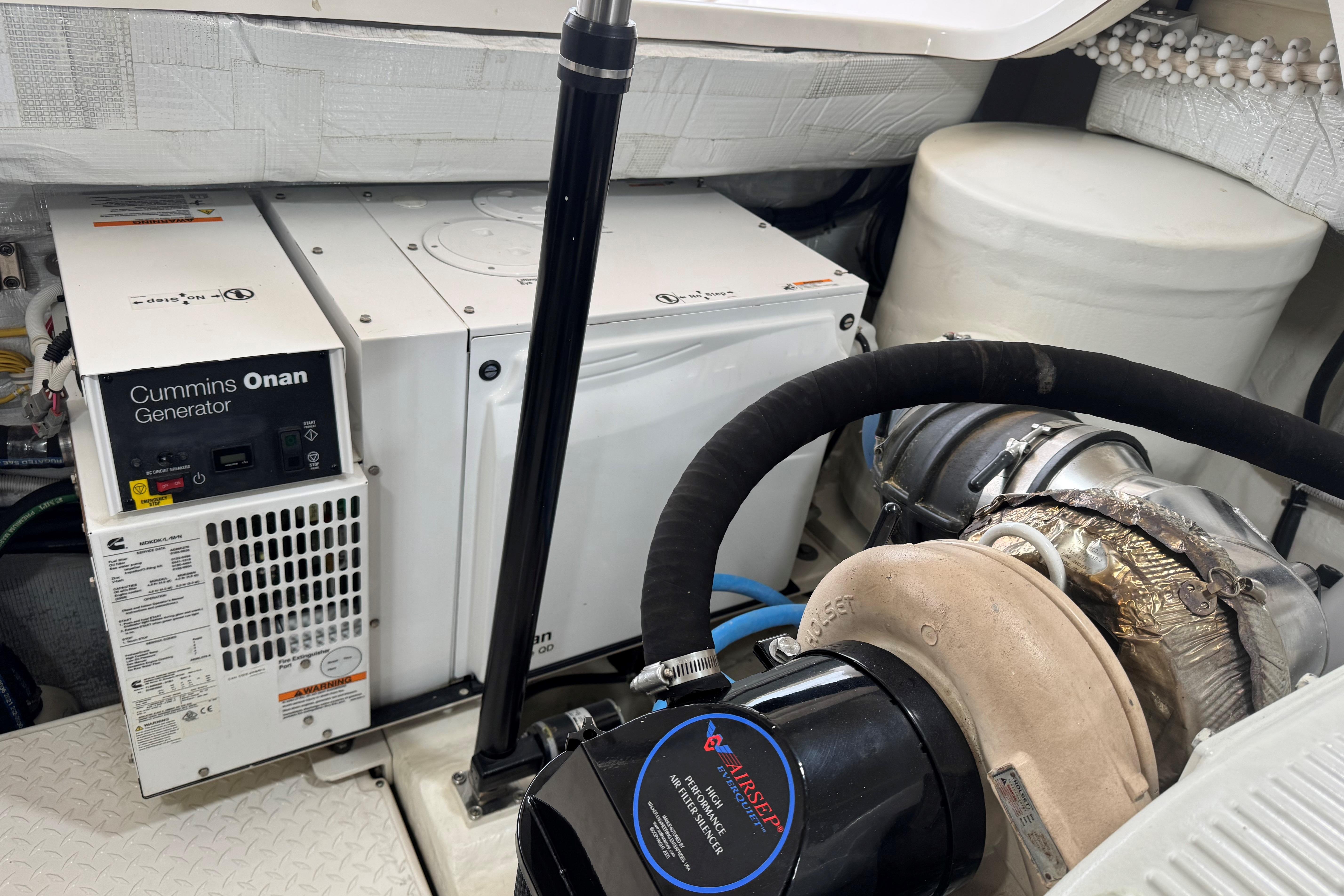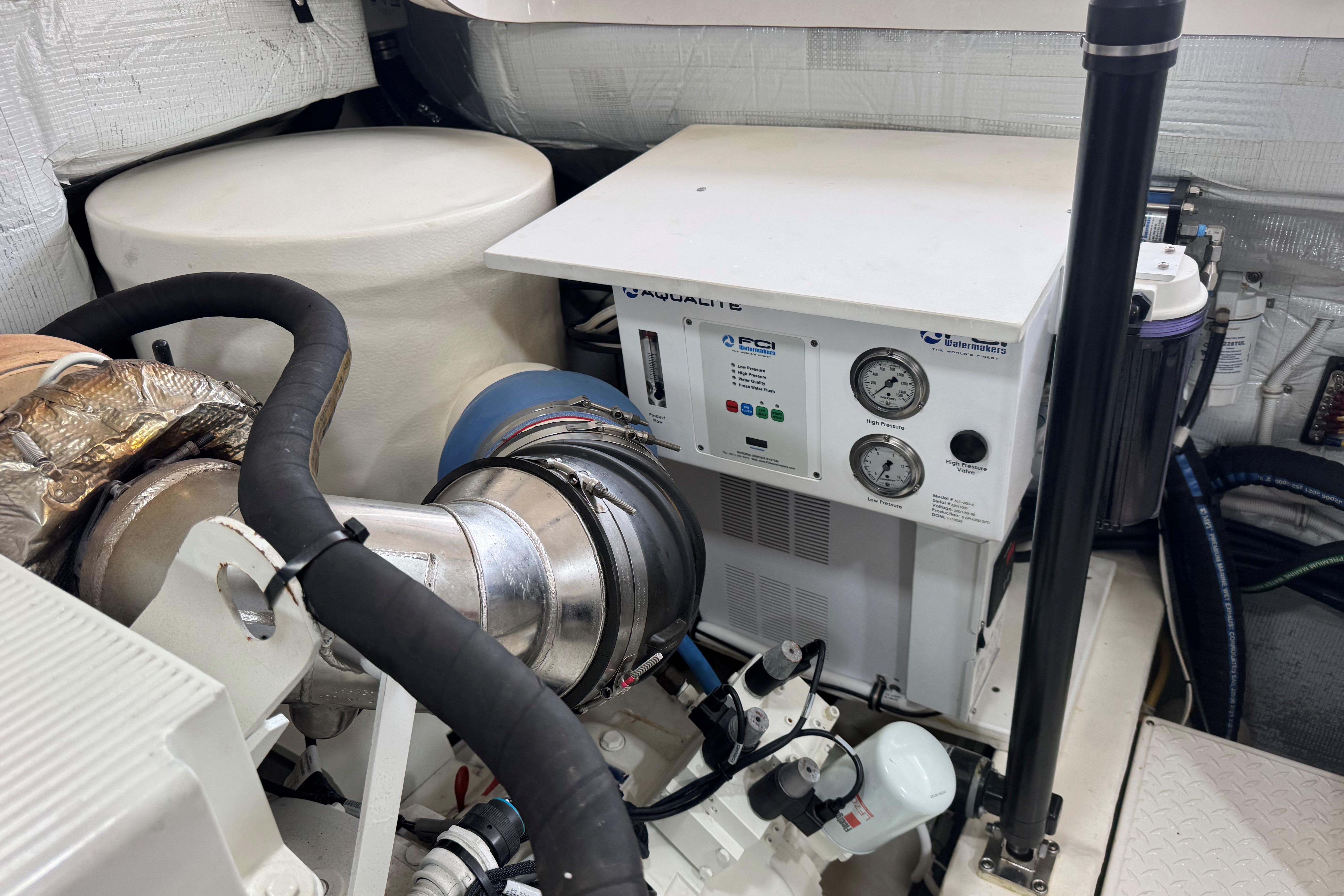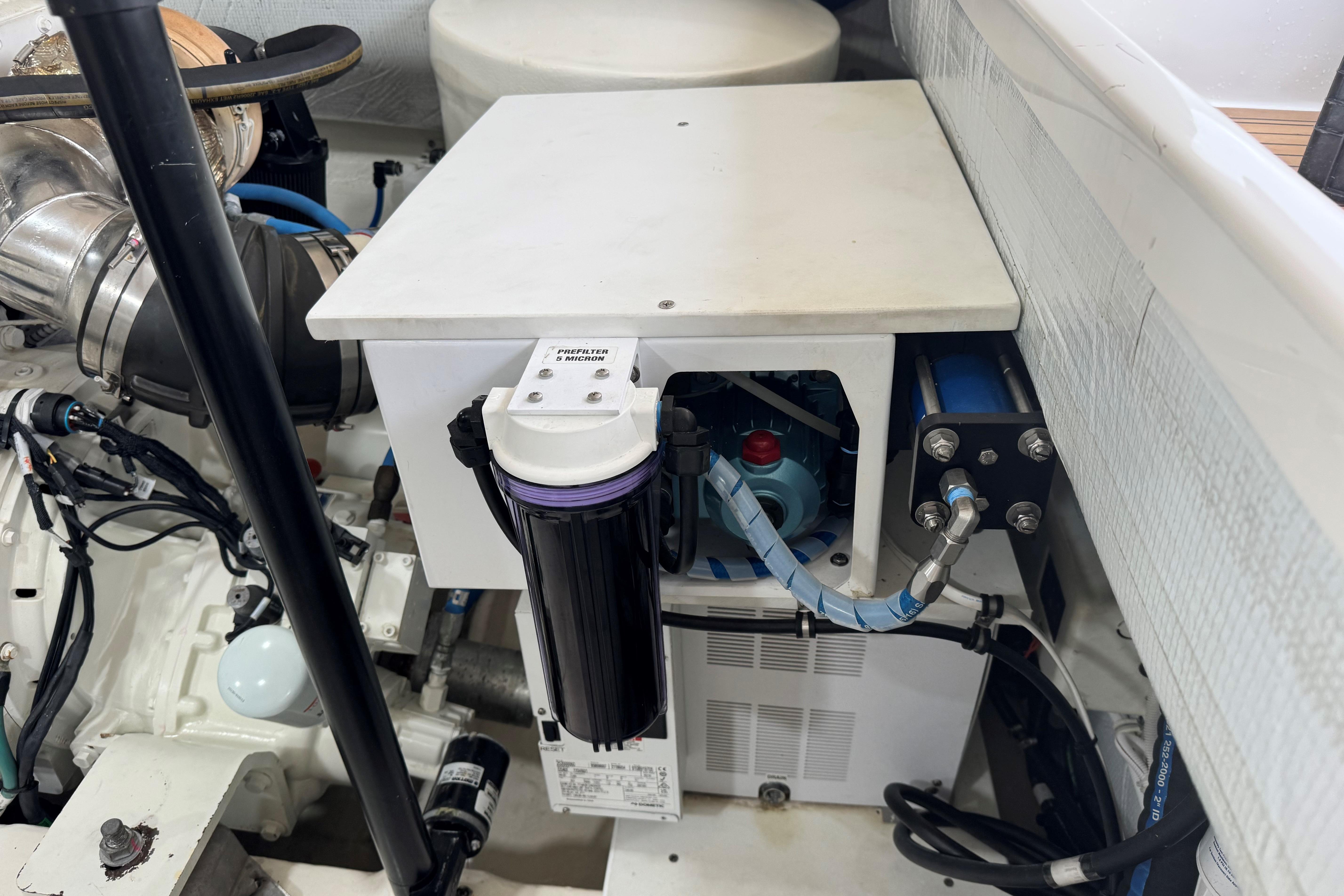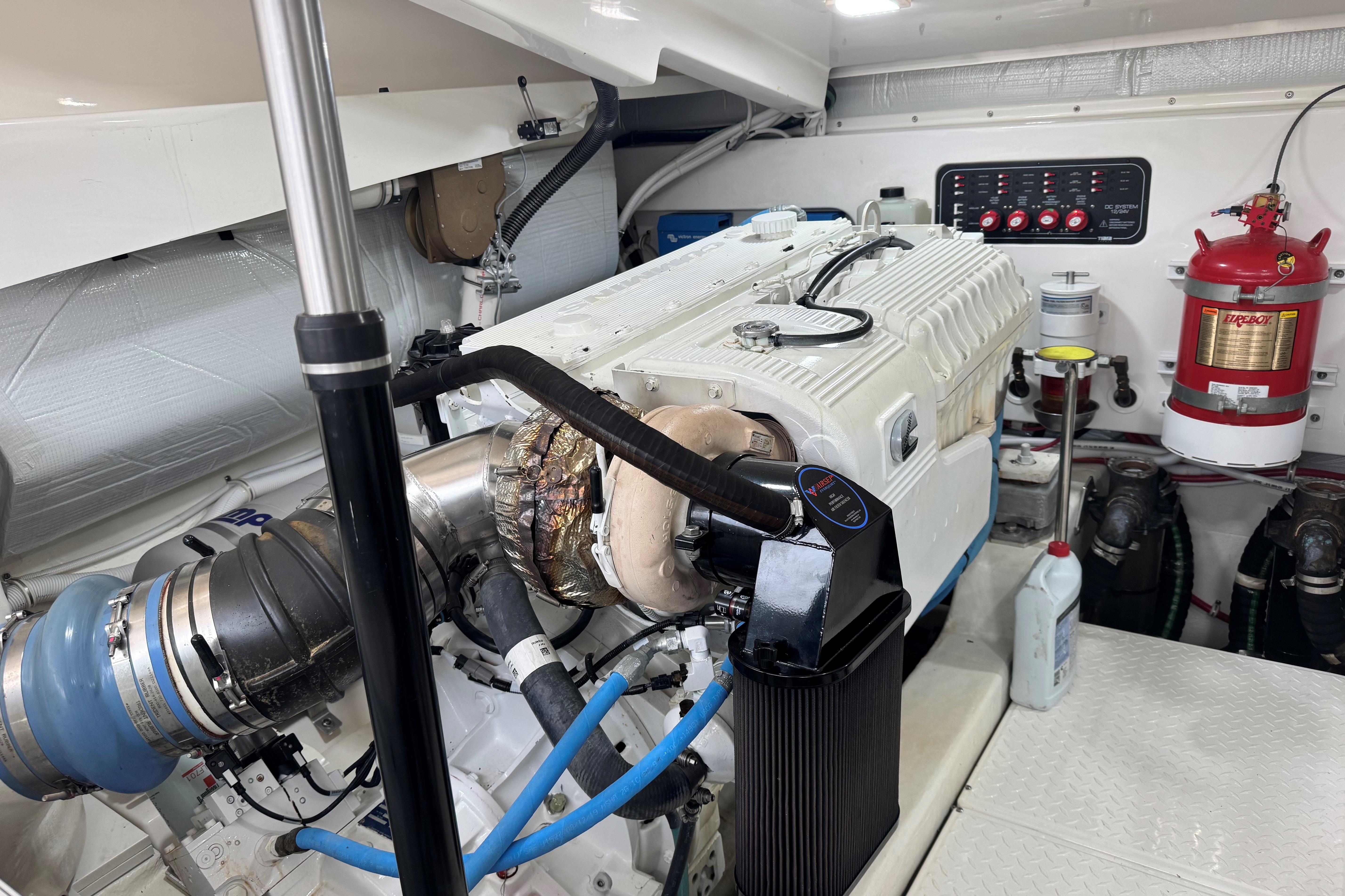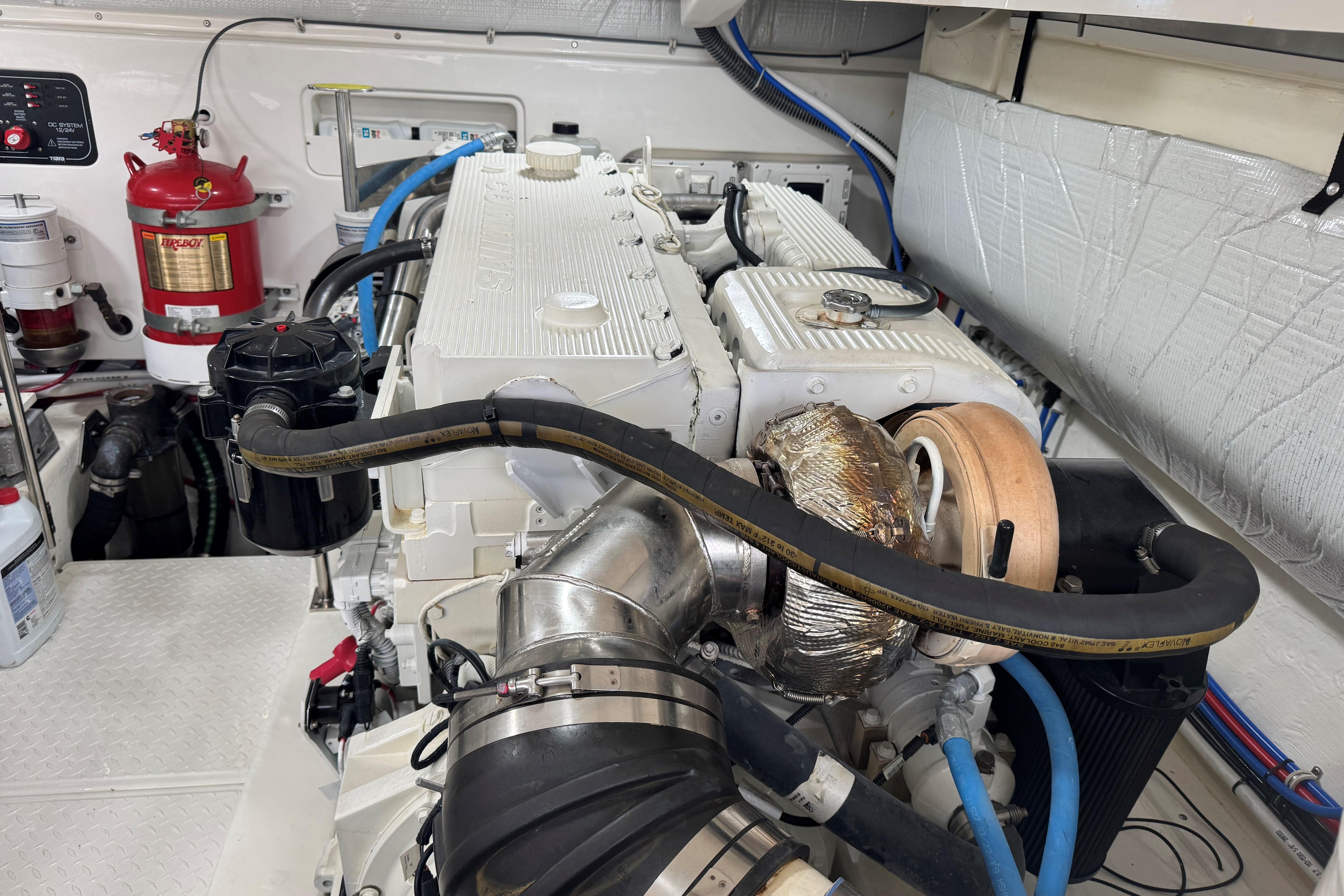 SALES / SERVICE / CUSTOMER HISTORY: September 2025-twin diesel engine 1,000 service including oil & filter change, primary & secondary fuel filter change, engine zincs changed, DCA filter changed, checked DCA concentration, checked antifreeze concentration. Port & stbd heat exchanger removal, service & reinstallation including changed hoses & clamps, replaced O-rings. Port & stbd after cooler removal, service & installation including changed cross over connection O-rings, changed boost hose, changed gasket, pressure tested, primed and painted, replaced raw water impeller. Port & stbd changed valve cover gasket, replaced air filter, and replaced belt. Generator service including oil & filter service, fuel filter service, changed zincs, changed the impeller on generator water pump, bottom paint, running gear, trim tab, bow thruster, & underwater light paint , change zincs. Seakeeper serviced Spring of 2024 including accumulator replacement, hydraulic oil flush, inspect brake bushings, inspect hydraulic cylinders & hoses, coolant systems flush, angle sensor calibration, inspection of all electrical connections cables & components, inspect all mounting hardware.