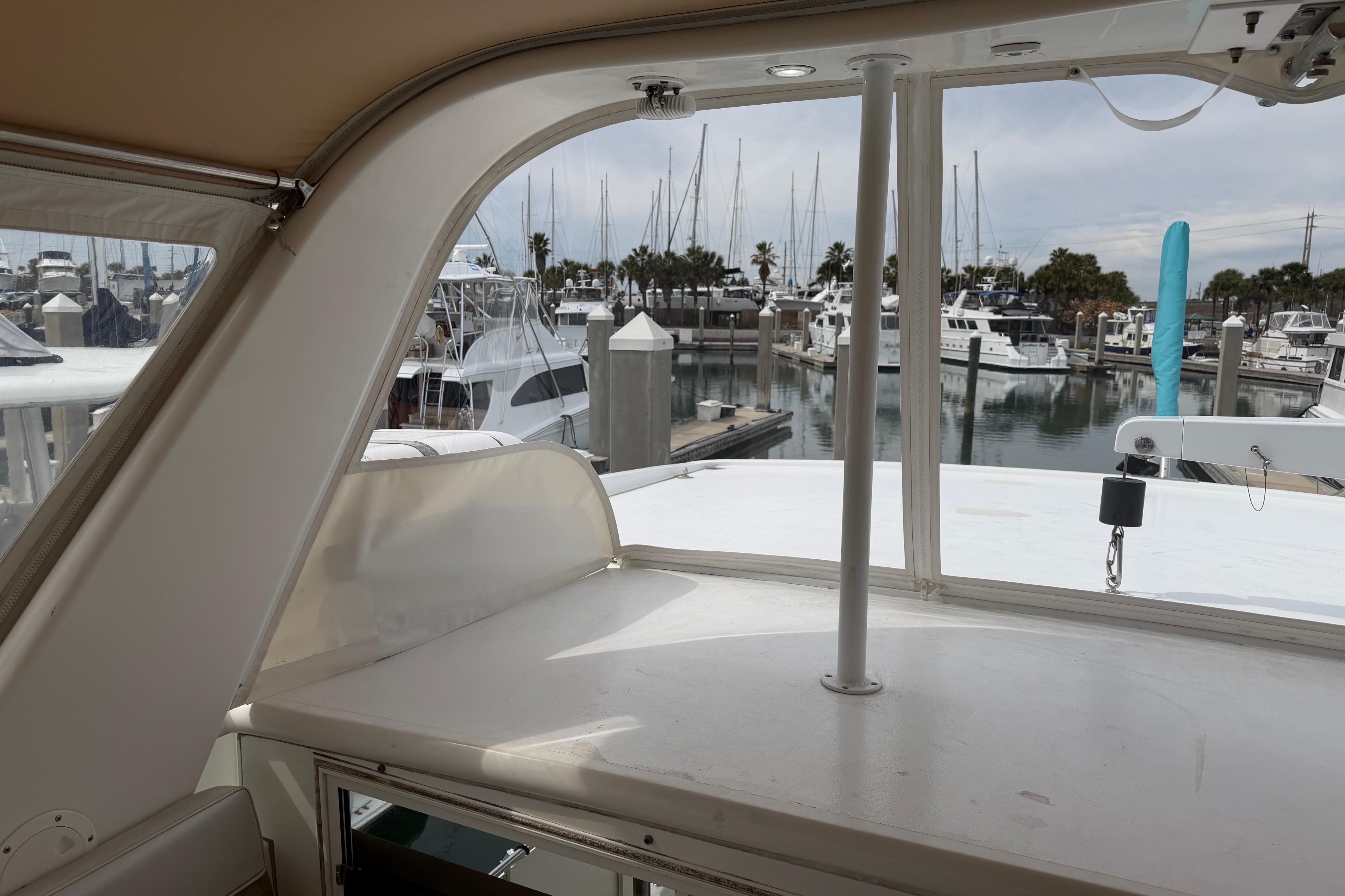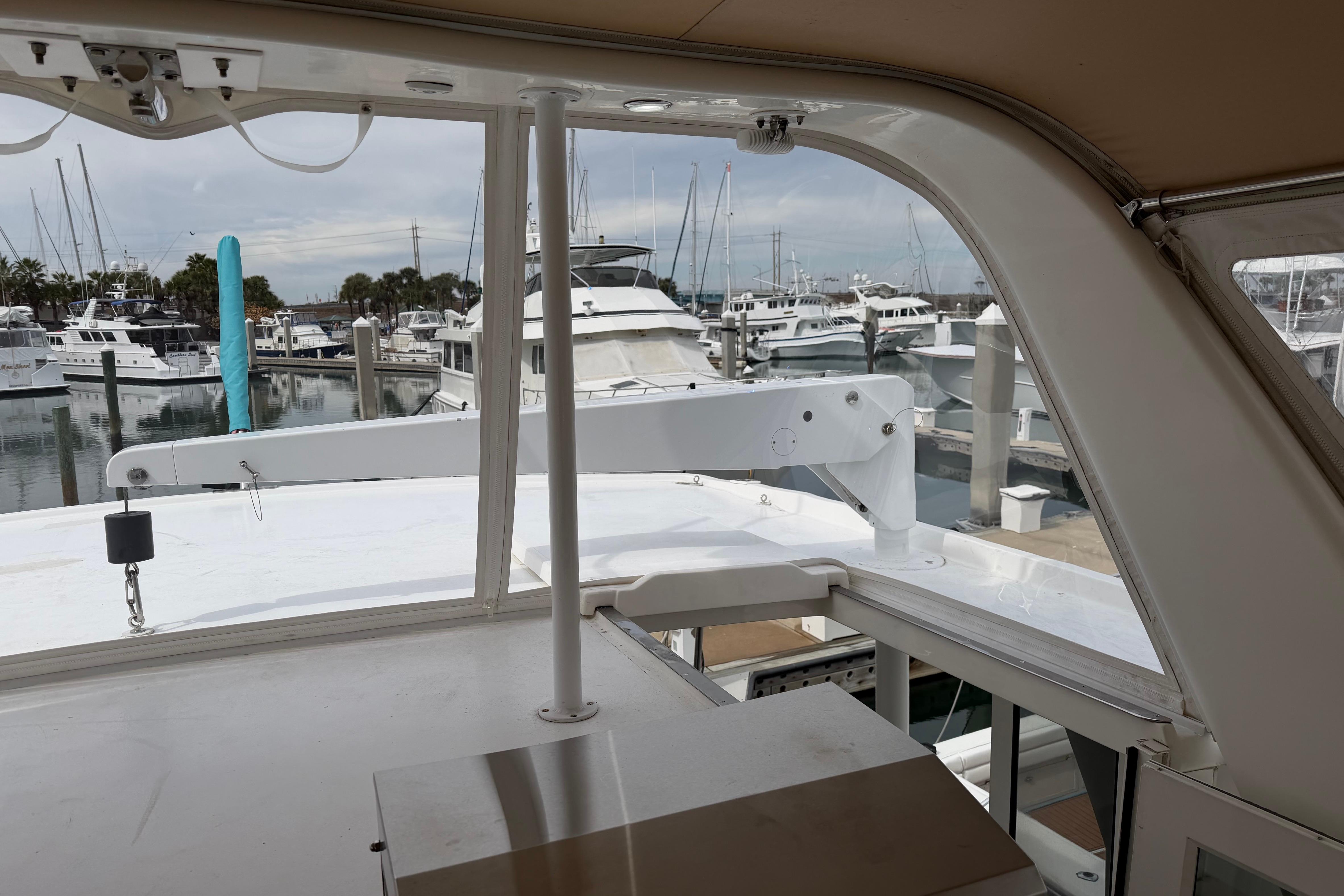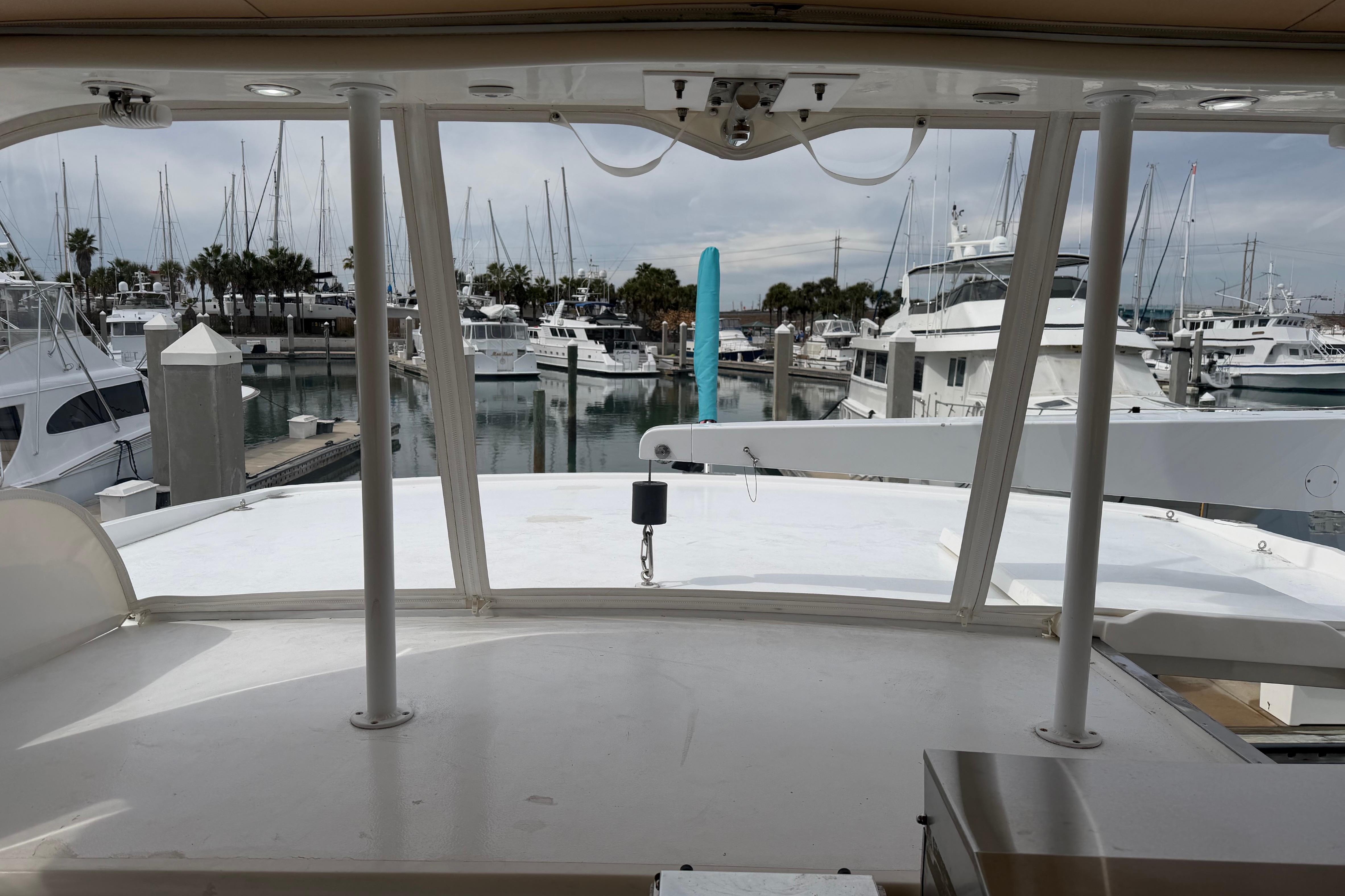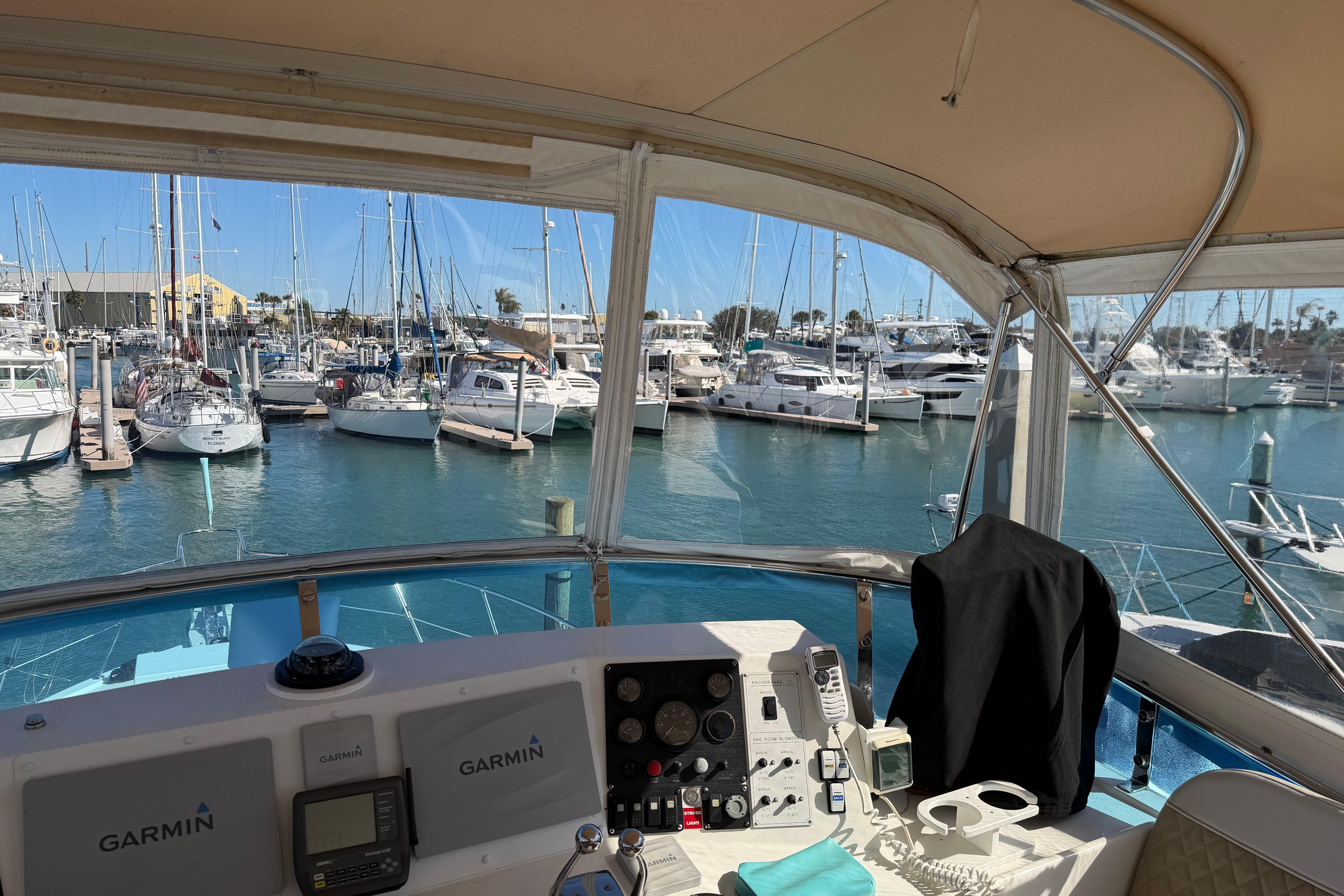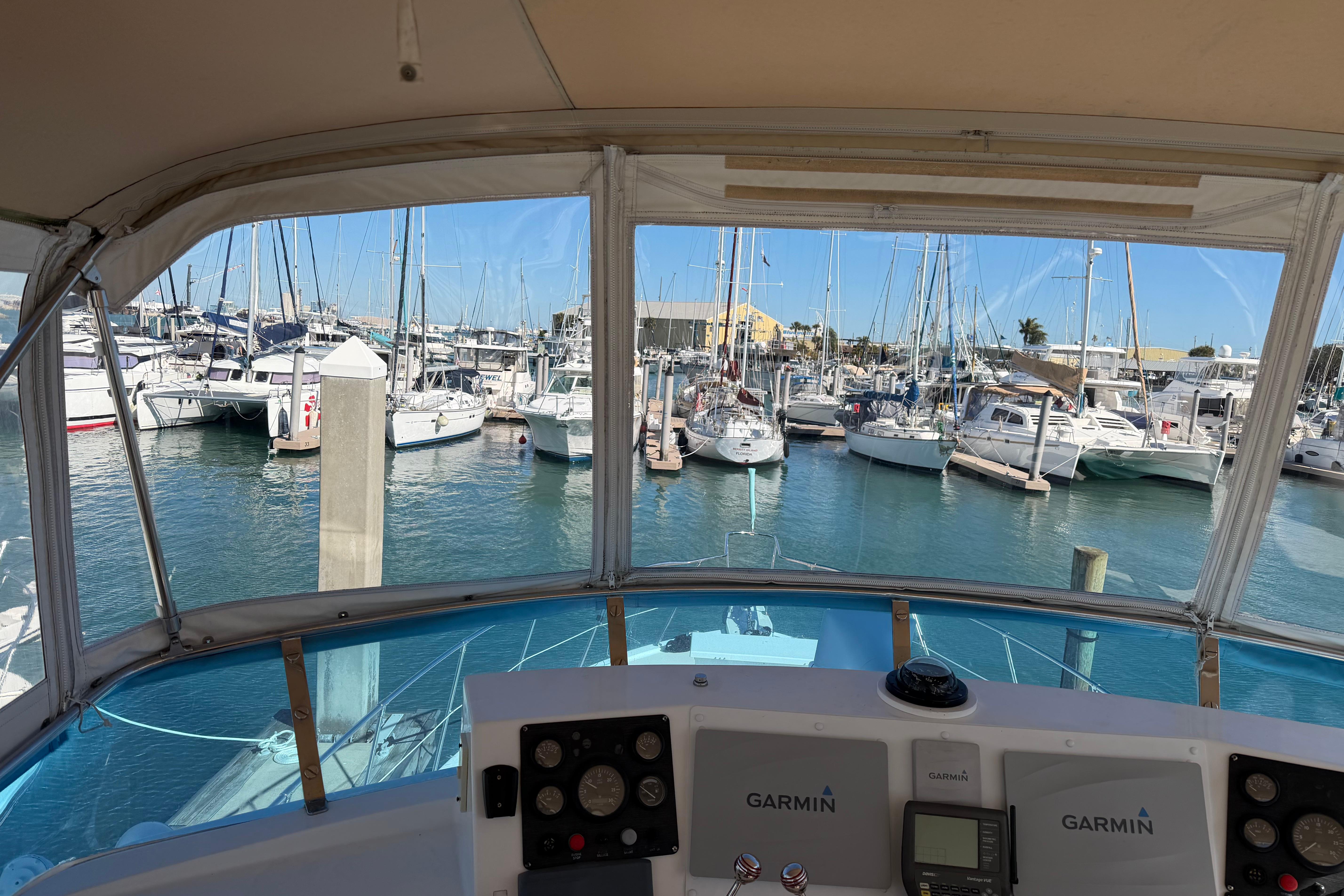 Recent upgrades have made the flybridge an especially enjoyable space. New isinglass has been installed around the bridge enclosure, allowing it to be fully air conditioned with the newly added flybridge A/C. This creates a comfortable, climate-controlled area that’s perfect for summer cruising and entertaining, even on the warmest days.