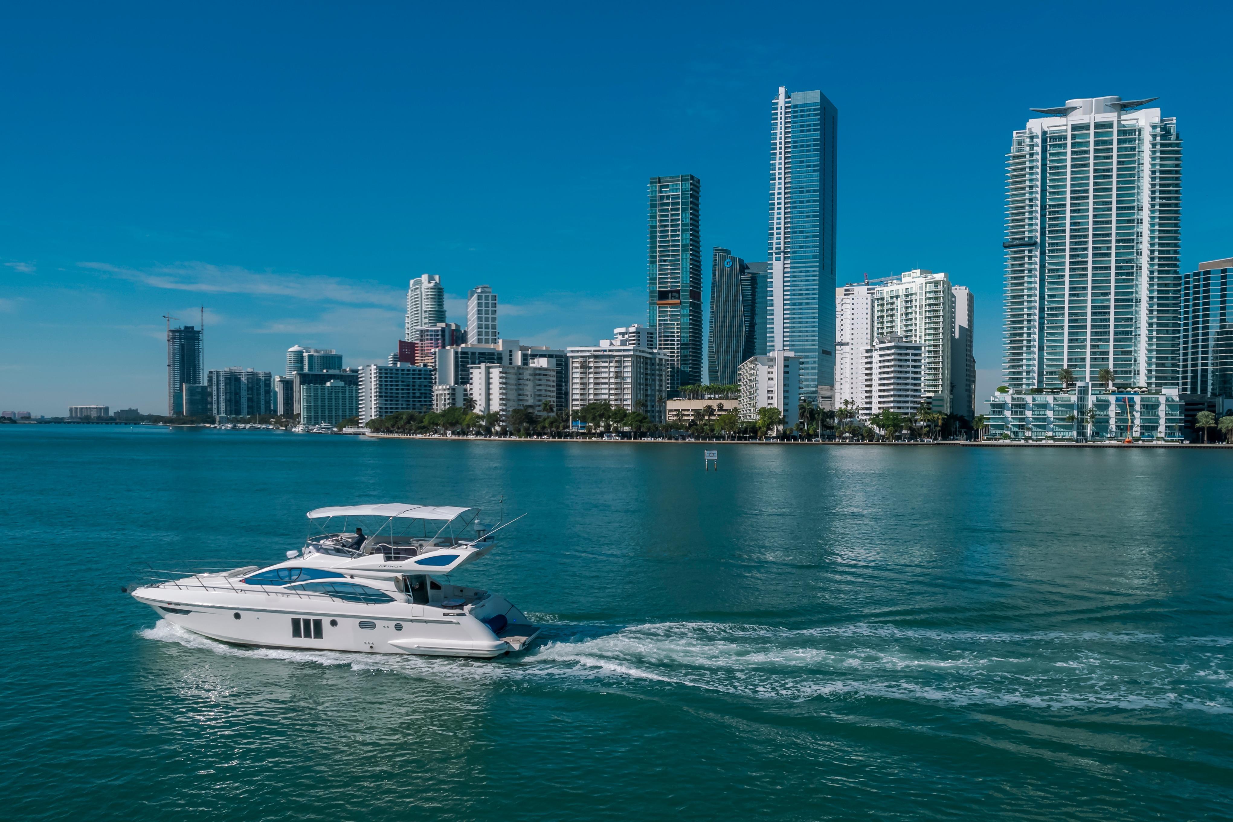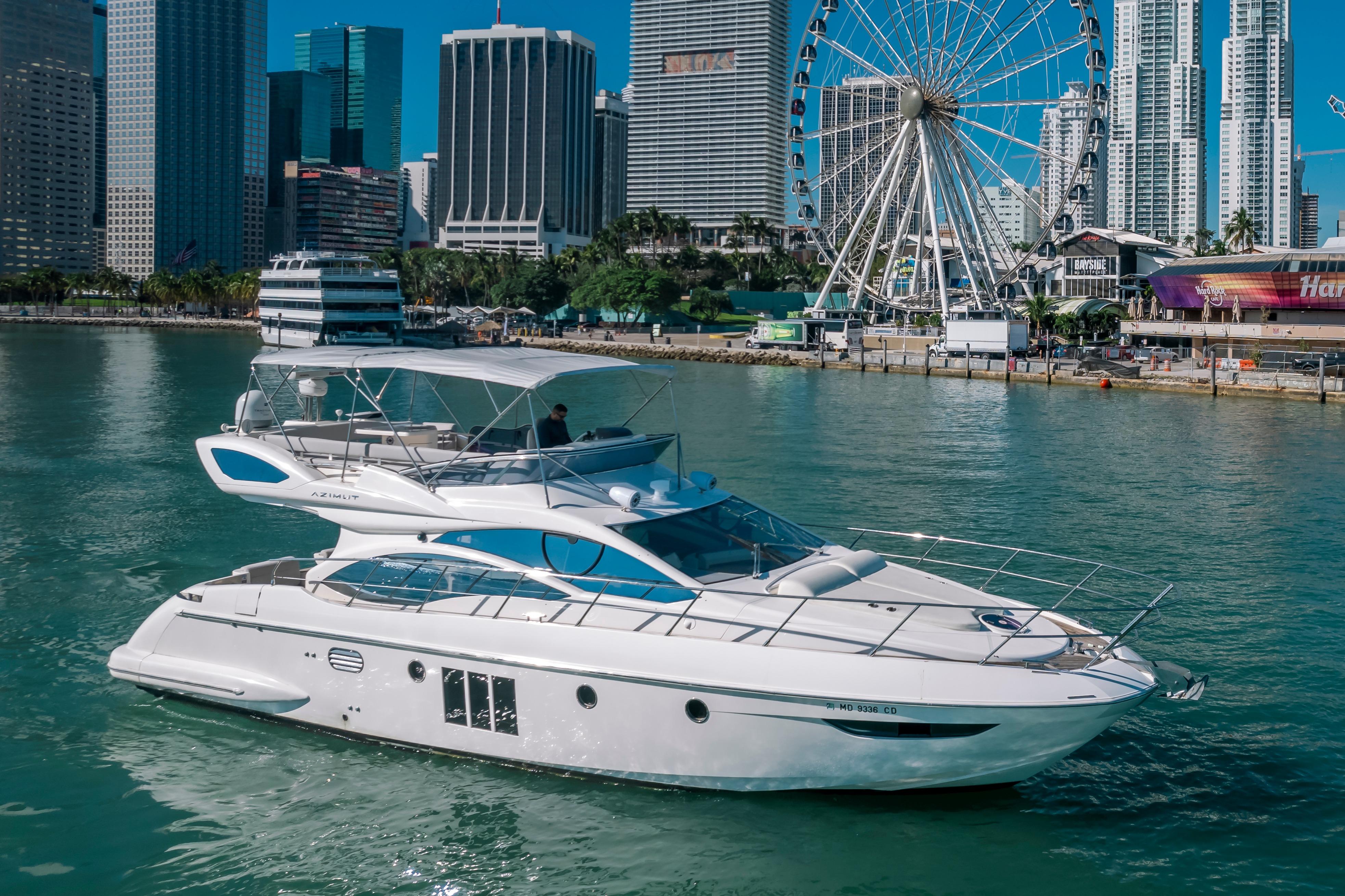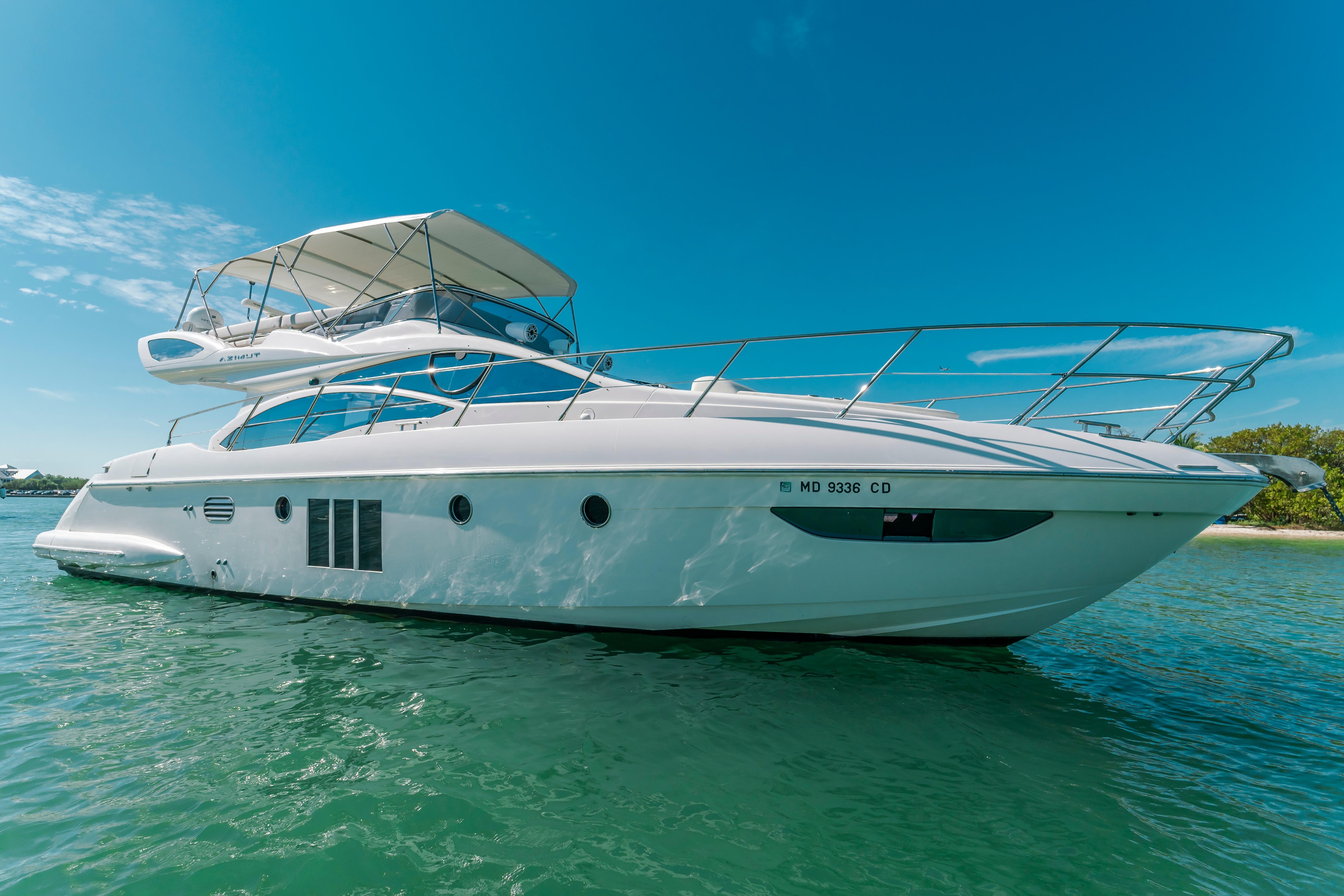 This sleek and sophisticated Azimut 48 Flybridge is sure to grab your attention at first glance. With its extended flybridge, she offers a generous aft seating area ideal for relaxing or simply enjoying beautiful water views. The main deck features a comfy four-person divan with a high gloss table. The stern includes space to house a jet-ski or tender and as one transitions to the bow you are met with an ample sunbathing area for two people. Spacious walkways with tall handrails ensure guests safe, quick and easy access from one area of the vessel to the other. Upon entering the salon, you will find a comfy U-shaped sofa that easily converts into a double bed with a dinette for dining. The lower deck includes a full-service galley, three twin-bed cabins and two heads with separate showers for added convenience. Three segment, rectangular panoramic windows provide natural light and porthole opens to allow refreshing sea breezes.