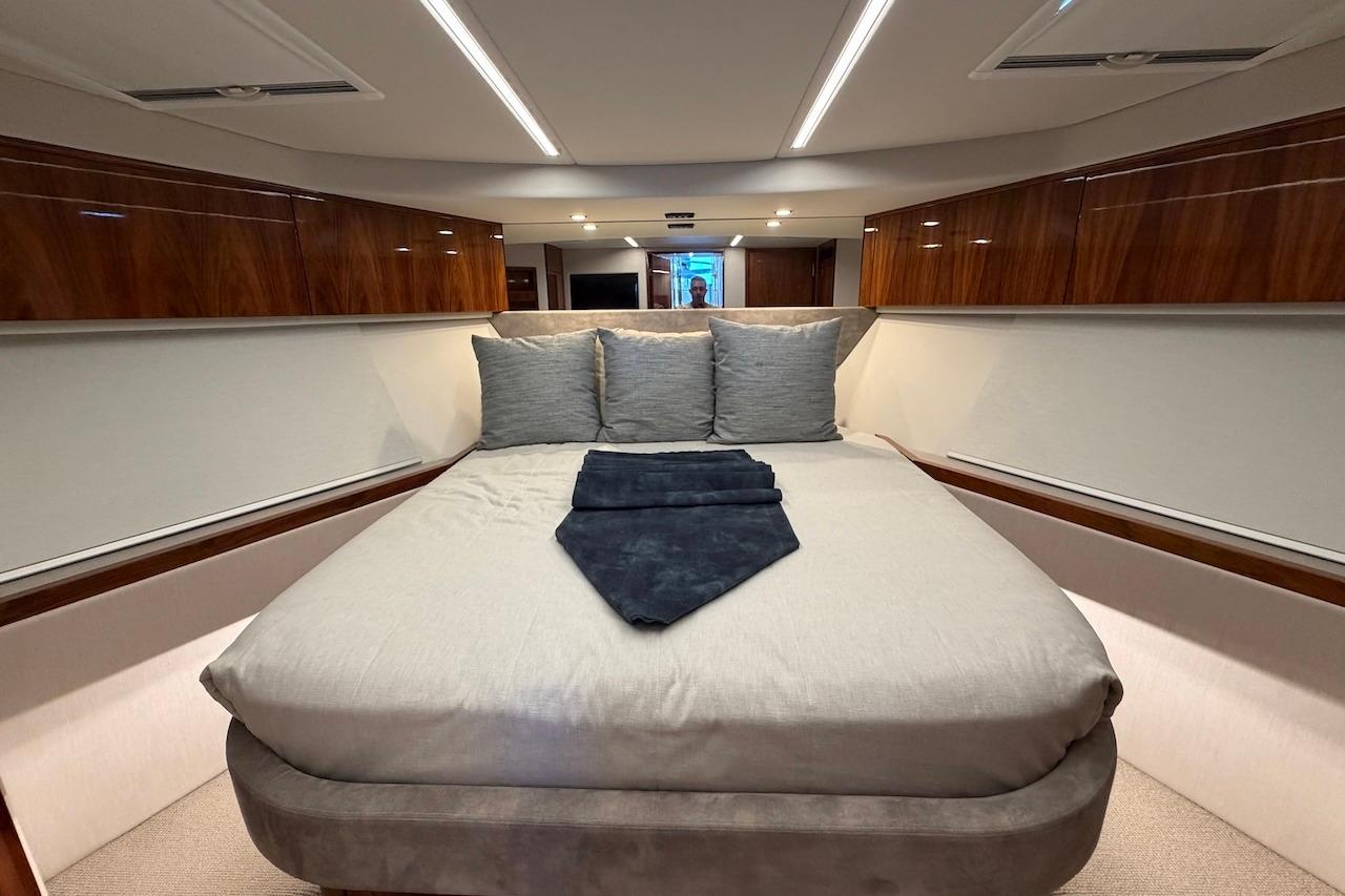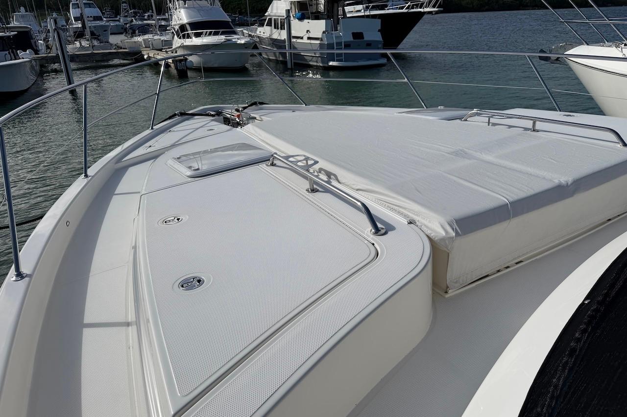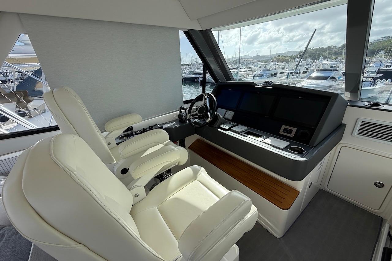 Designed by 4D Designs in collaboration with the Riviera design team and built in-house to our exacting standards on Australia’s Gold Coast, the 50 Sports Motor Yacht is a remarkable package. Offering all of the essentials you’d expect to find on a much larger yacht, including foredeck relaxation zone, walk around side decks, all weather al fresco mezzanine entertaining, spacious luxurious saloon with internal staircase to an enclosed air-conditioned flybridge and state-of-the-art helm. The generous three cabin/two-bathroom accommodation deck is bathed in natural light from tinted glass hull windows and features a magnificent full-beam master stateroom.