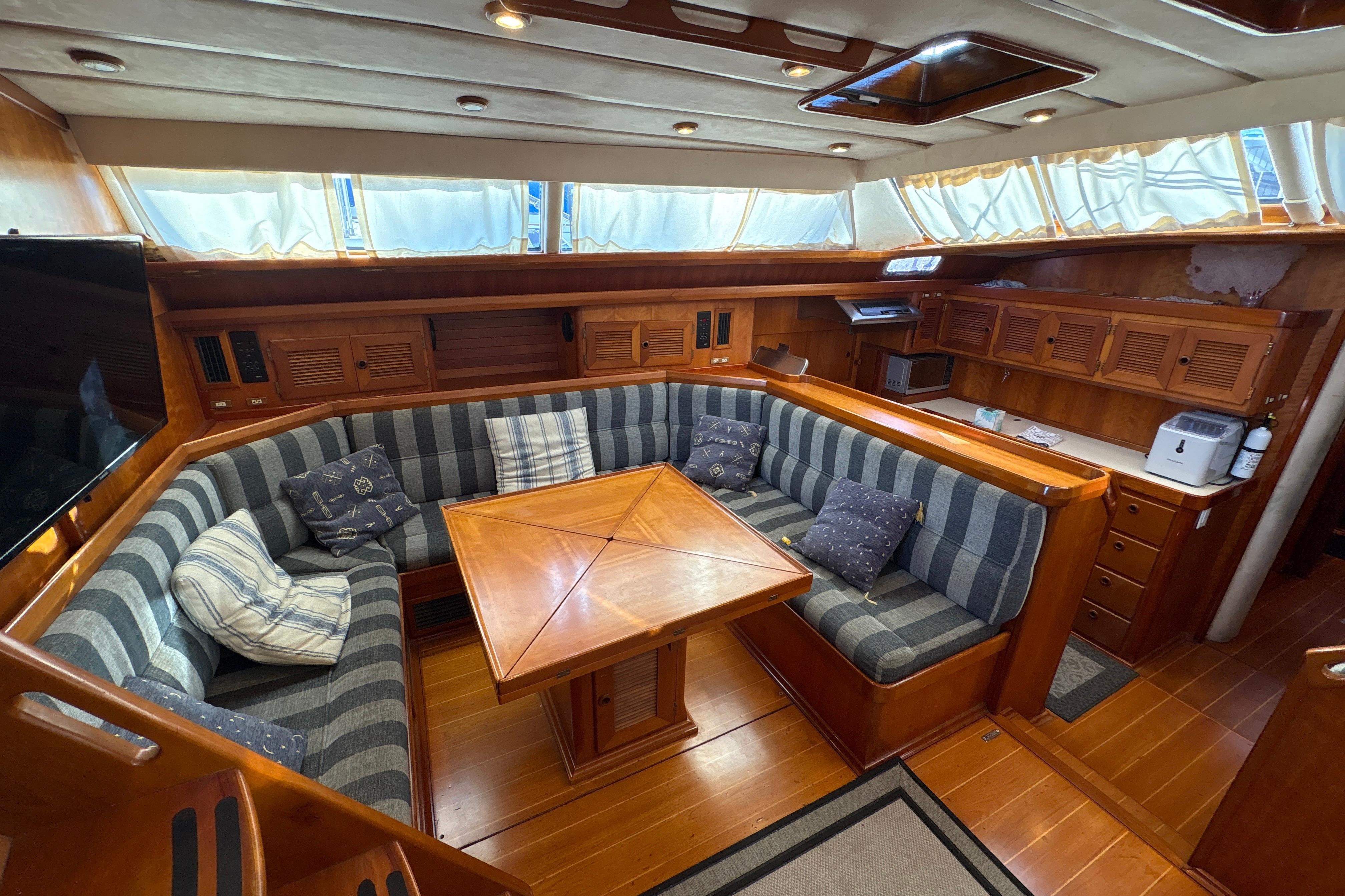 The interior prioritizes function, ventilation, and livability—ideal for full-time cruising or seasonal liveaboard use.