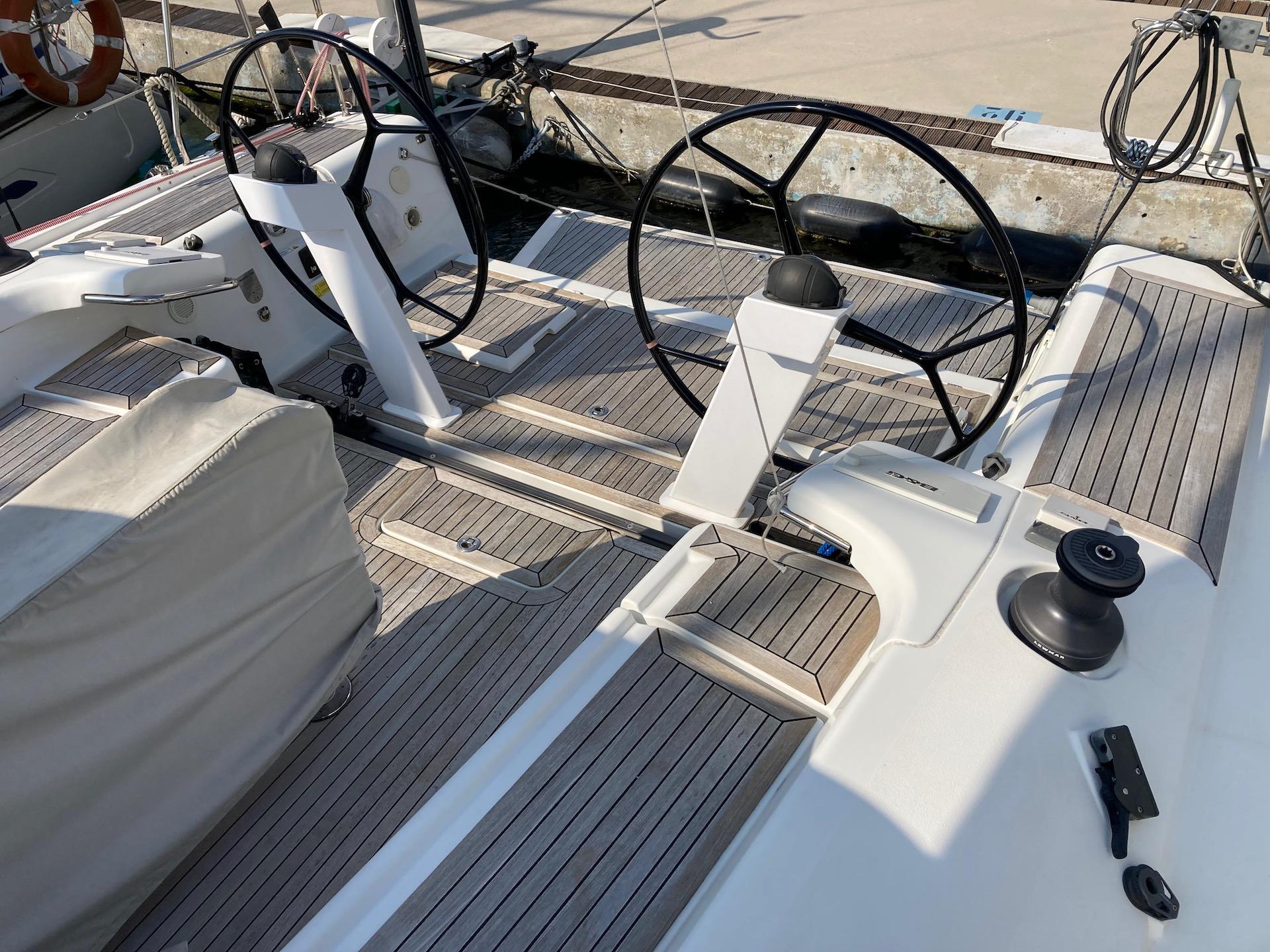ELETTRONICA B&G: Autopilota RC42, Plotter Zeus Touch 9 + 2° Plotter Zeus 3S (2022), Vhf V50 con ricevitoe AIS + 2° cornetta wireless pozzetto, Interfaccia Wi-Fi Simrad GoFree + Internet Wi-Fi (modem 3G), Radar 4G (2019), Radio Fusion MS-RA205 con interfaccia BT e connessioni iPod/iPhone/Android/USB + controllo remoto pozzetto; Fishfinder (2020); NAVTEC Nasa con display al carteggio; Barografo elettronico; Display colori timonerie (sinistra con trasduttore vento, destra con trasduttore profondità, velocità, temeratura), 2 consolle portastrumenti davanti le timonerie; Faro illuminazione ponte.