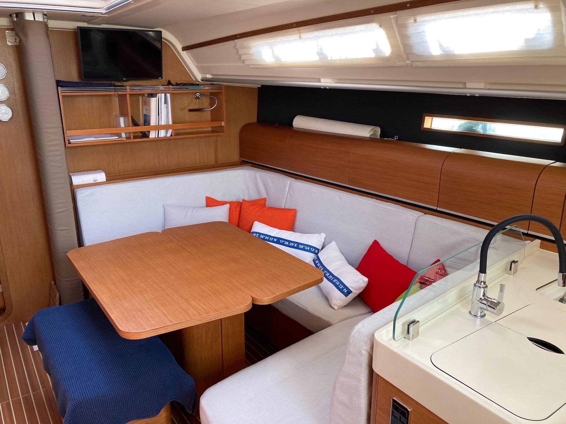 Riscaldamento doppio EBERSPÄCHER Airtronic con 6 bocchette, Aria condizionata Aircon Dometic 16k BTU(2024, prua e dinette), Dissalatore Shenker 50 lt/h (2024); Altoparlanti Hi-fi (2 salone +2 pozzetto), 2° Frigorifero 30lt a cassetto Waeco Dometic (2017).