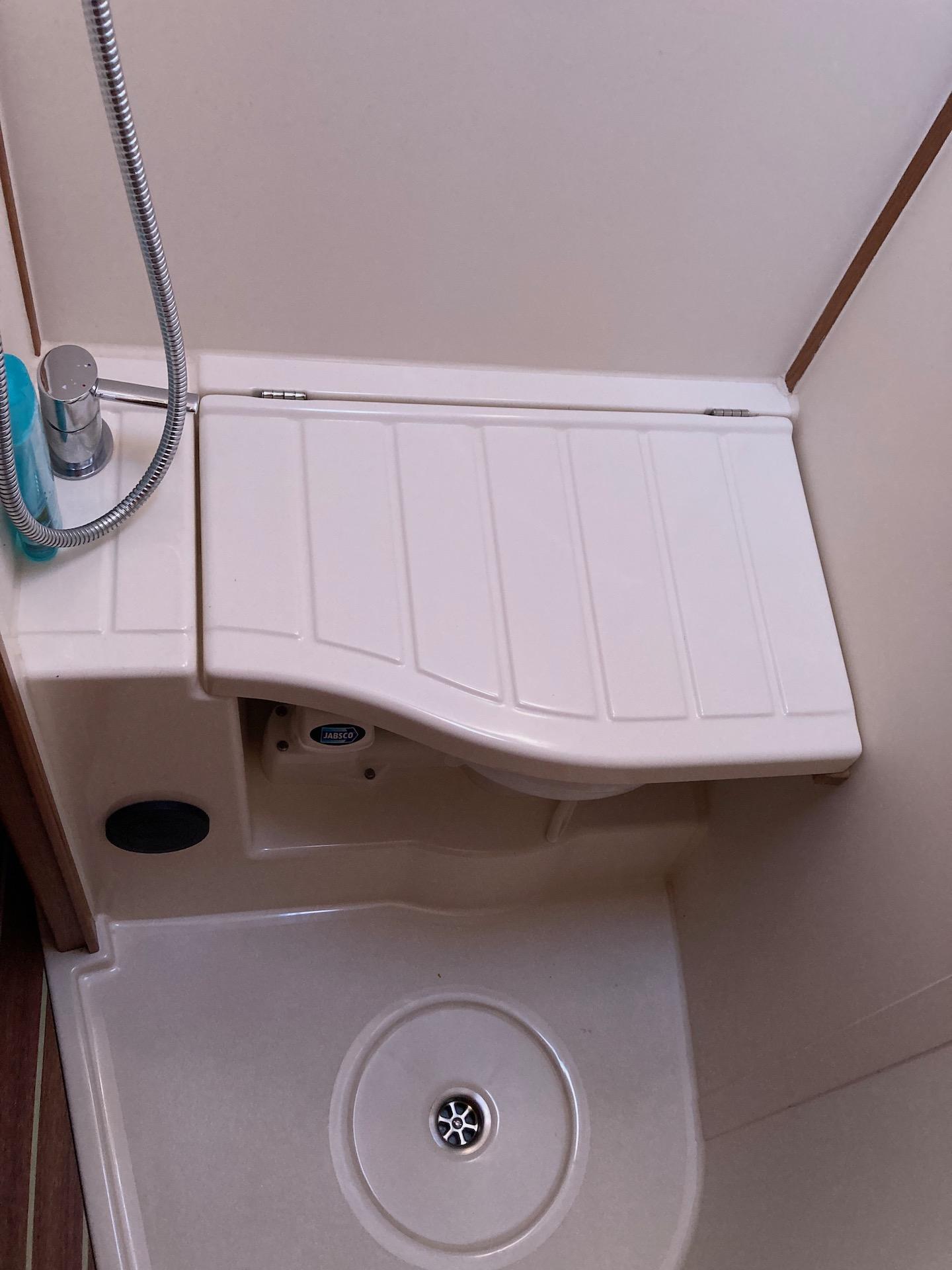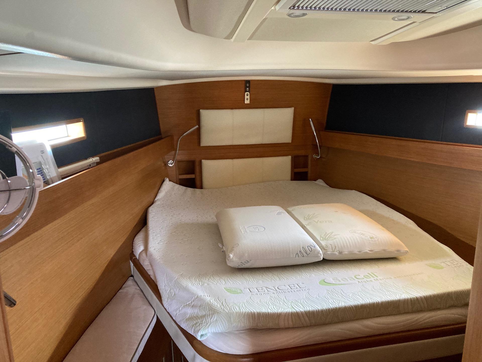 Cabina armatoriale matrimoniale a prua con armadi e bagno con doccia;