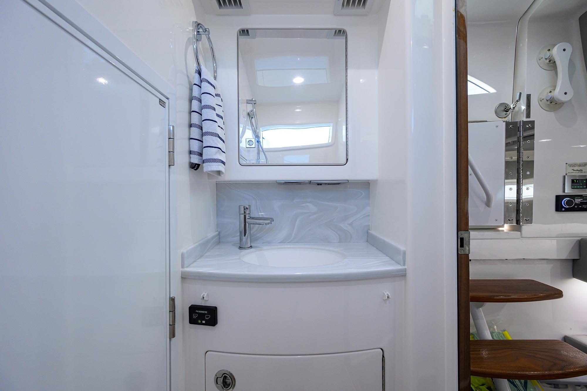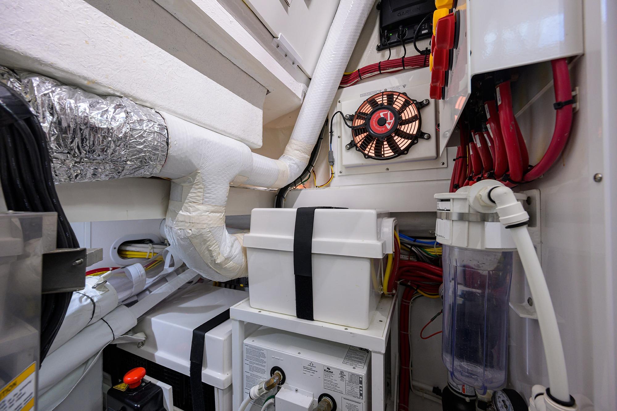 - Air conditioning, helm and seating enhancement: anchor chute with stainless steel plow anchor plus windlass, 400' of rd