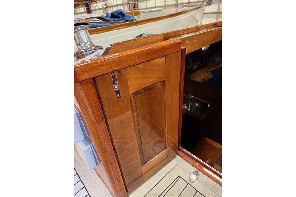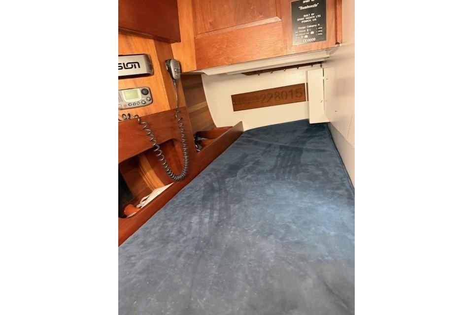 A starboard side navigator’s berth aft of the chart table provides