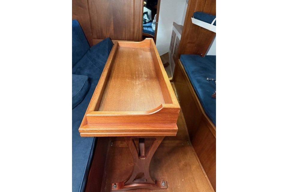 berths. The handcrafted wooden saloon table opens up to