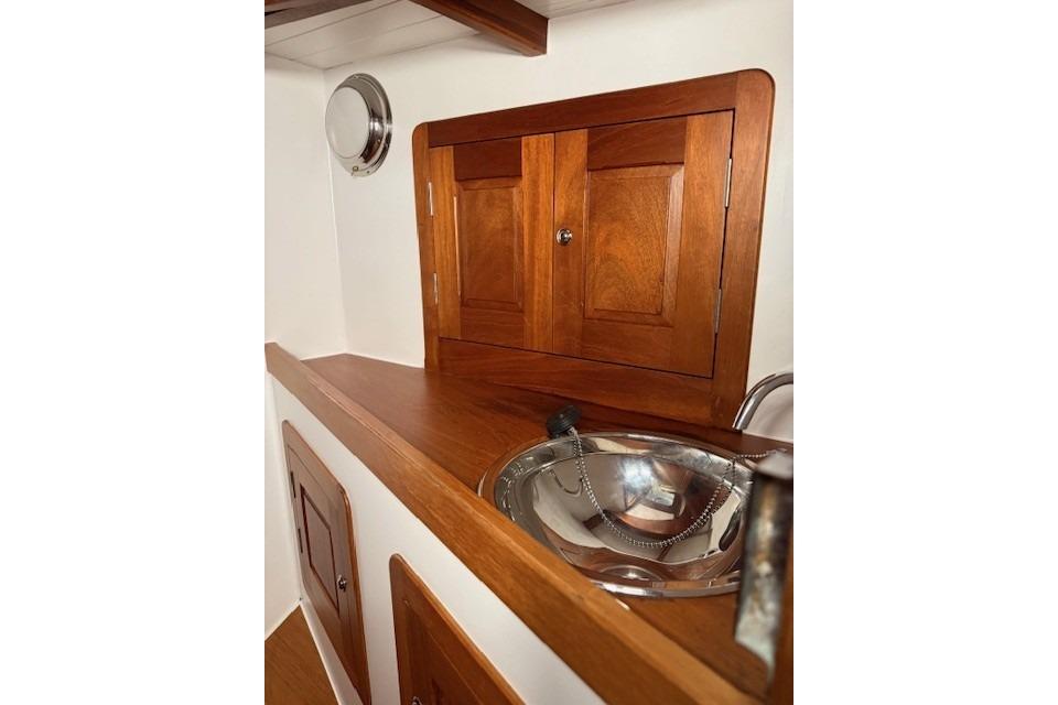 On the port side, a simple yet efficient galley provides ample
