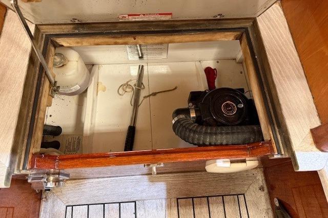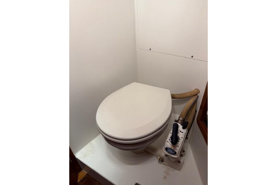 The forward, private, cabin has a V berth for two and an enclosed head.