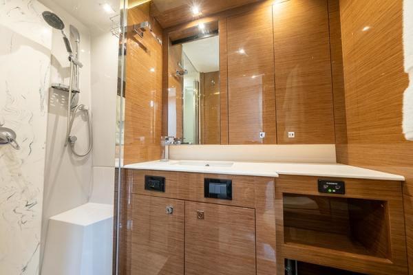 Powered by twin Volvo Penta IPS 600 pod drives (610 hours), this yacht offers effortless docking, outstanding reliability, and excellent fuel efficiency. A Kohler 15kW diesel generator and SeaKeeper 6 gyro stabilizer ensure comfort and confidence underway and at anchor.