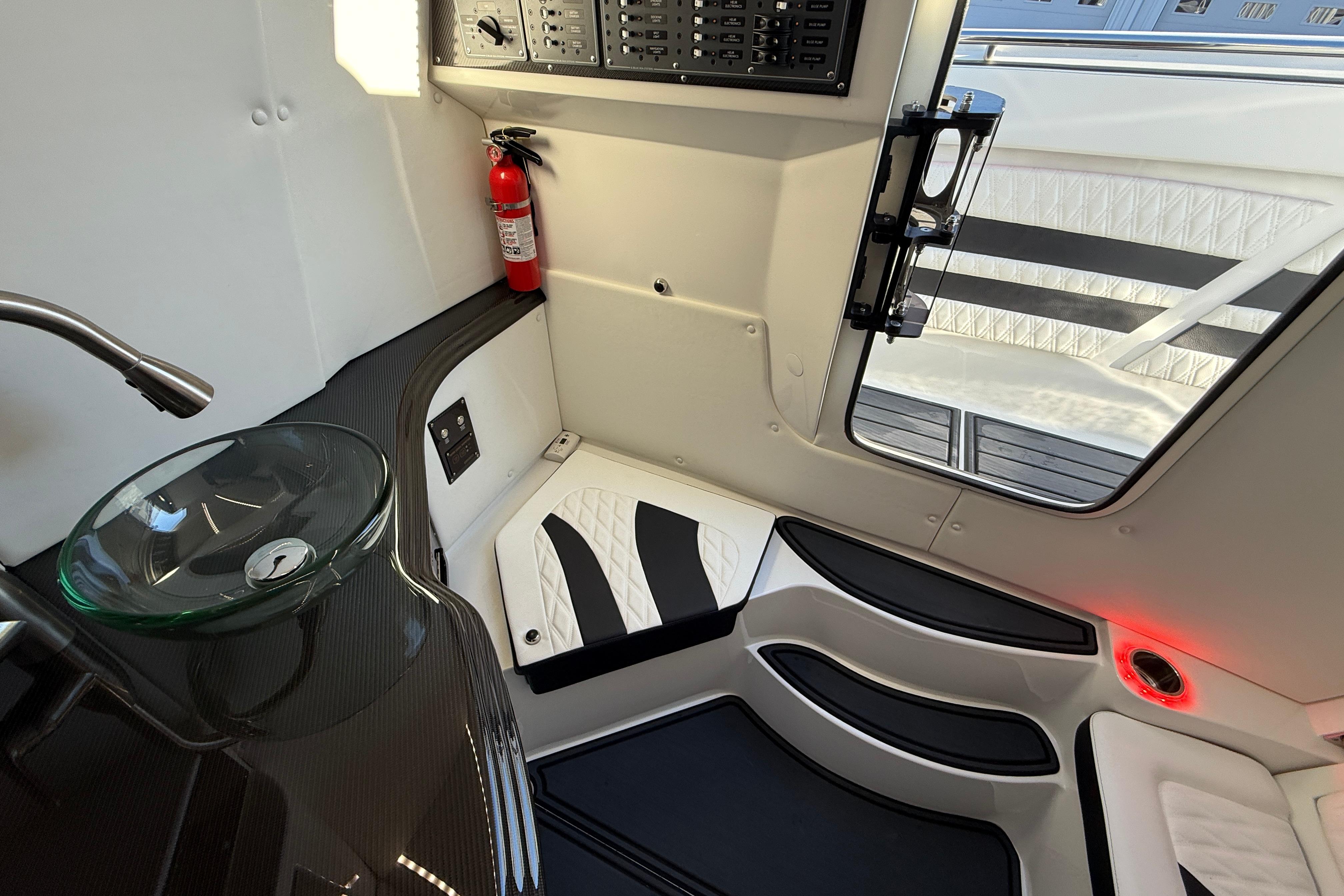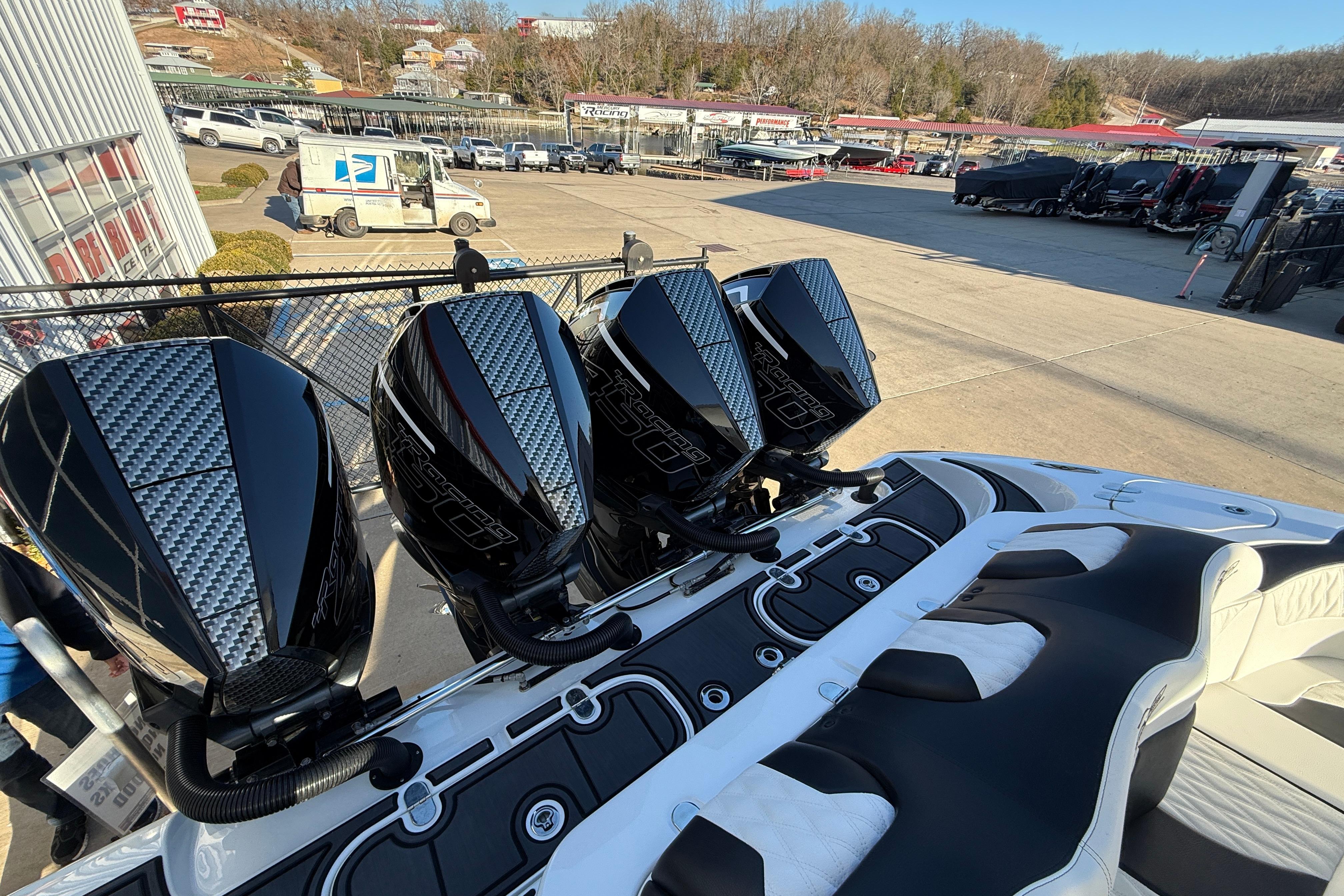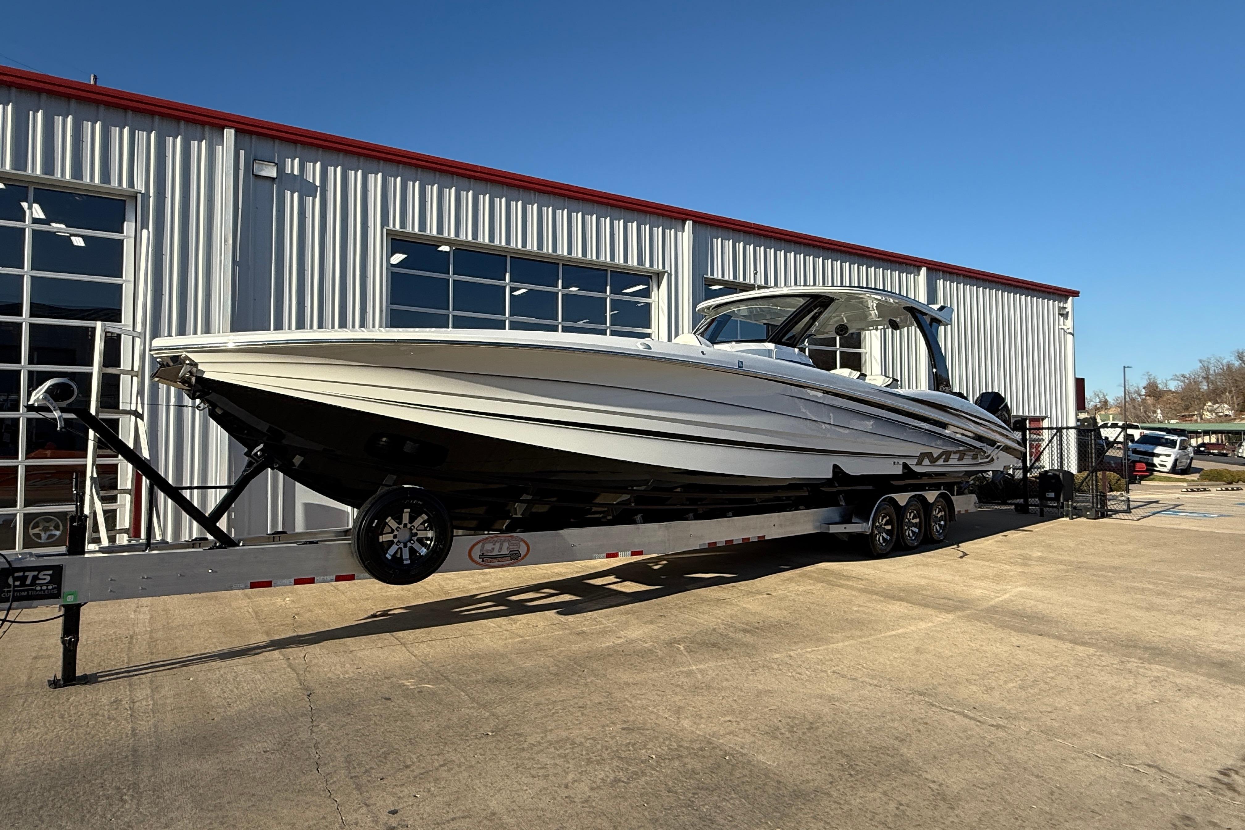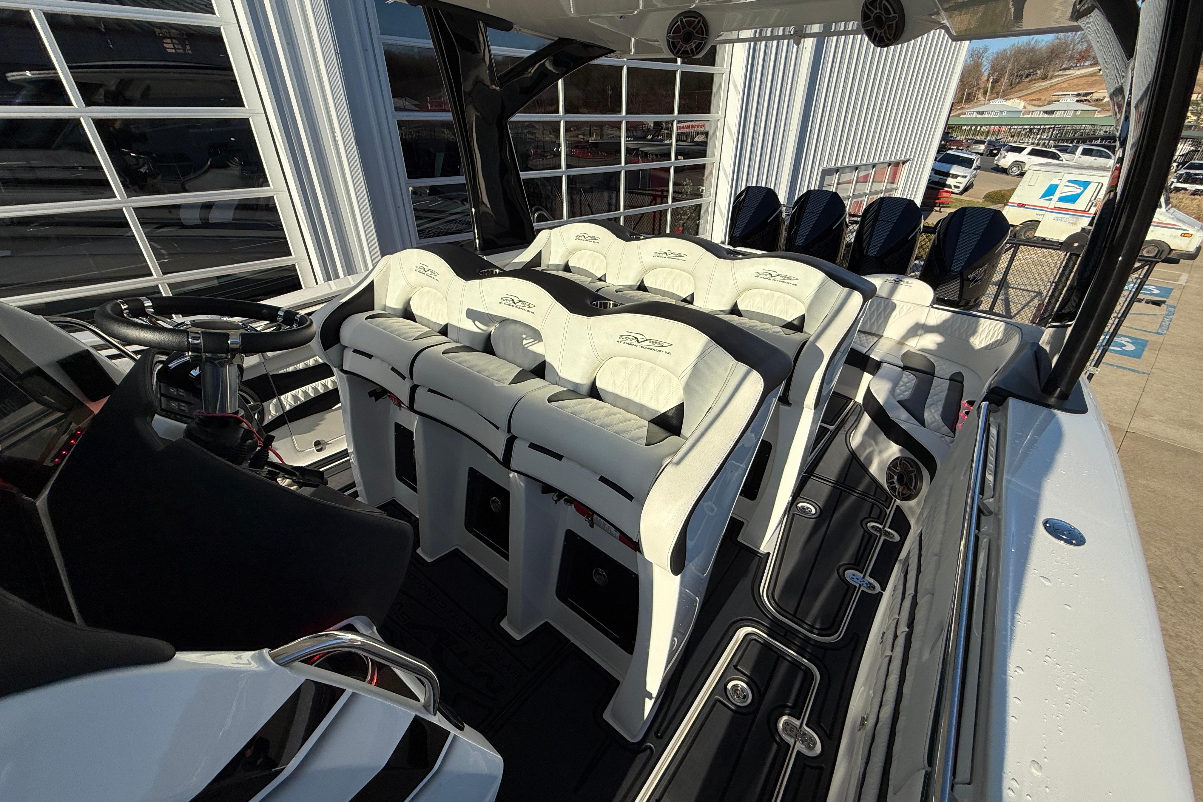 2021 MTI-V 42 with ONLY 80 hours on Quad Mercury Racing 450Rs , (3) Garmin GPS at the helm, 1 Upper Garmin GPS above the helm, 1 Garmin GPS ounted in the bow, Mercury Vessel veiw, Fusion/ JL Audio Stereo, Aluminum Cleats, Chill plate in the Bar with Clear doors and Bottle Holders, Under Water Lighting, Cabin Air Conditioning w/ Dash Blowers, Cabin Sink, Pump out Head w/ Macerator, Bow Thruster and Stern Thruster, Anchor Windlass, Seadek Flooring, Cabin Sink, CTS Aluminum Trailer Available!