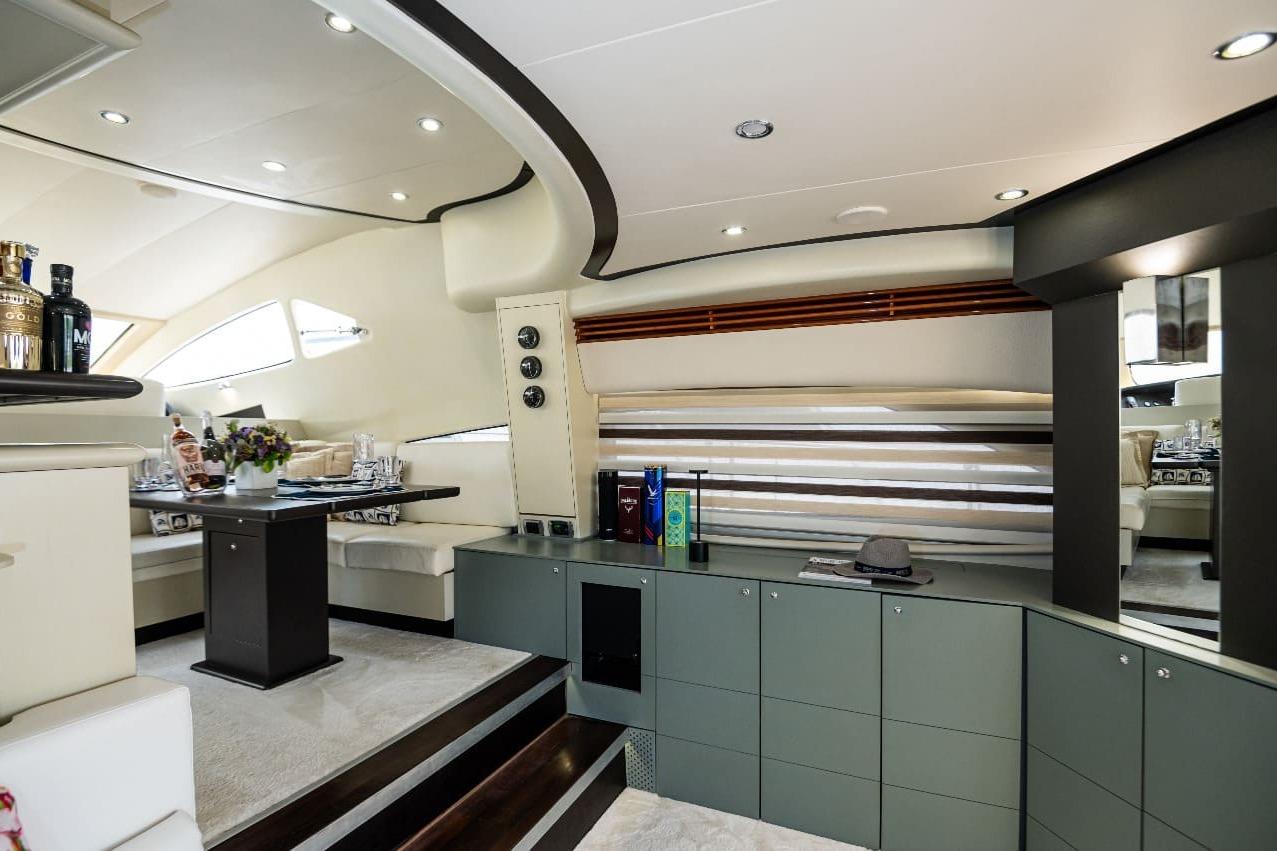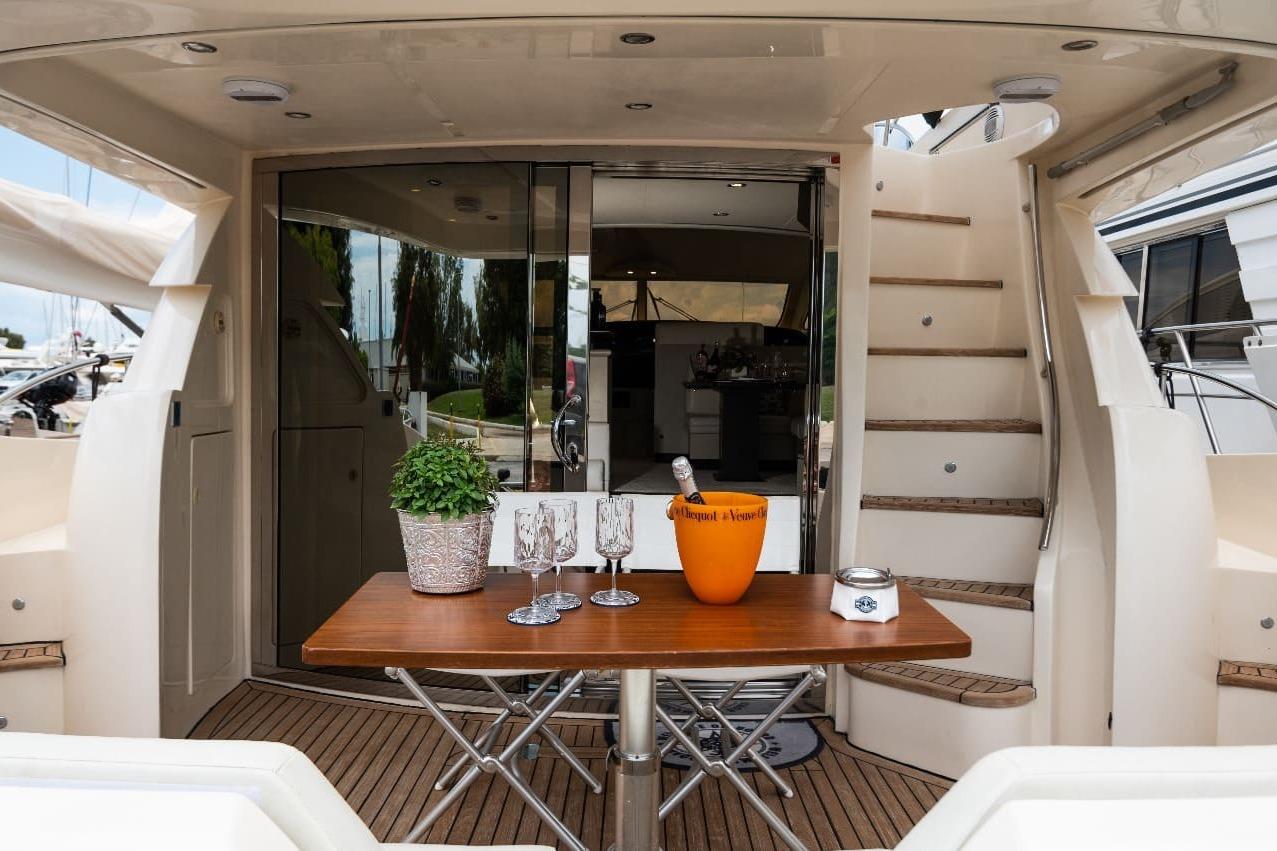 On deck, generous lounging and dining areas, a flybridge with wet bar, and a wide swim platform make her perfect for entertaining and long-range cruising.