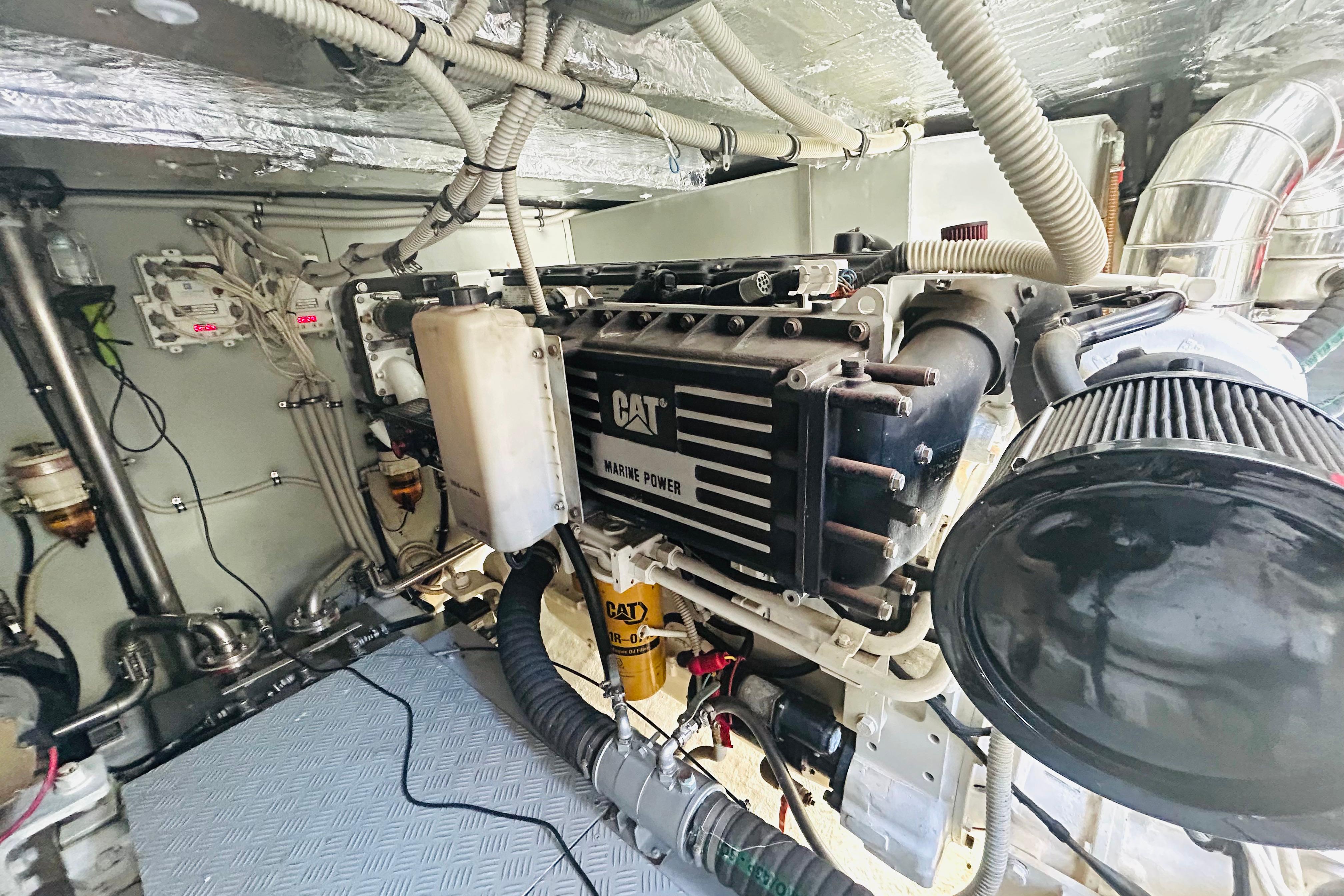 Powered by twin Caterpillar C18 engines (812 hp each), she delivers a cruising speed of 22 knots and a top speed of 27 knots.