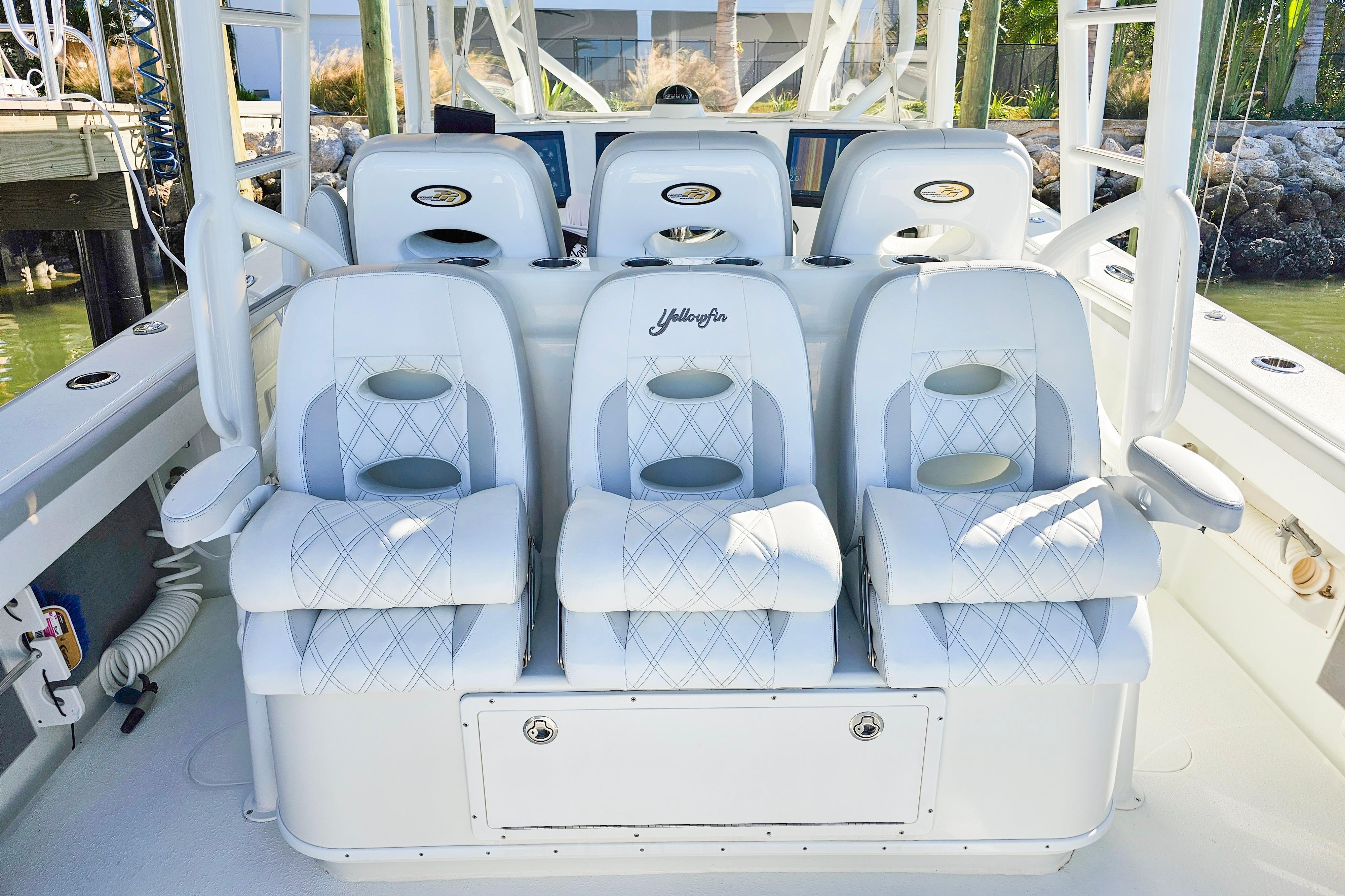 Introducing the stunning 2015 Yellowfin 42 Offshore, a remarkable center console boat designed for both performance and comfort. Crafted with a durable composite hull featuring a modified vee shape, this vessel ensures a smooth and stable ride on the water. Equipped with 3 powerful 425 XTO Yamaha outboard engines, it promises exhilarating speed and agility, making it perfect for both fishing adventures and leisurely cruises.