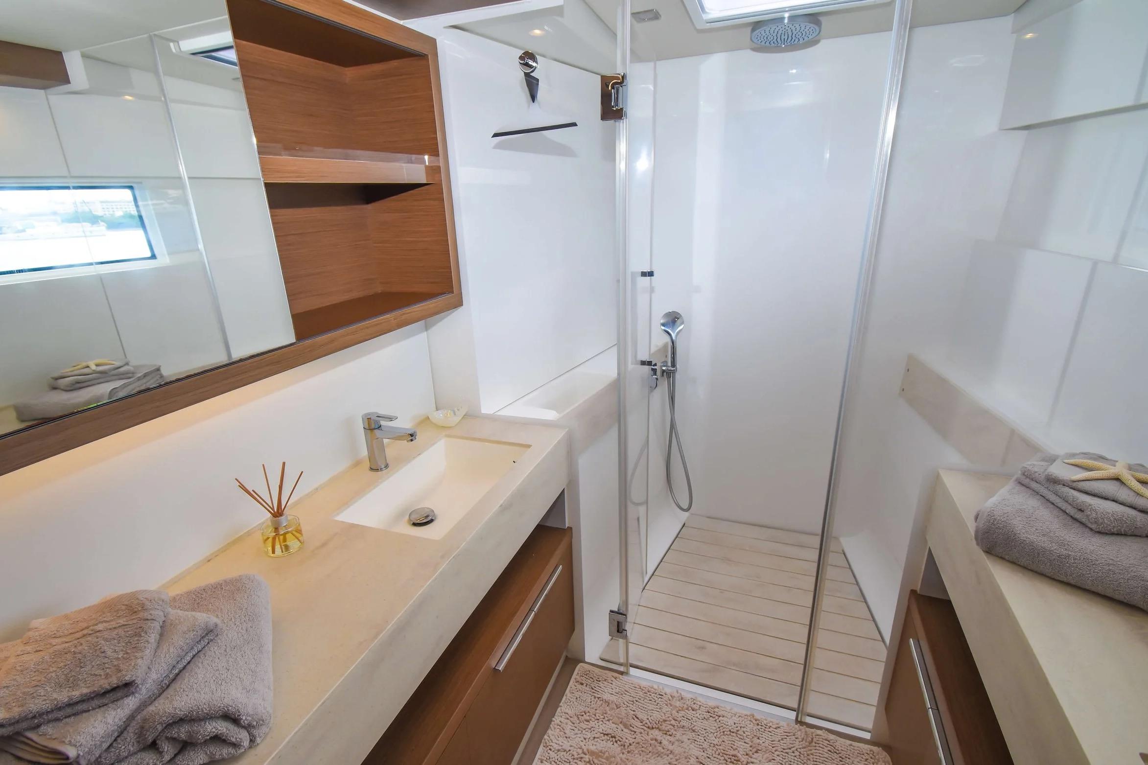 OWNER & GUEST ACCOMMODATIONSAs an Owner’s Version, this Lagoon 50 prioritizes comfort, privacy, and practicality. The owner’s accommodations are generous and thoughtfully arranged, offering excellent storage, natural light, and ventilation.
