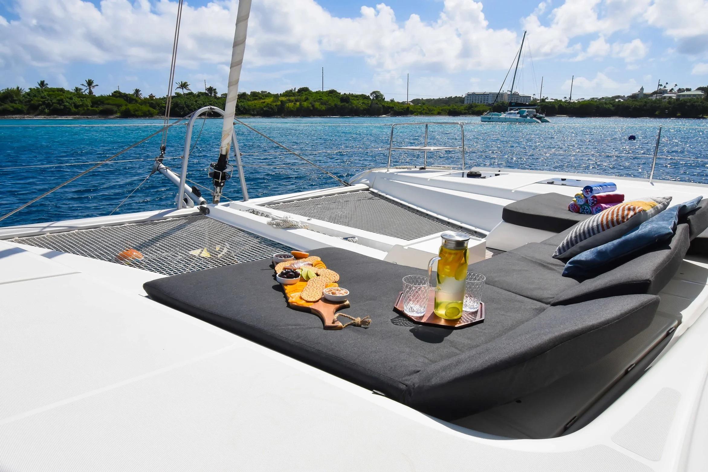 The aft cockpit is spacious and protected, ideal for alfresco dining and socializing, while maintaining direct access to the saloon. Forward, the coachroof lounge and trampolines provide an inviting area for relaxation at anchor or underway.