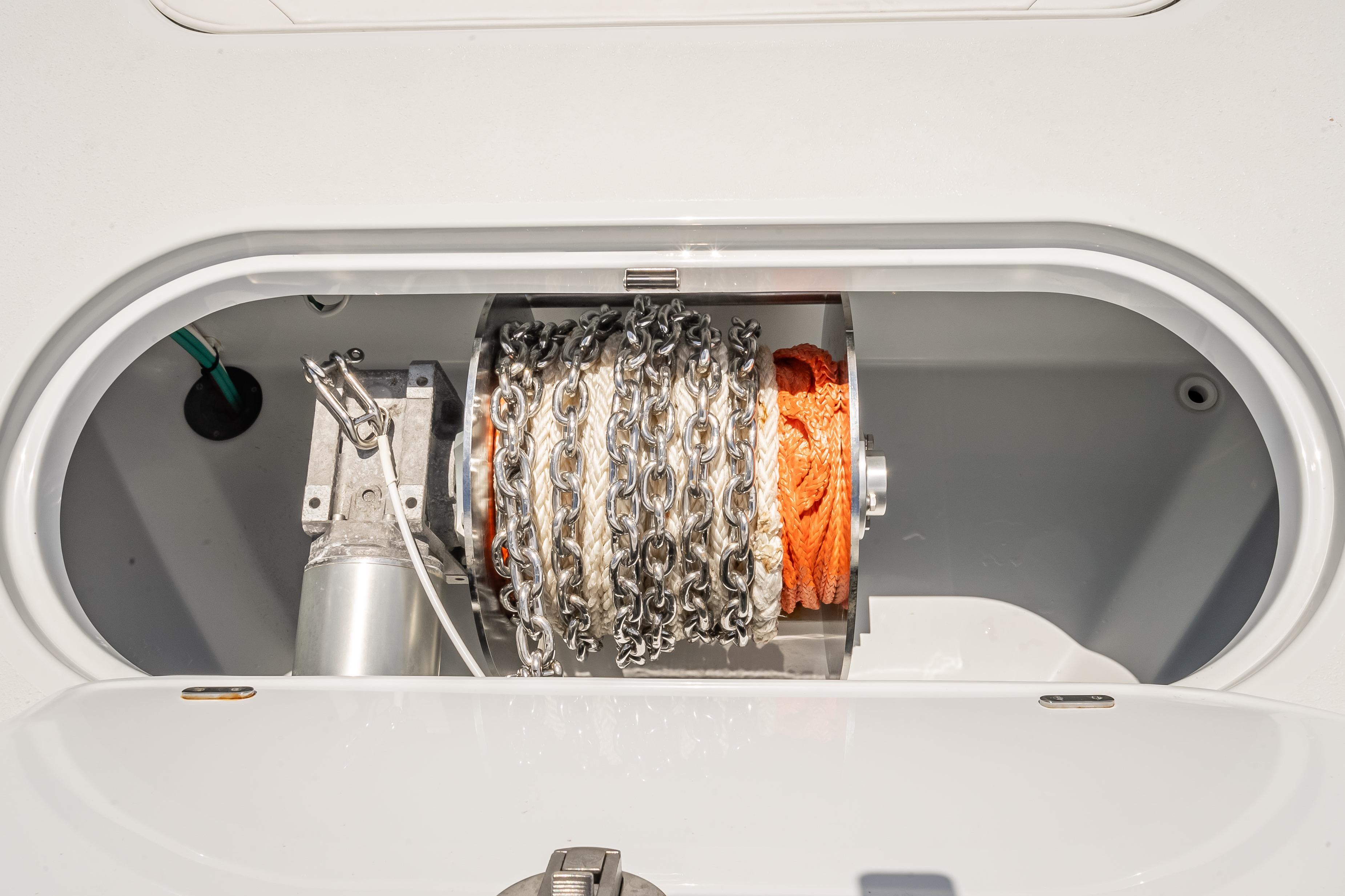 SS Plow anchor, 475' rope, 20' chain for windlass Forward line anchor access door
