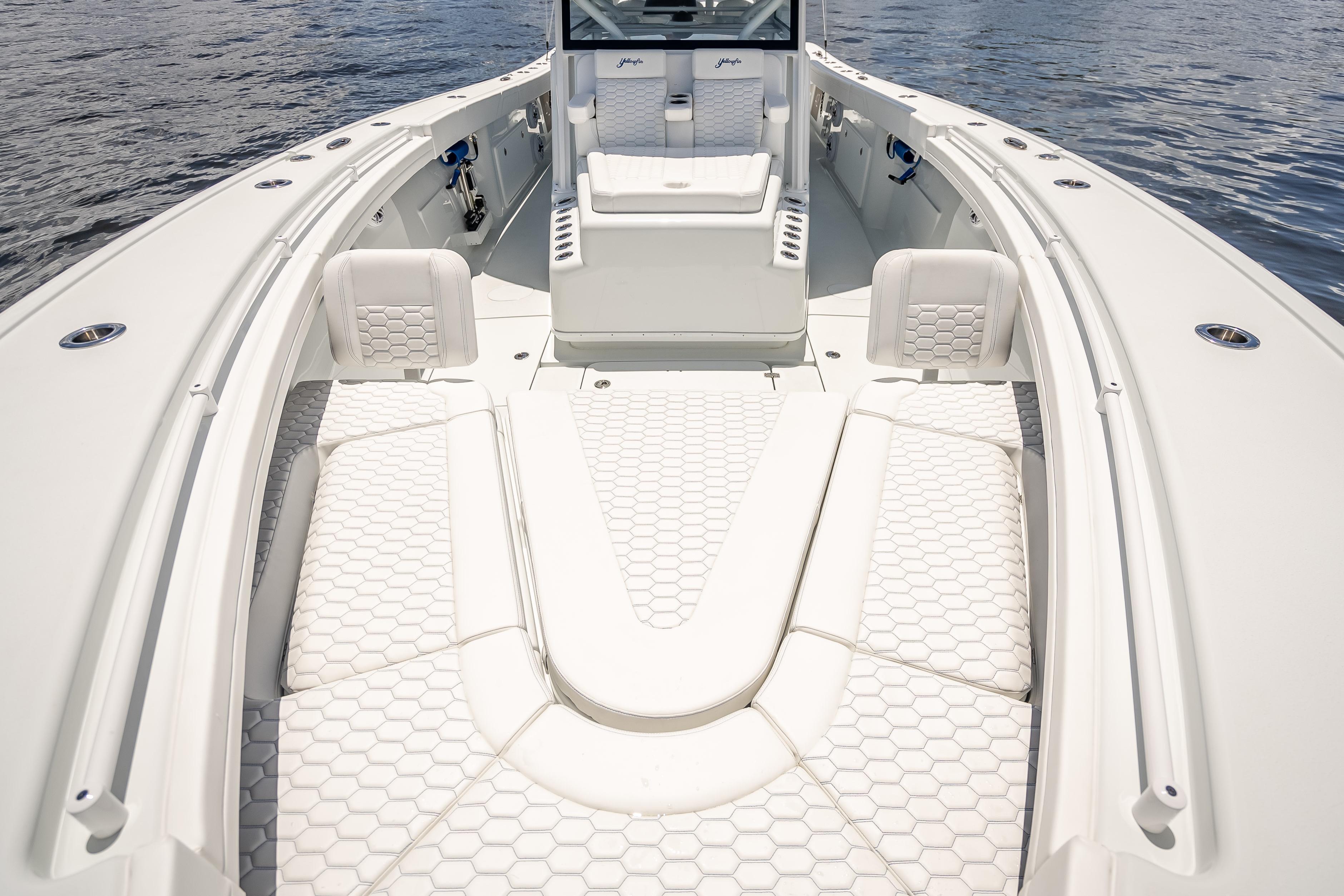 (6) embroidered Yellowfin logos Yellowfin helm seating triple headrest