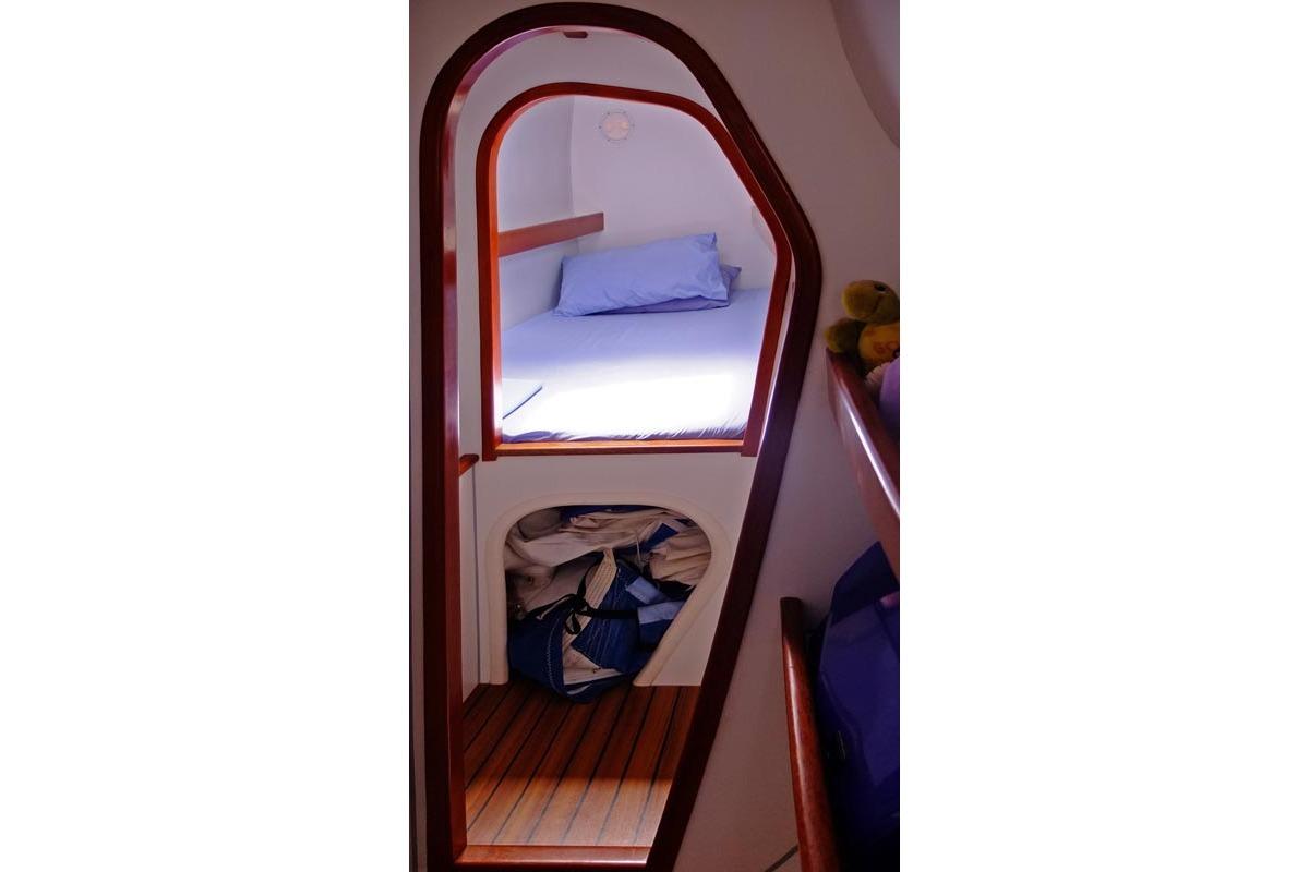 Changes inside include new freezer location ,mahogany library with drawer for charts ( yes I still use them) drawers in each hull forward ,medicine cabinet ,covers for electric winches , and dropdown cutlery drawers in galley (I made them) I also fit the dyneema front net ,re bedded the acrylic on all the hatches ,changed the self tacking system to something the works .