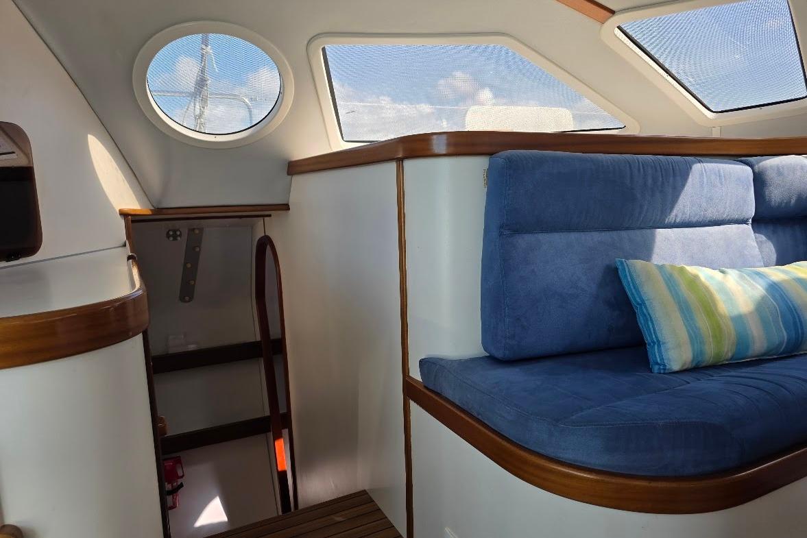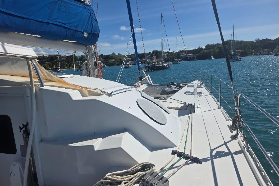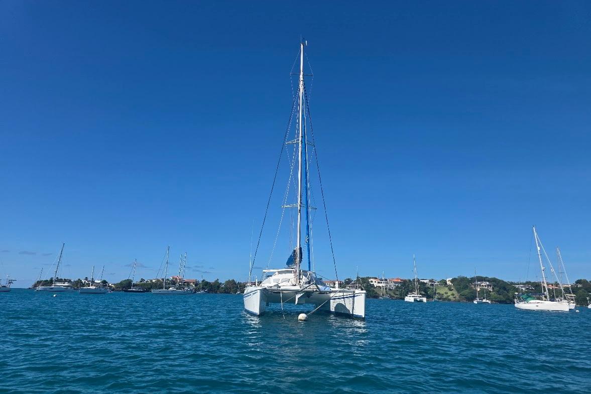 After we purchased the yacht I was looking at a 2004 copy of Multihull international and saw our boat on the cover, the article inside stated that she had one that years ARC. I had seen her previous owner sailing it near Bequia years before and had admired her then. My wife and sailed her up the Caribbean from as far as Anguilla with stops all along the way. She is a comfortable boat for cruising with a deep safe cockpit is easily handled by two and has enough creature comforts for cruising .We also won our division at the inaugural Caribbean Multihull Challenge in St Marten and twice won our division in Grenada Sailing week .