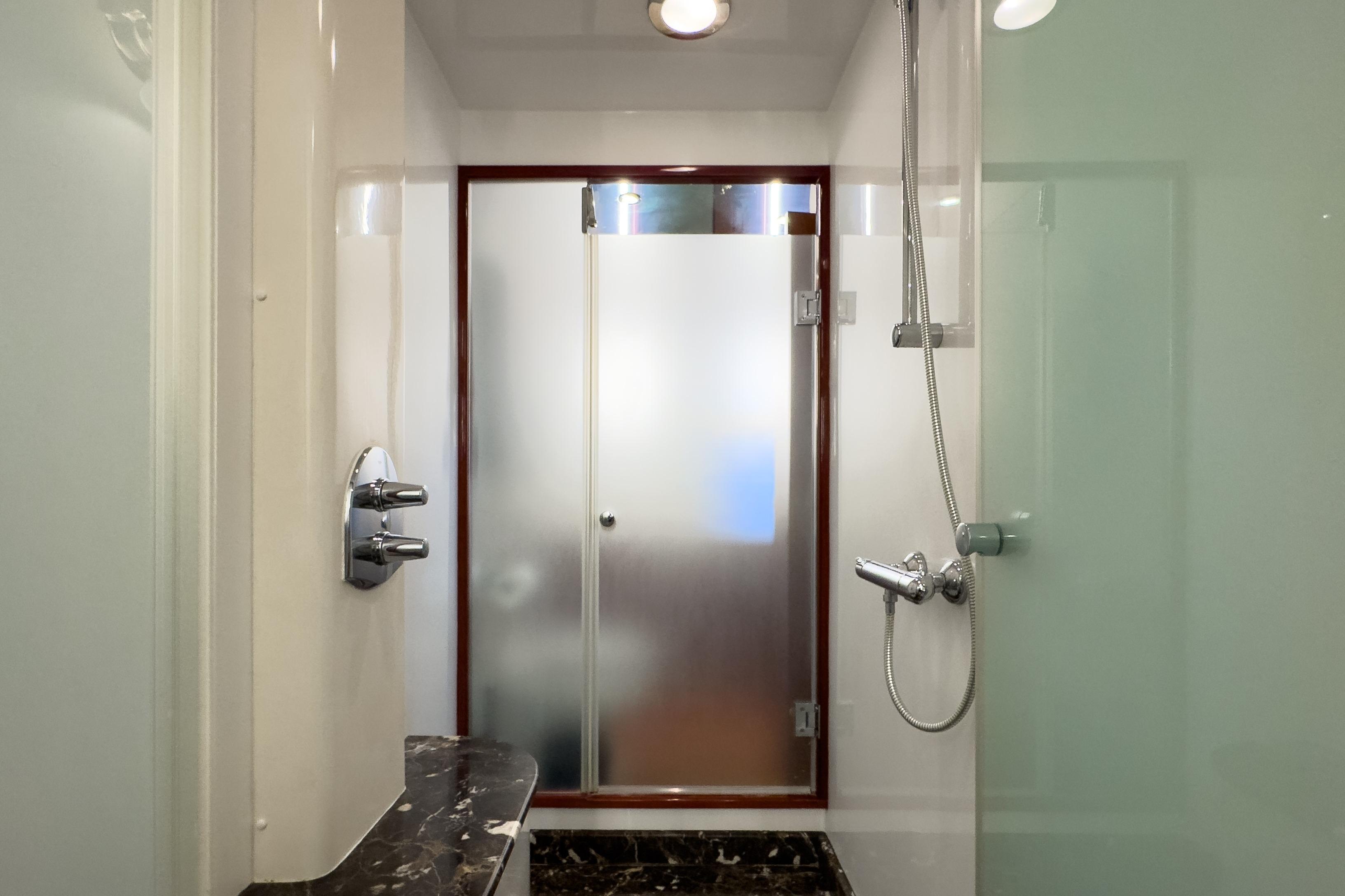The crew quarters are thoughtfully designed, featuring a queen-size berth, suitable for a single captain or a couple, ensuring comfort for extended journeys.