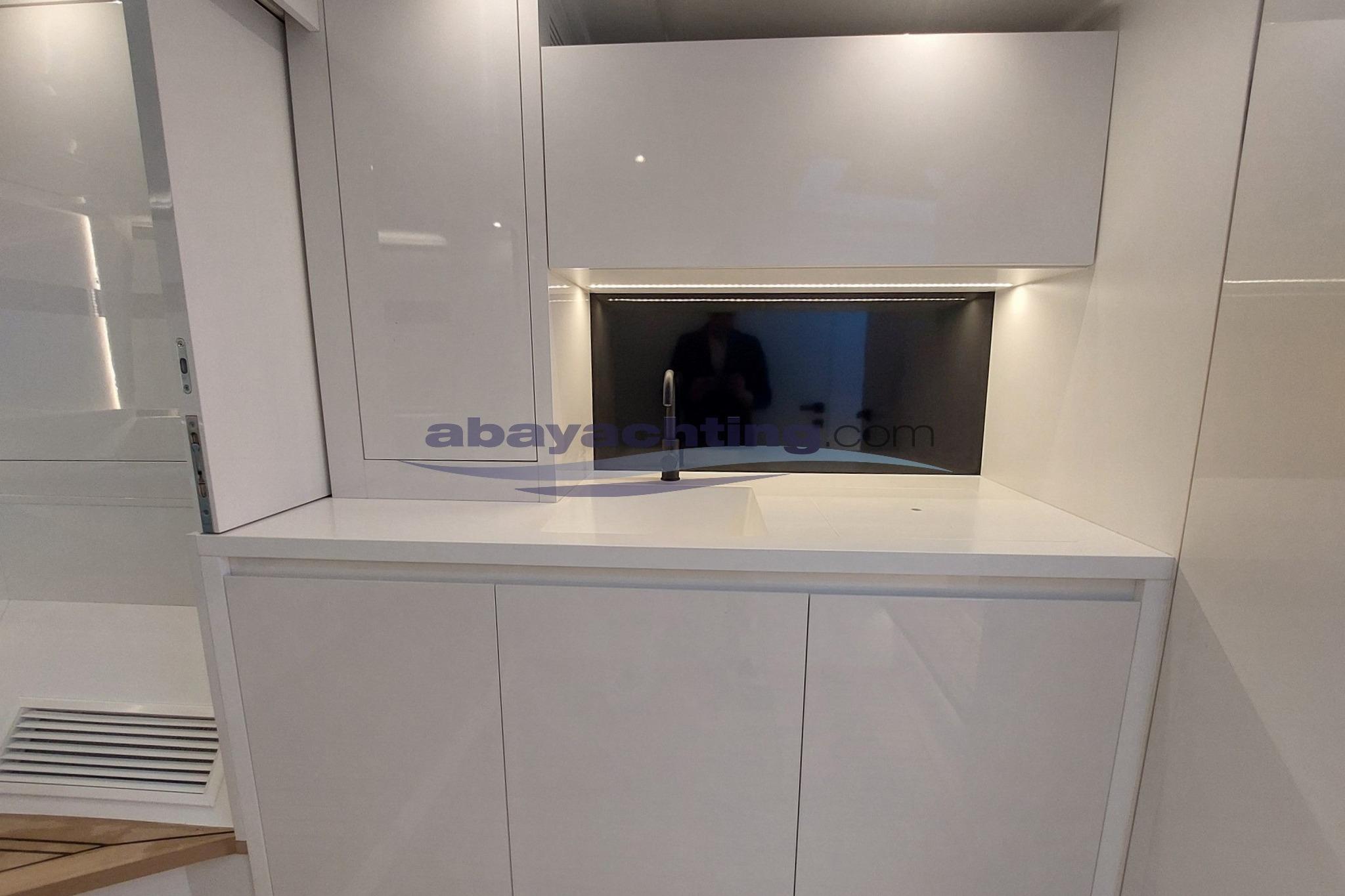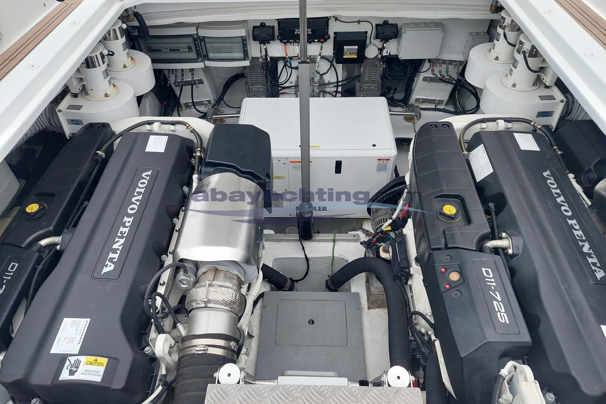 Van Dutch 48 con motorizzazione maggiorata Volvo Penta D11 da 725hp in linea d'asse con joystick di manovra. Full optional: generatore da 8.5 kw, elica di poppa + elica di prua Side Power, piattaforma di poppa idraulica con sistema sali-scendi, climatizzatore reversibile, bimini pieghevole e richiudibile elettricamente, doppio frigorifero esterno + ice-maker, coperta in teak sintetico Flexiteek, elettronica Garmin con 2 schermi touch da 16".