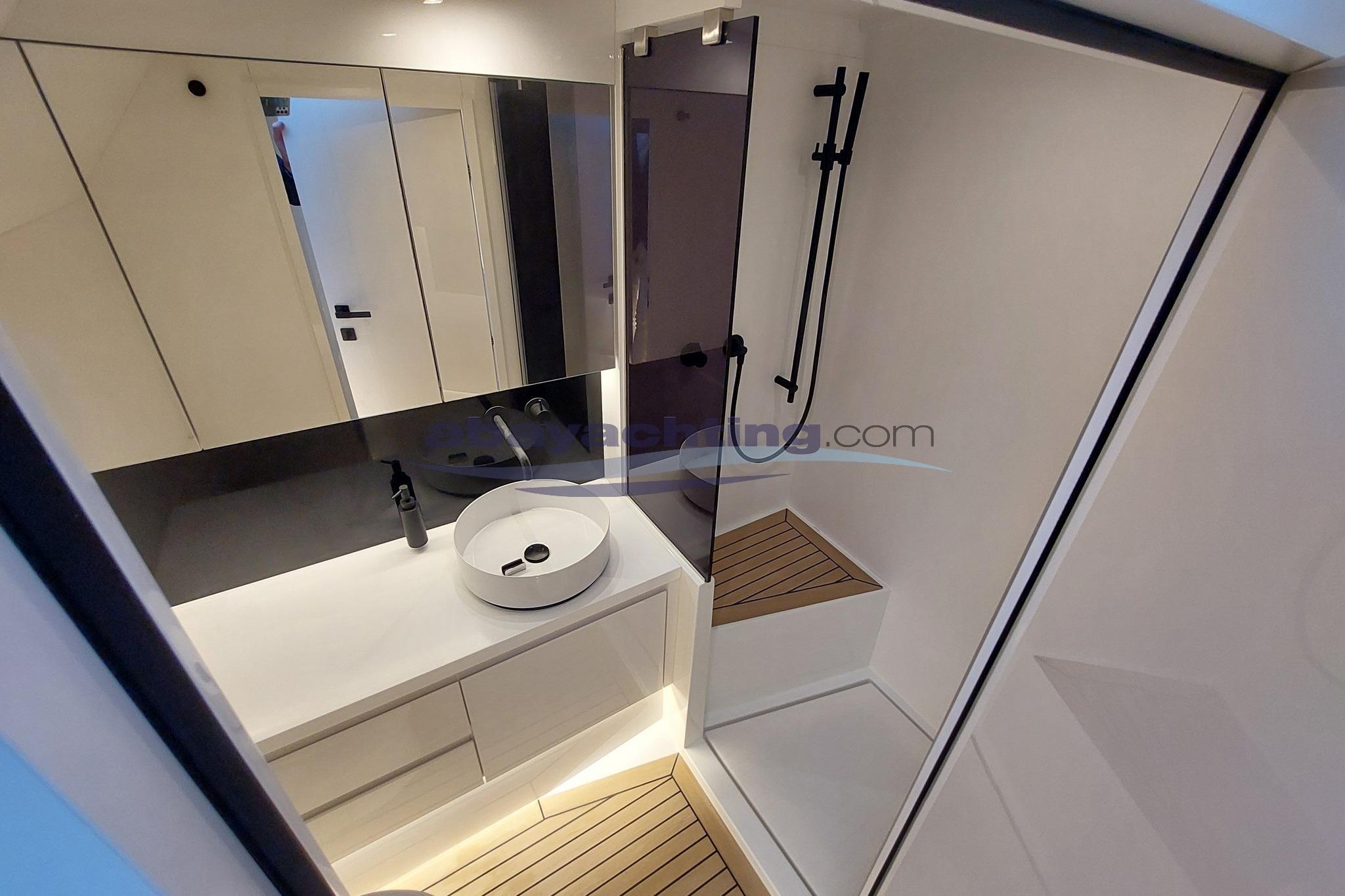 Versione con layout 2 cabine (1 matrimoniale e 1 letti in piano) e 1 bagno.