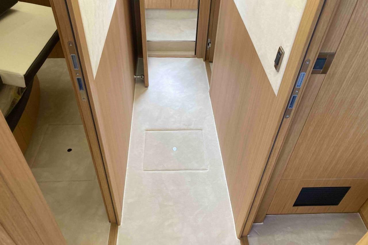 REFRIGERATOR WITH FREEZER IN GALLEYWINE COOLERLARGE REFRIGERATOR IN AFT SALOON (270L)LED CEILING LIGHTS ON WHOLE BOATLEATHER UPHOLSTERY IN SALOONCARPETS ON WOODEN FLOOR IN SALOONWOODEN FLOOR IN SALOONWOODEN FLOOR IN GALEYDECORATIVE BED COVERS AND PILLOWSDISH WASHER IN GALLEYEXCLUSIVE BATHROOM MOSAIC (EACH)ALUMINIUM SHUTTERS IN CABINSBLACK MANUAL PLISSE IN SALOONAMBIENT LED LIGHTNING IN MASTER
