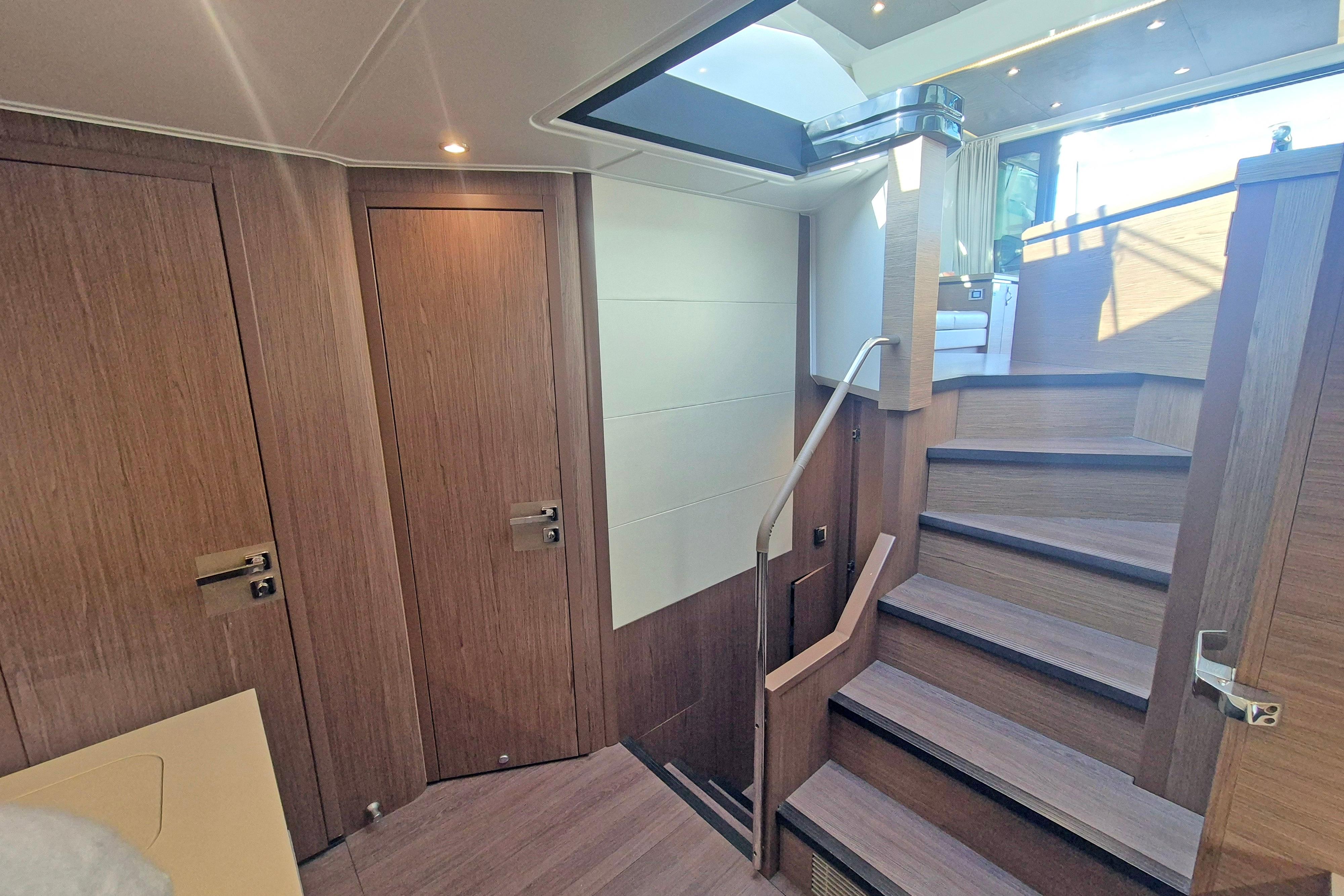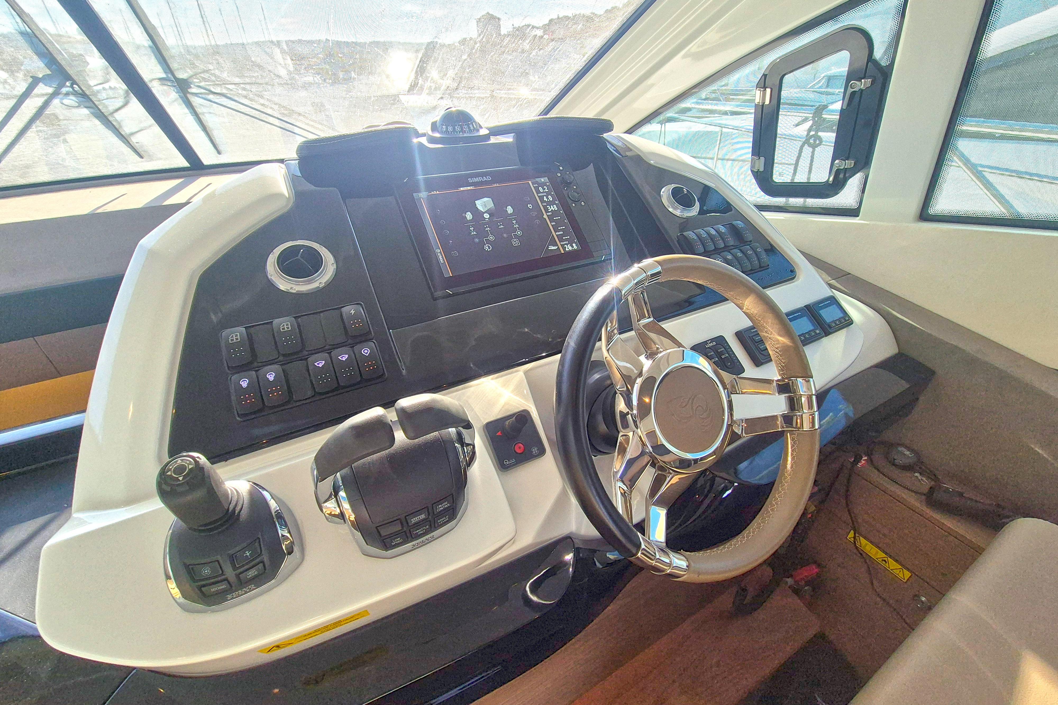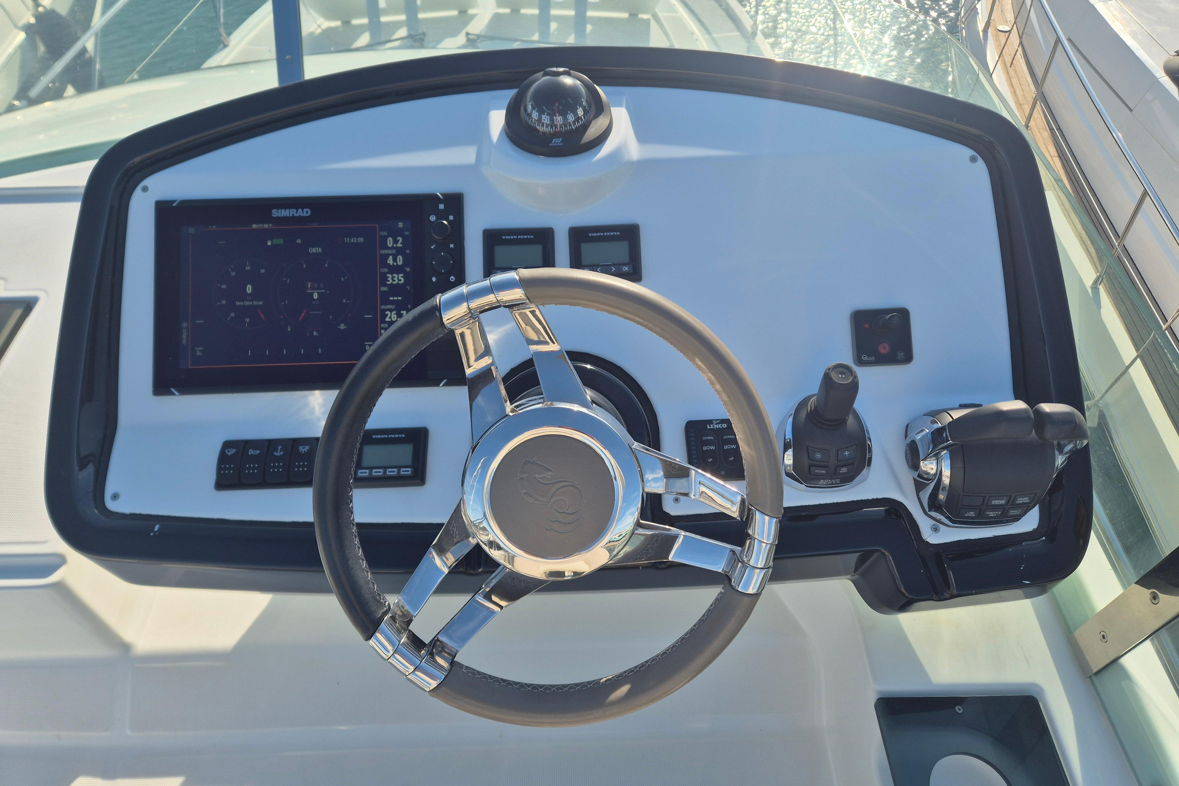 She is equipped with a comprehensive navigation and control package, including Simrad NSS12 EVO3 dual chartplotters, radar, AIS, and autopilot. The integrated Ship Control system allows centralized monitoring and control of key onboard systems directly from the helm screens or via a connected mobile device or tablet, adding a modern and practical layer of onboard management.