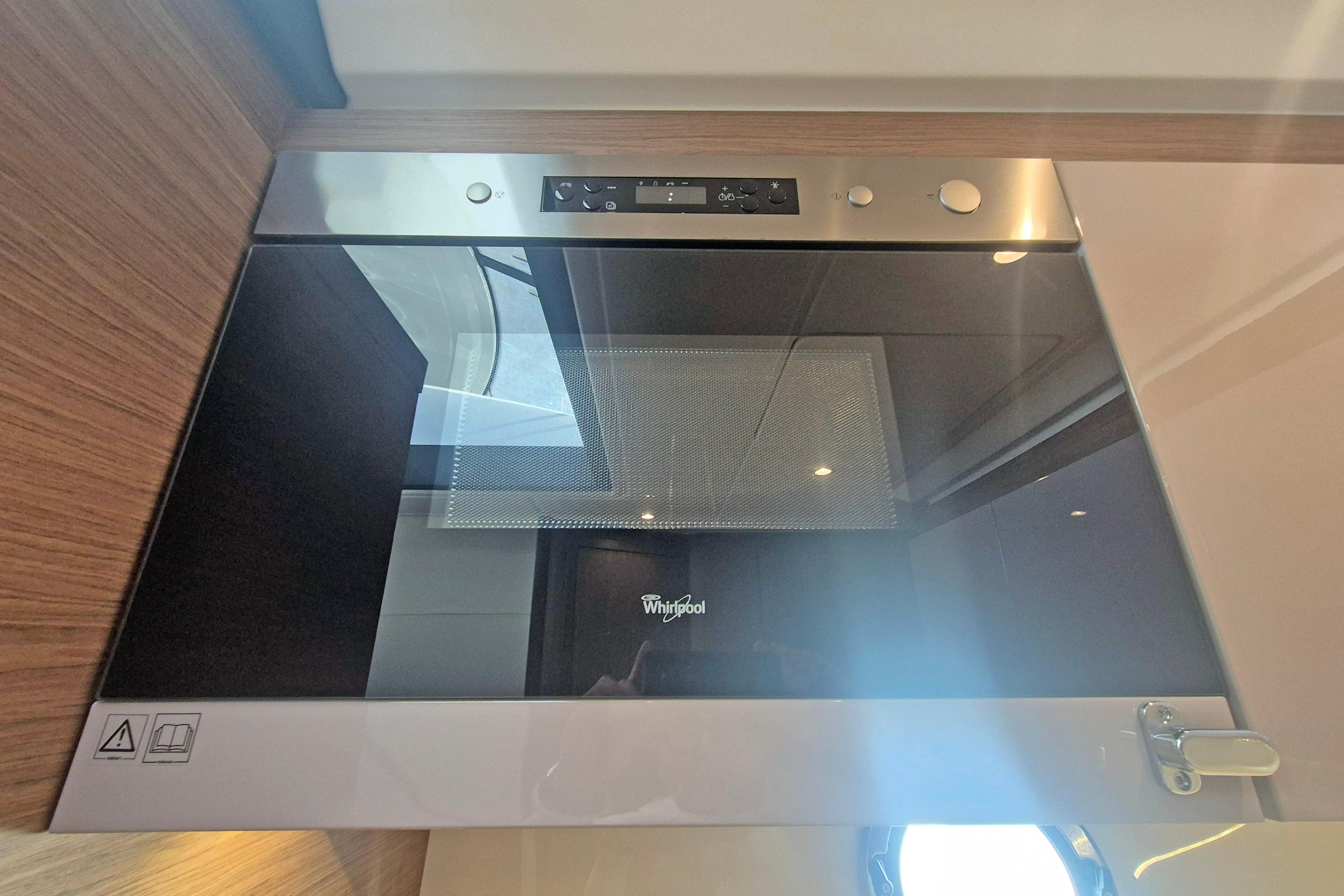 Galley: 190 L fridge (saloon), 40 L fridge (cockpit), Whirlpool microwave, Kenyon stove, dishwasher