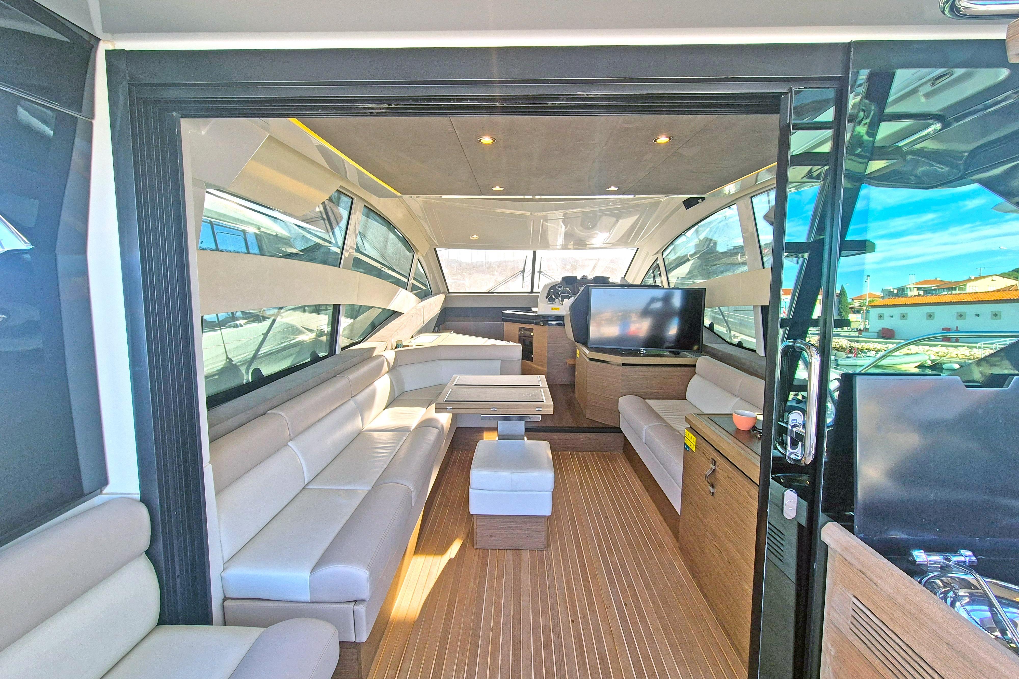 The Beneteau Gran Turismo 50 Fly is a refined flybridge motor yacht combining contemporary design, high performance, and true owner-level comfort. Built in 2019, she is constructed on Beneteau’s advanced AirStep® 2 deep-V planing hull, developed in cooperation with Volvo Penta, delivering excellent sea-keeping, smooth ride characteristics, and optimized fuel efficiency at cruising speeds. Powered by Volvo IPS propulsion, she offers precise handling, low noise levels, and effortless maneuverability.