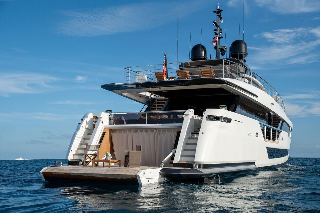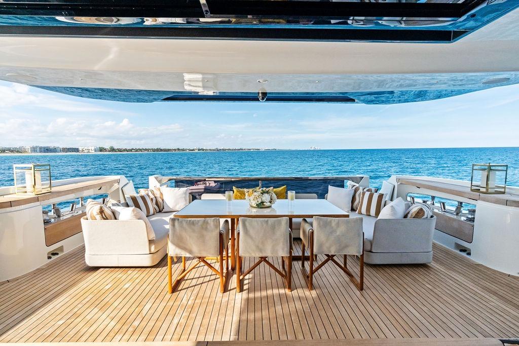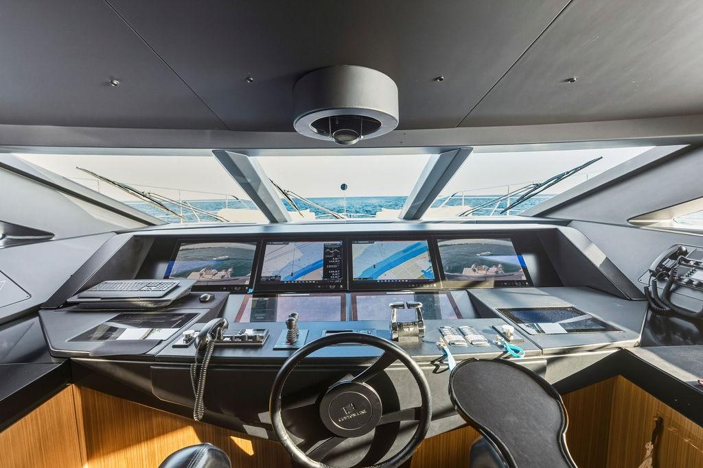 The yacht features sleek, contemporary exterior lines that are instantly recognizable as Custom Line, along with expansive glazing that allows natural light to flood every space. Designed for both private ownership and high-end charter potential, it strikes an impressive balance between indoor and outdoor living.