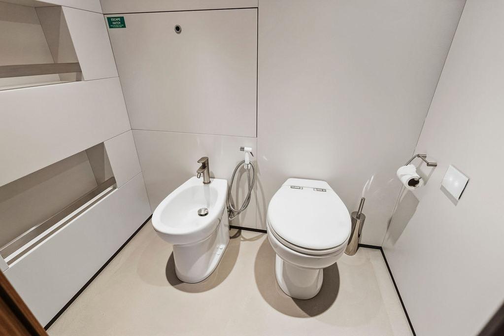 - His & Hers toilets with Bidet (large windows w/ porthole. Window Blinds, and Door for privacy)
