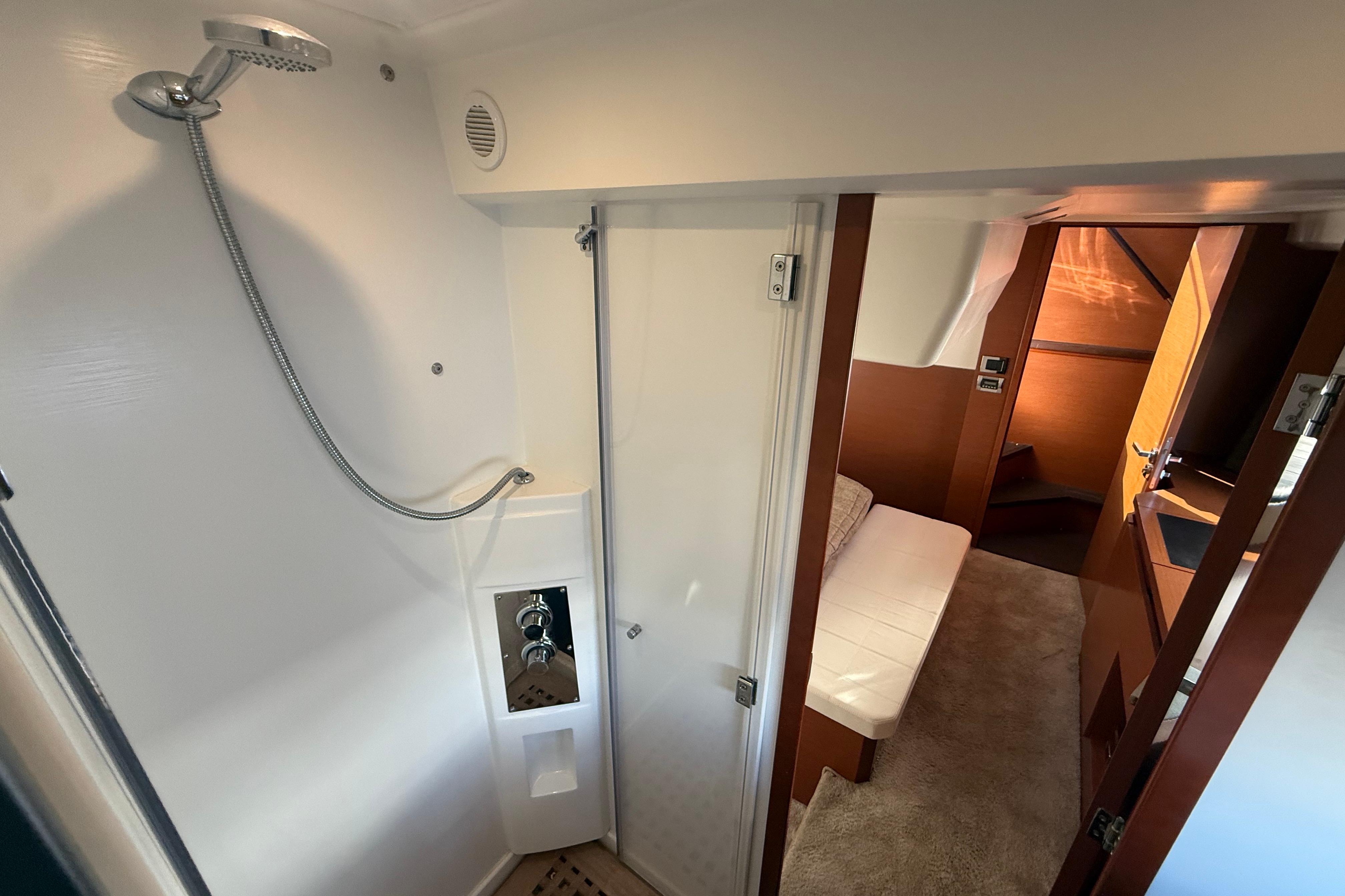 At 45.75 feet, she’s the only boat in her class with a full-beam aft master stateroom featuring its own private entrance — an exclusive layout you won’t find on comparable models.