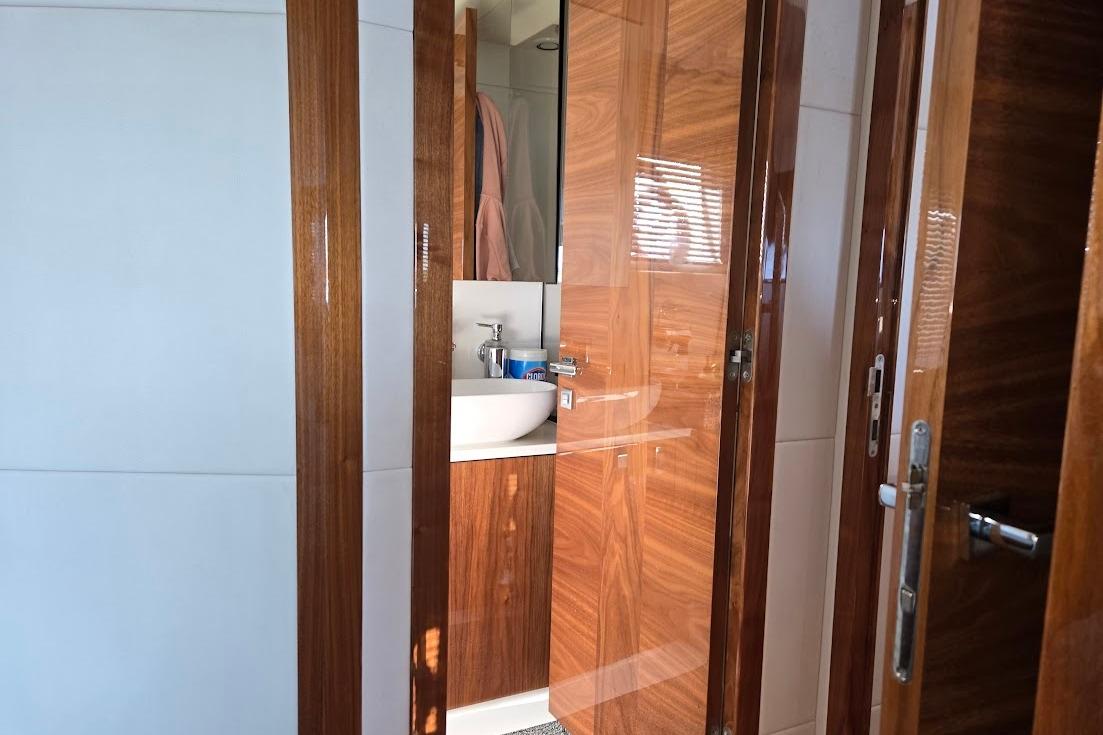 - Guest Stateroom (VIP): Located forward, this cabin has a V-shaped sliding bed that can be configured as two single berths or converted into an island double berth. It has access to an en-suite/day head bathroom.