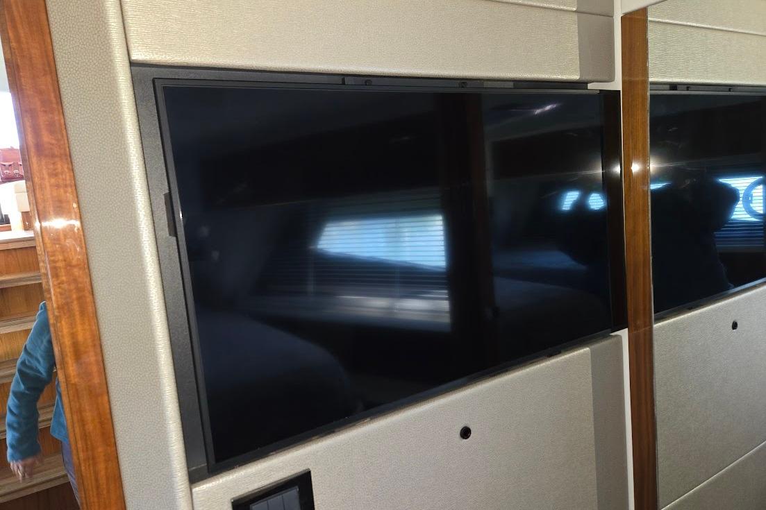 - Main Deck Salon: The main deck features a spacious salon with large windows for panoramic views and natural light. A key feature is the fully opening hardtop roof and fully opening cockpit window, which integrates the interior with the outdoors.