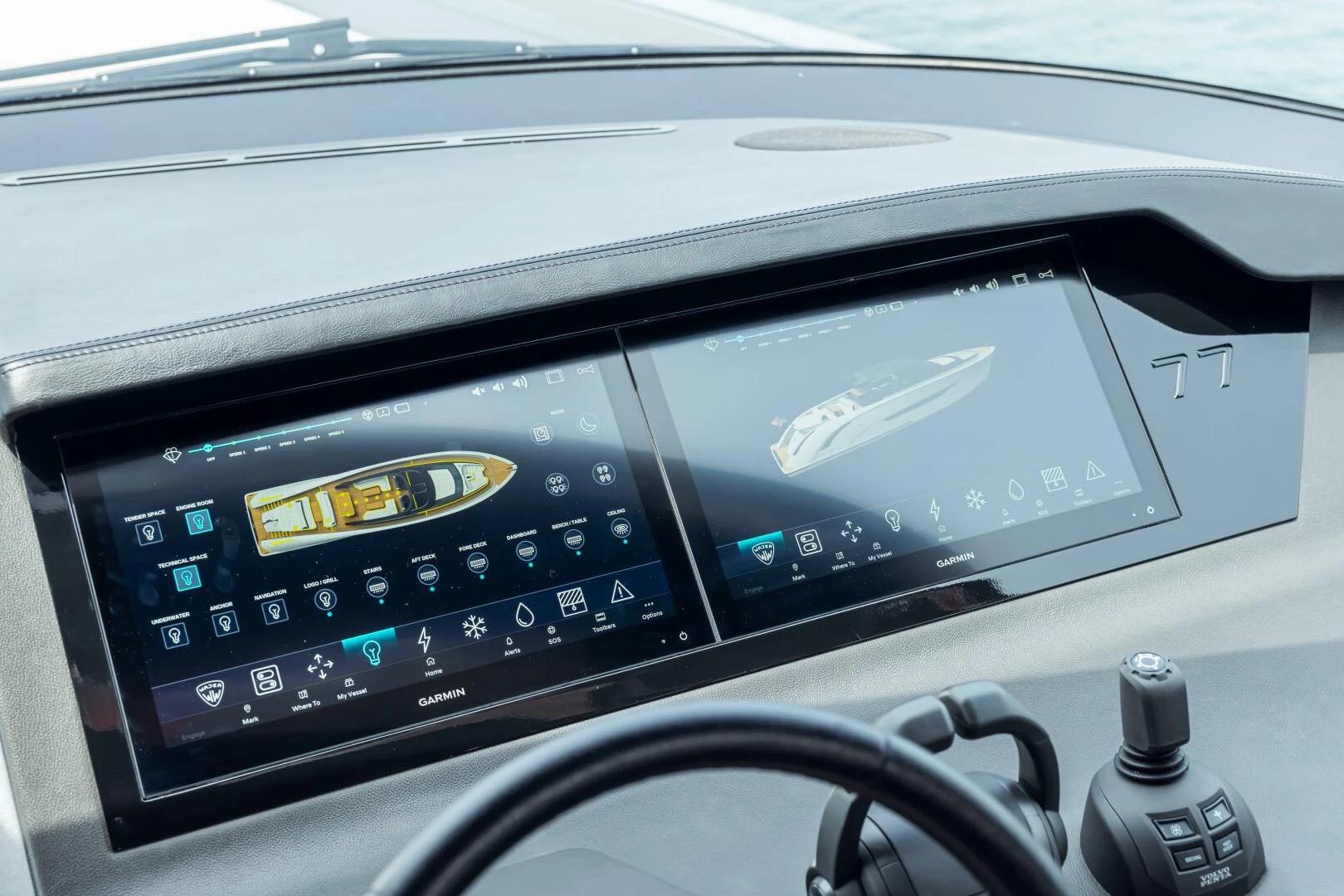 Powered by three VOLVO PENTA engines with warranty valid until November 2027, she delivers a 37 knot top speed with smooth, stable handling. Comfort both underway and at anchor is enhanced by a SEAKEEPER gyro stabiliser.